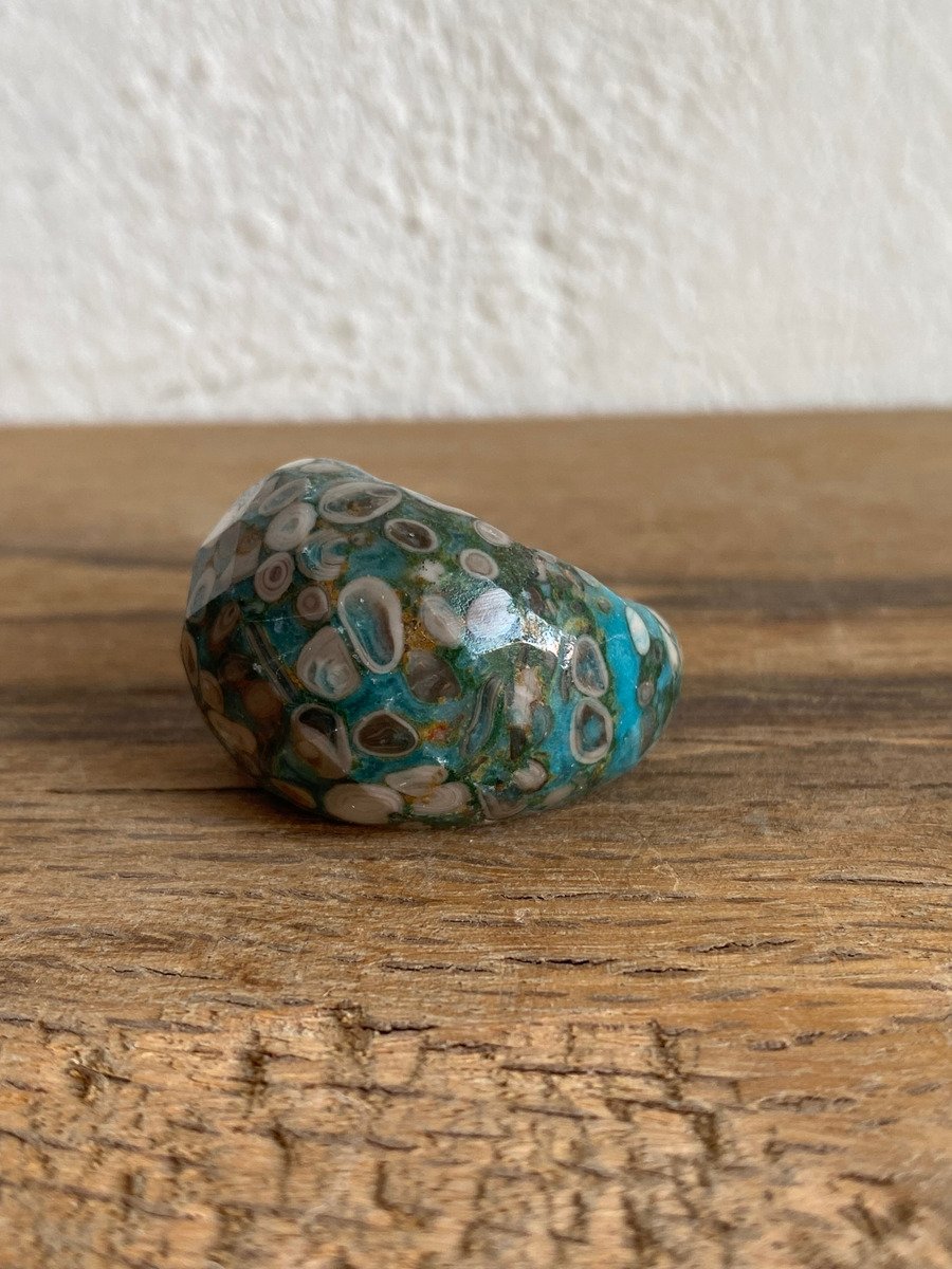 1 Anillo Con Coral Piedra Natural Talla 7.5