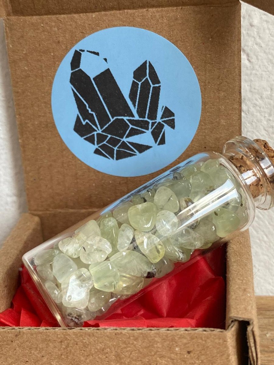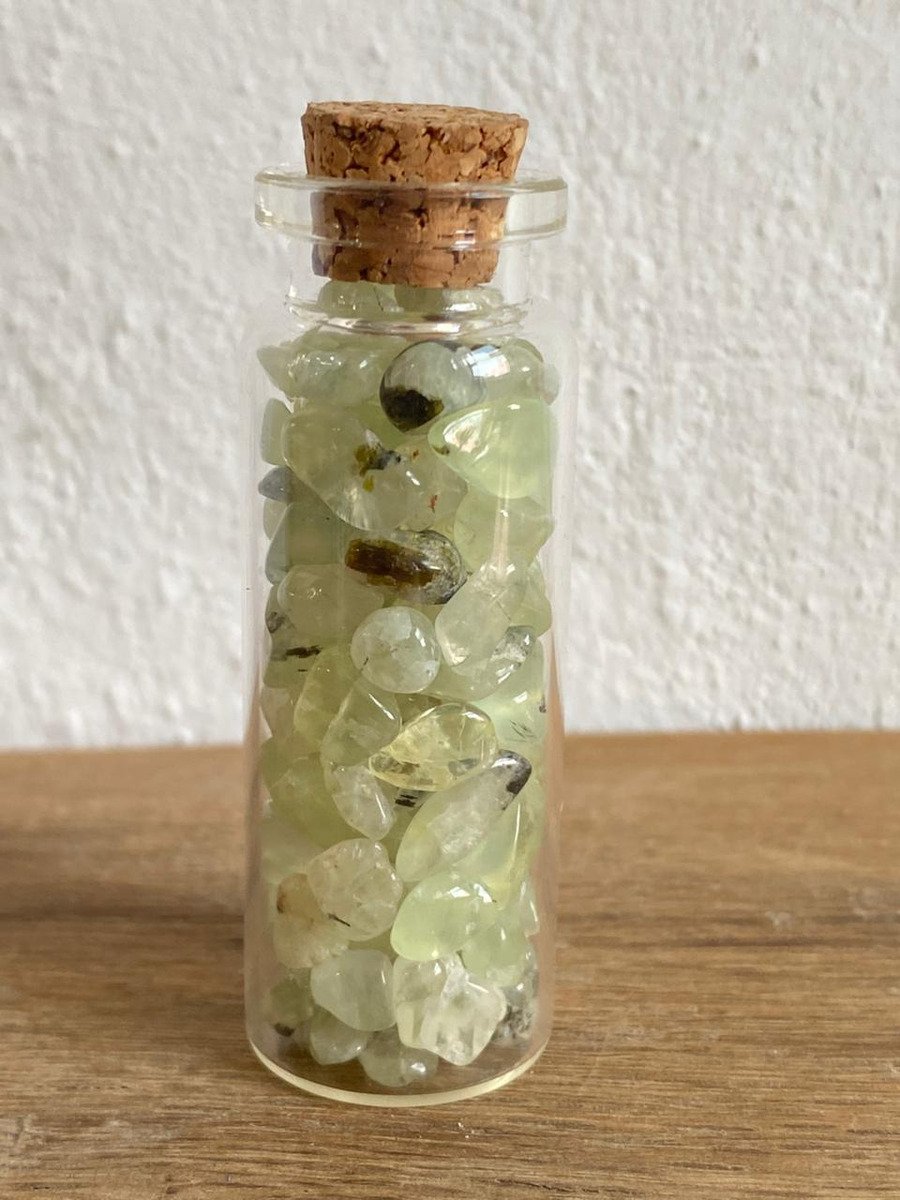 1 Botellita Con Prehnita Verde Amuleto Mineral Natural