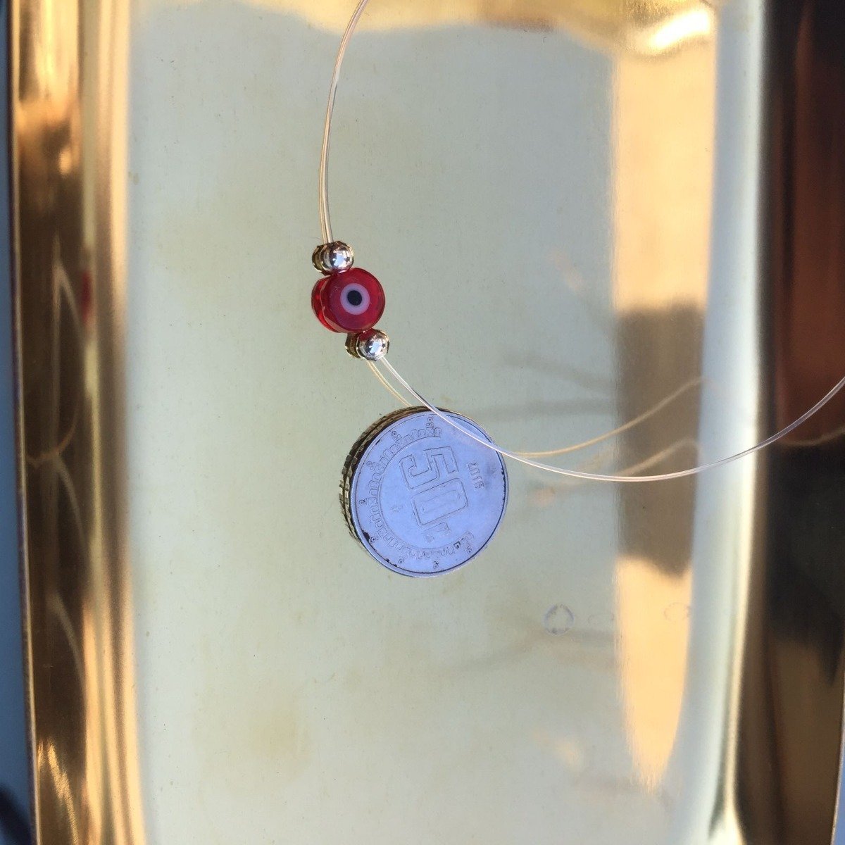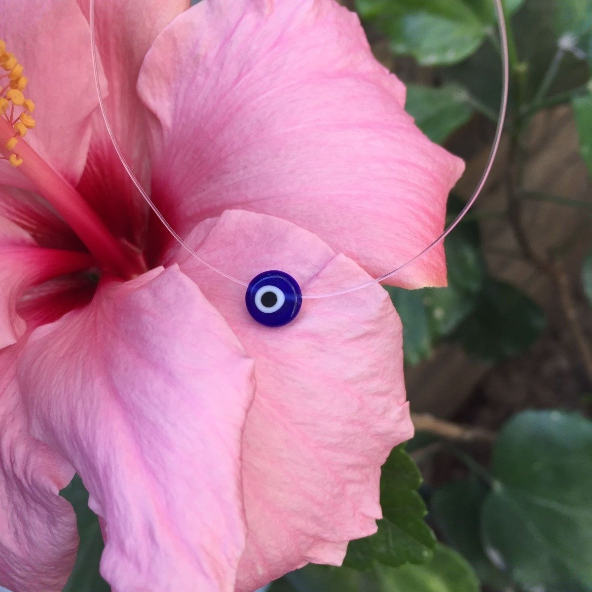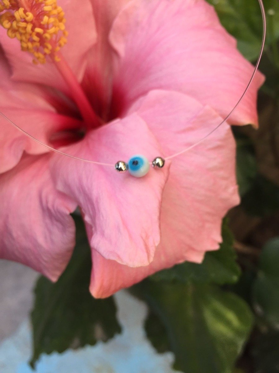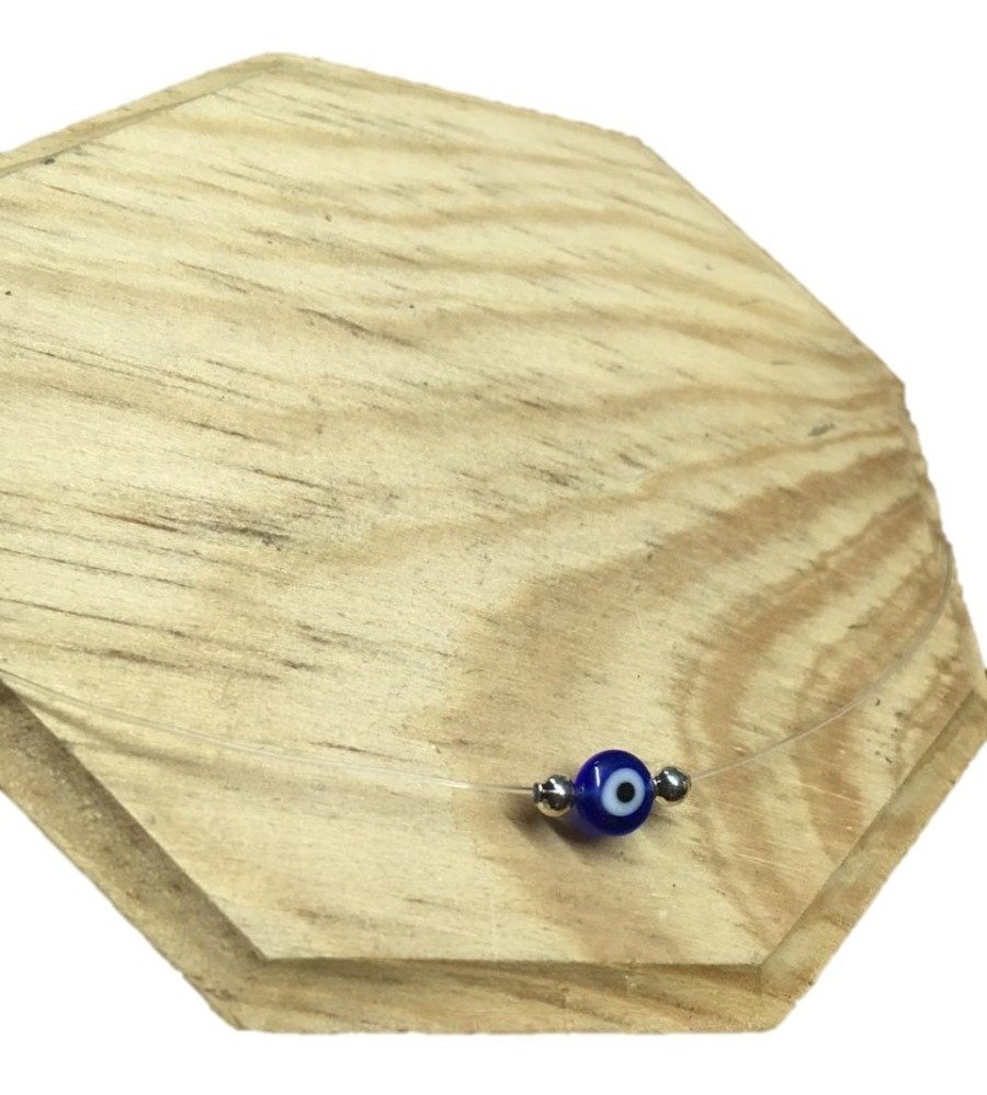 1 Collar Choker Hilo Invisible Con Mini Ojo Turco Amuleto