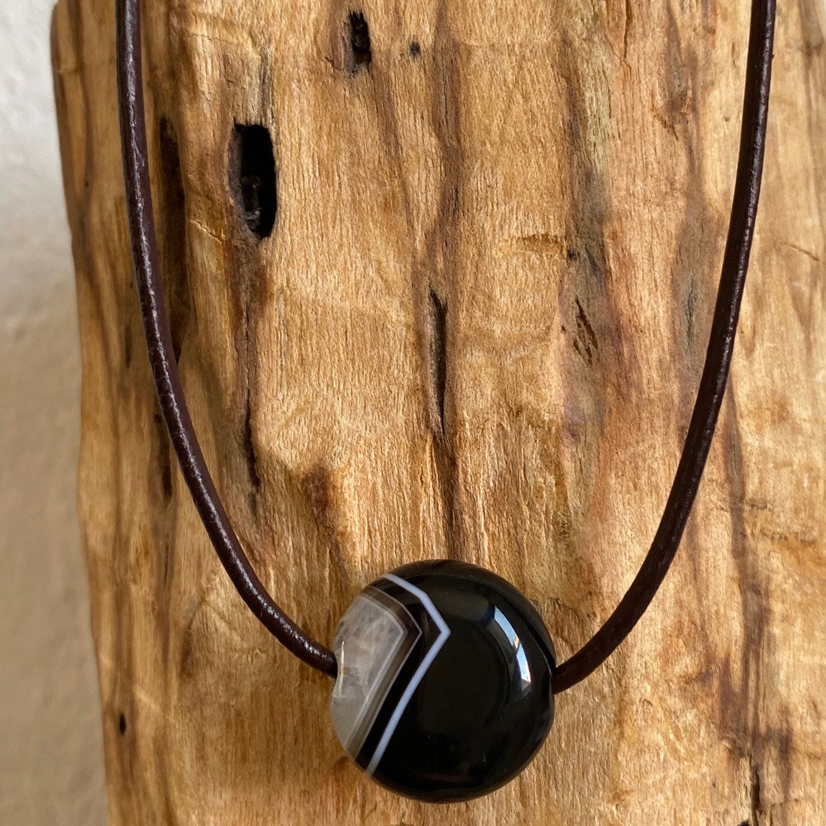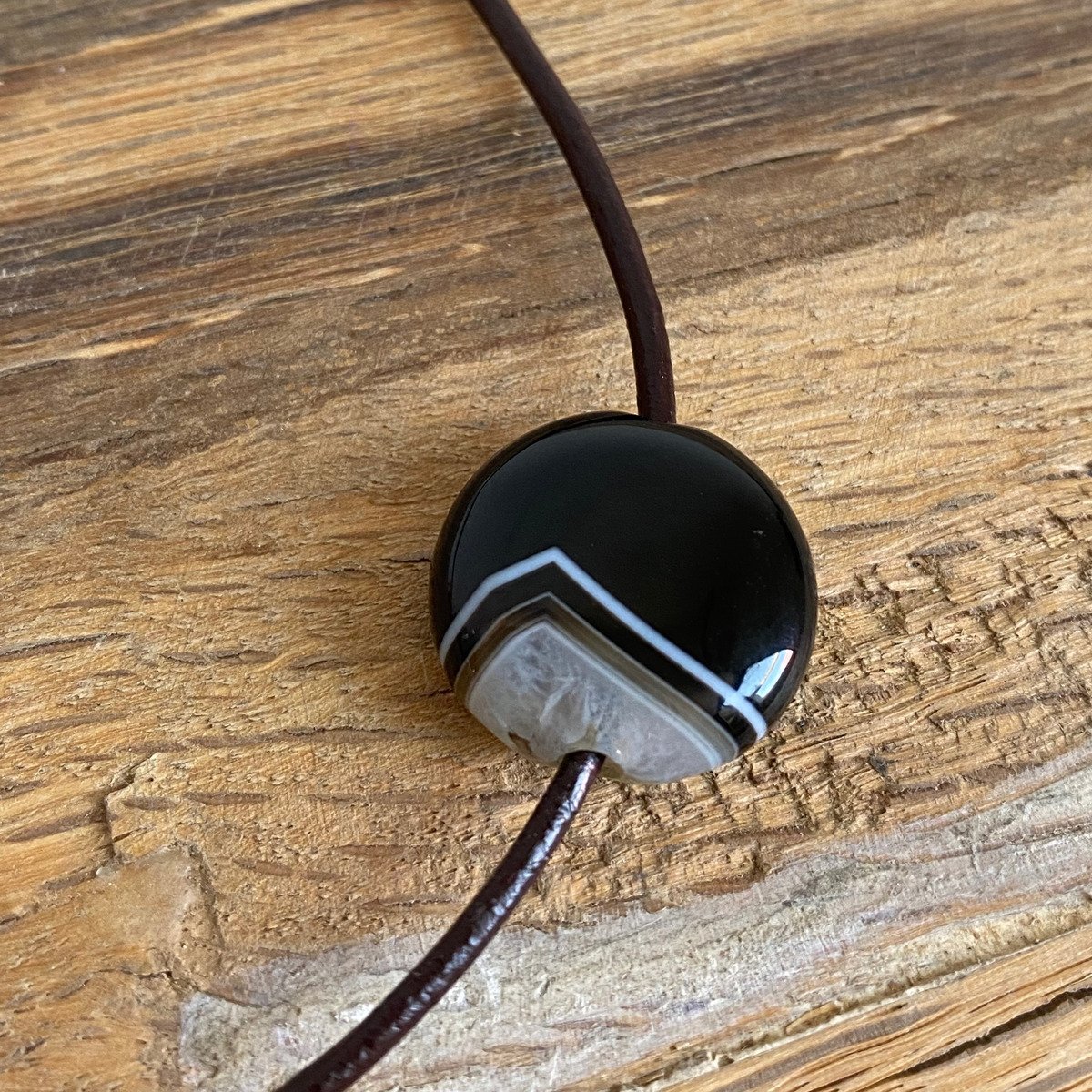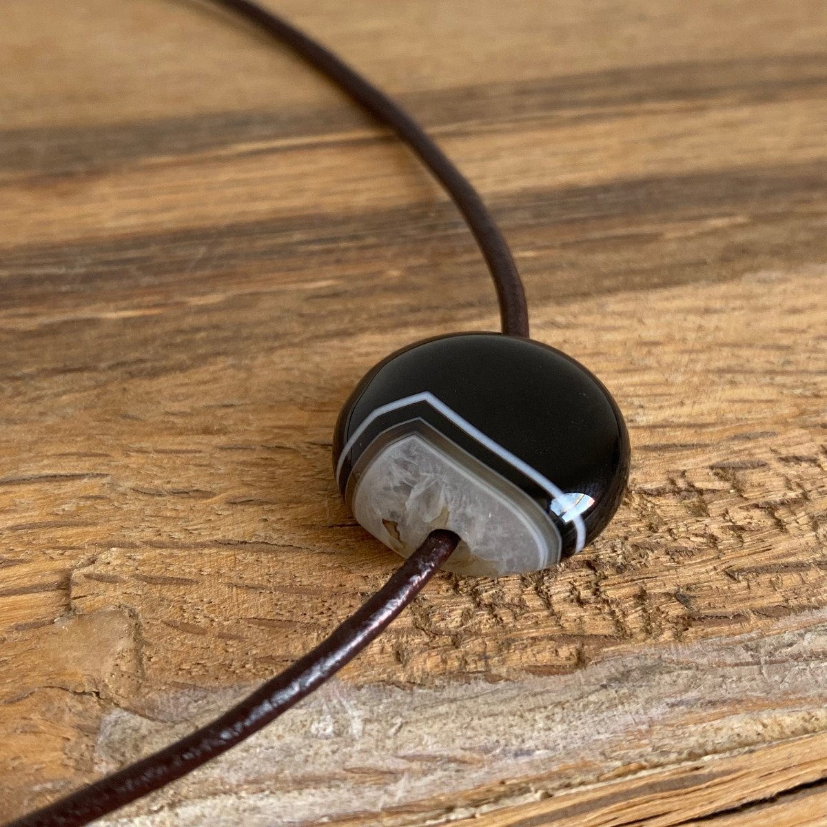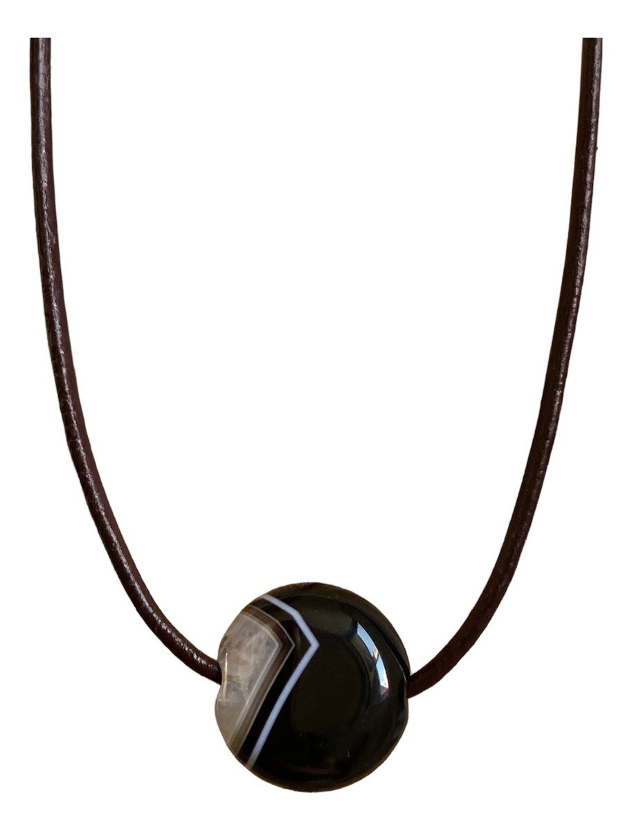 1 Dije Ágata Negra Con Cuero Piedra Semipreciosa Equilibrio