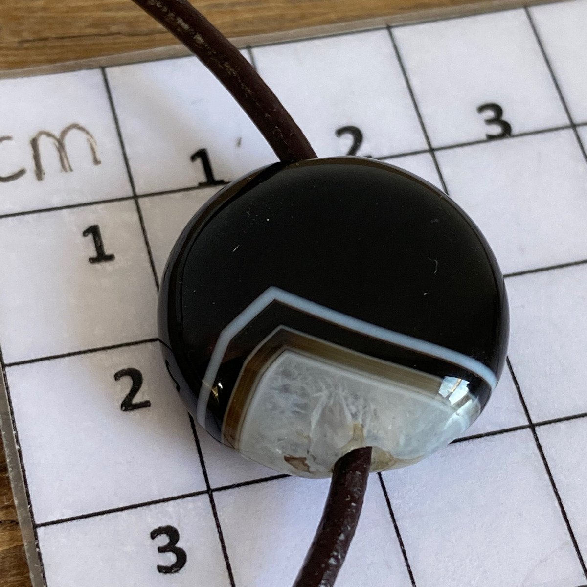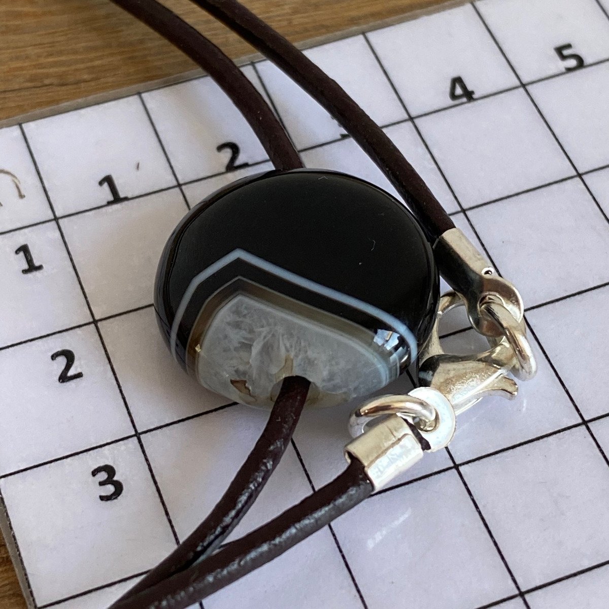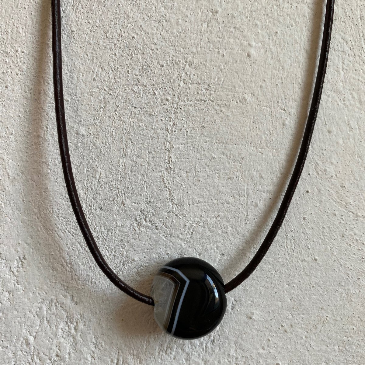 1 Dije Ágata Negra Con Cuero Piedra Semipreciosa Equilibrio