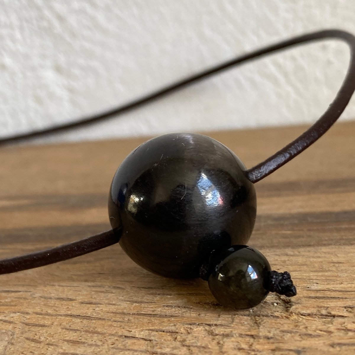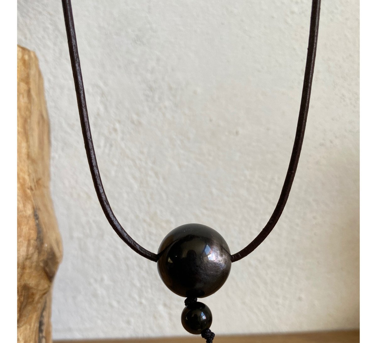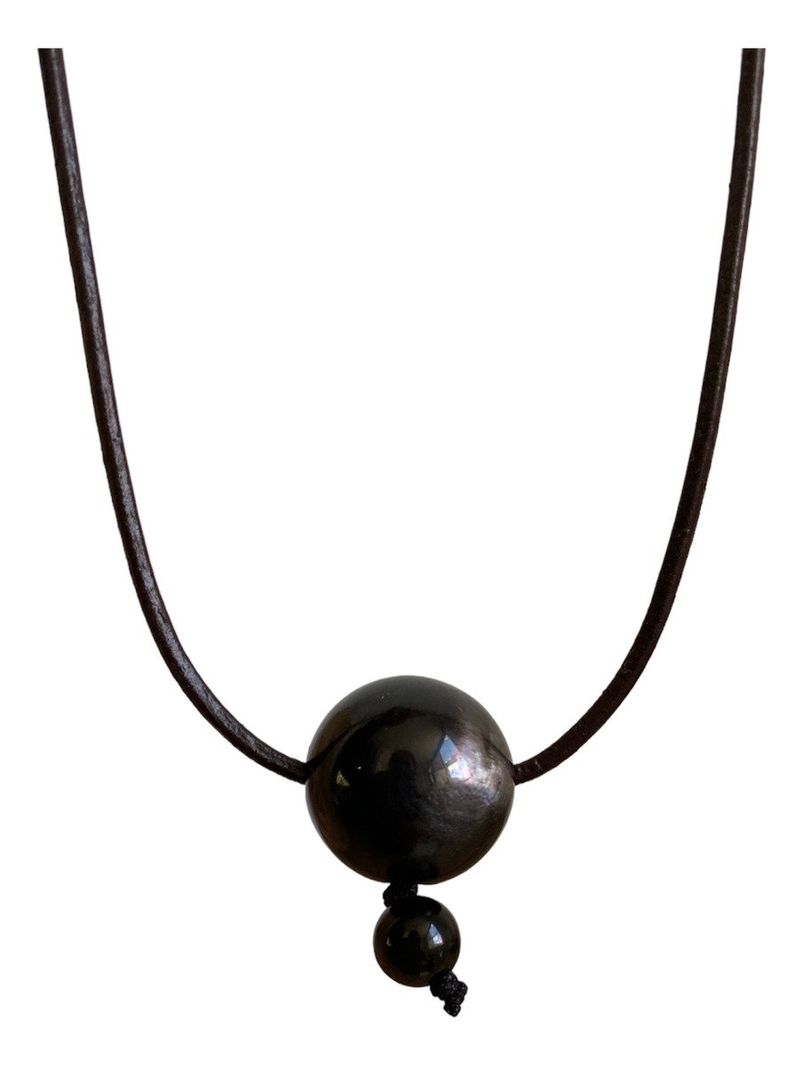 1 Dije Hiperstena Y Obsidiana Con Cordón Cuero Mineral Reiki
