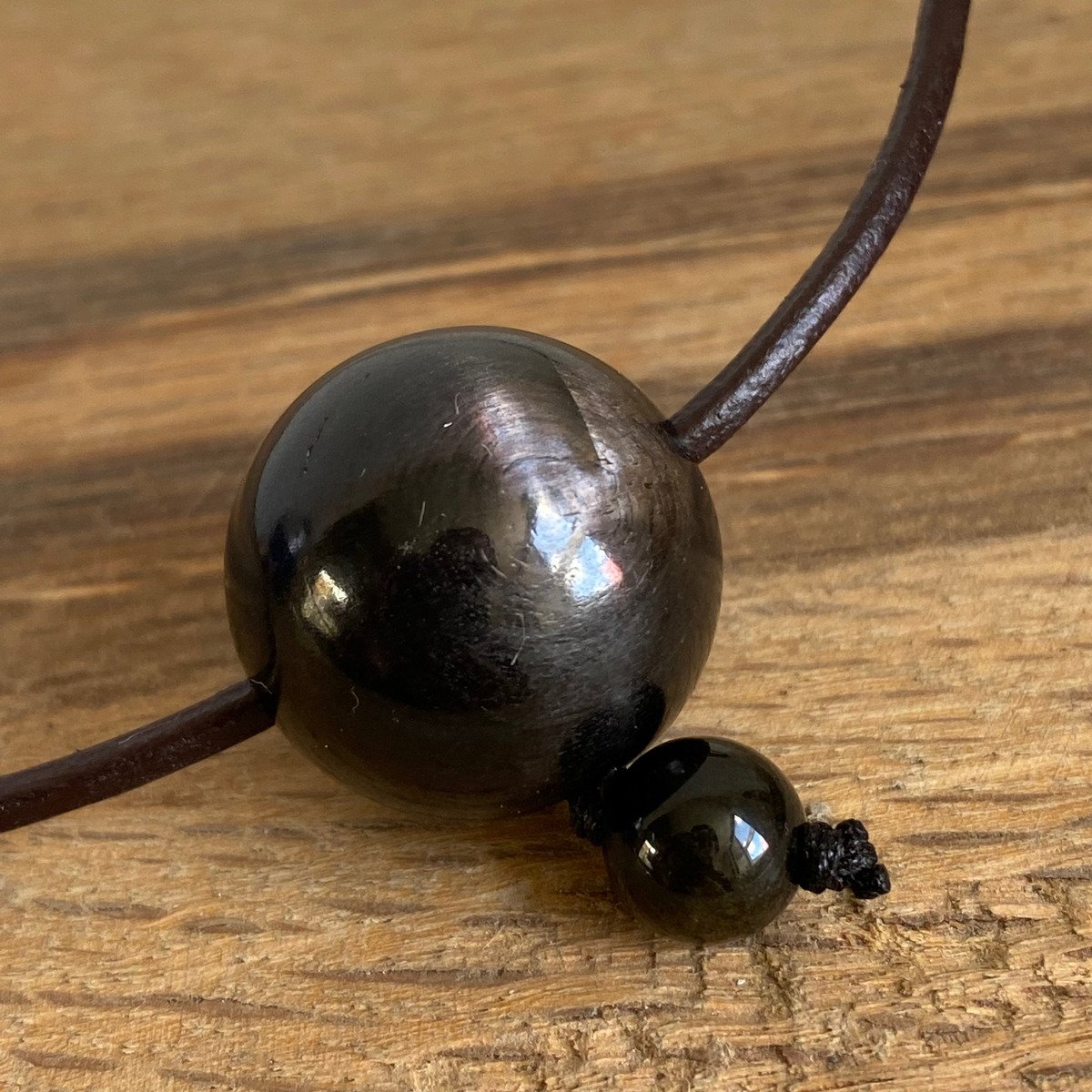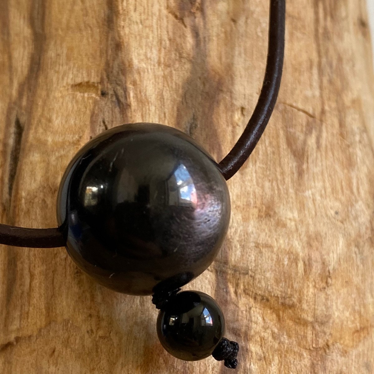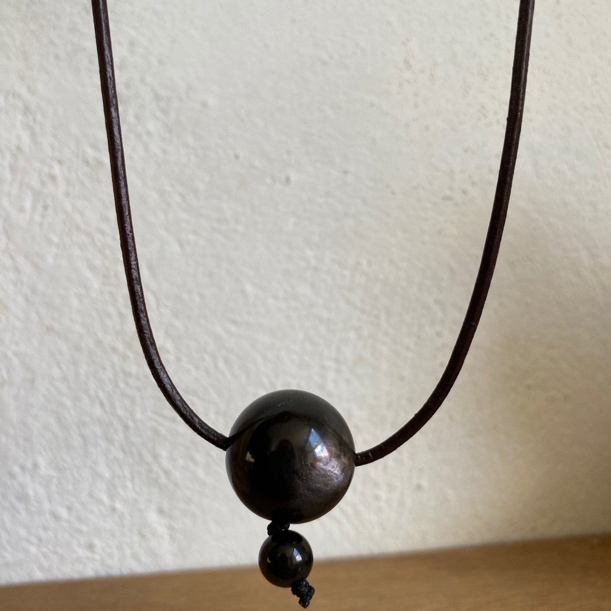 1 Dije Hiperstena Y Obsidiana Con Cordón Cuero Mineral Reiki