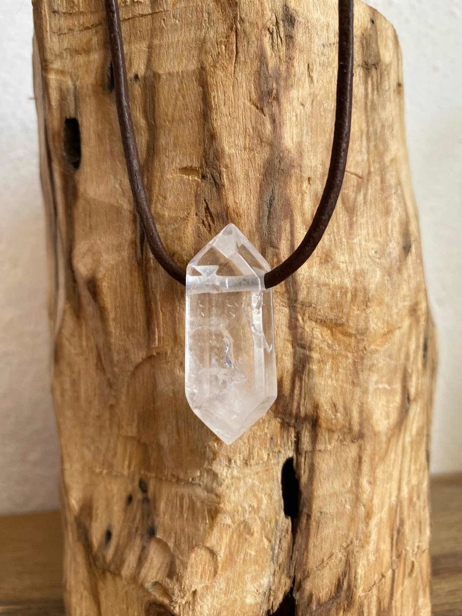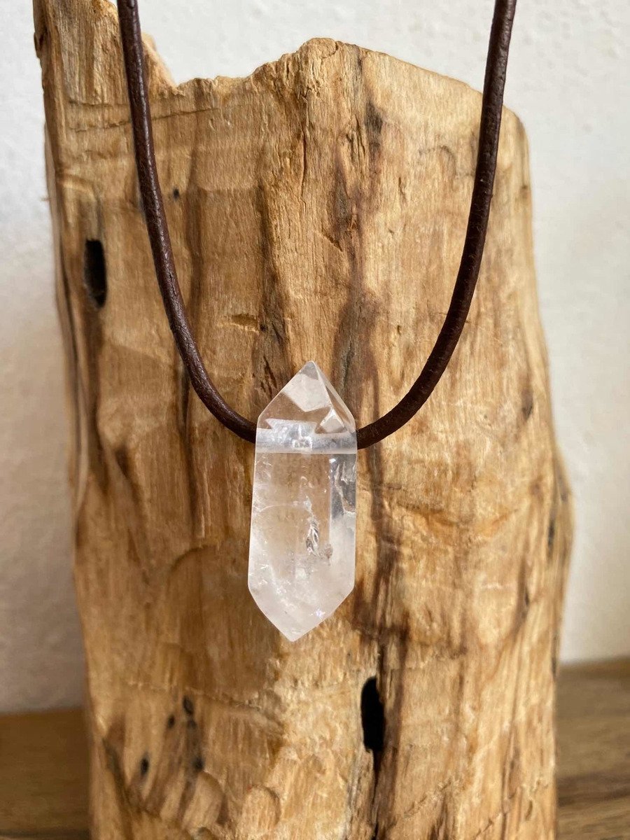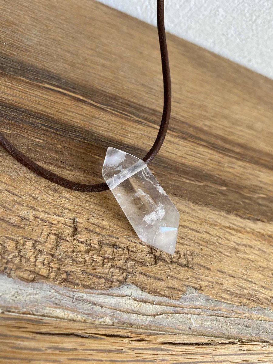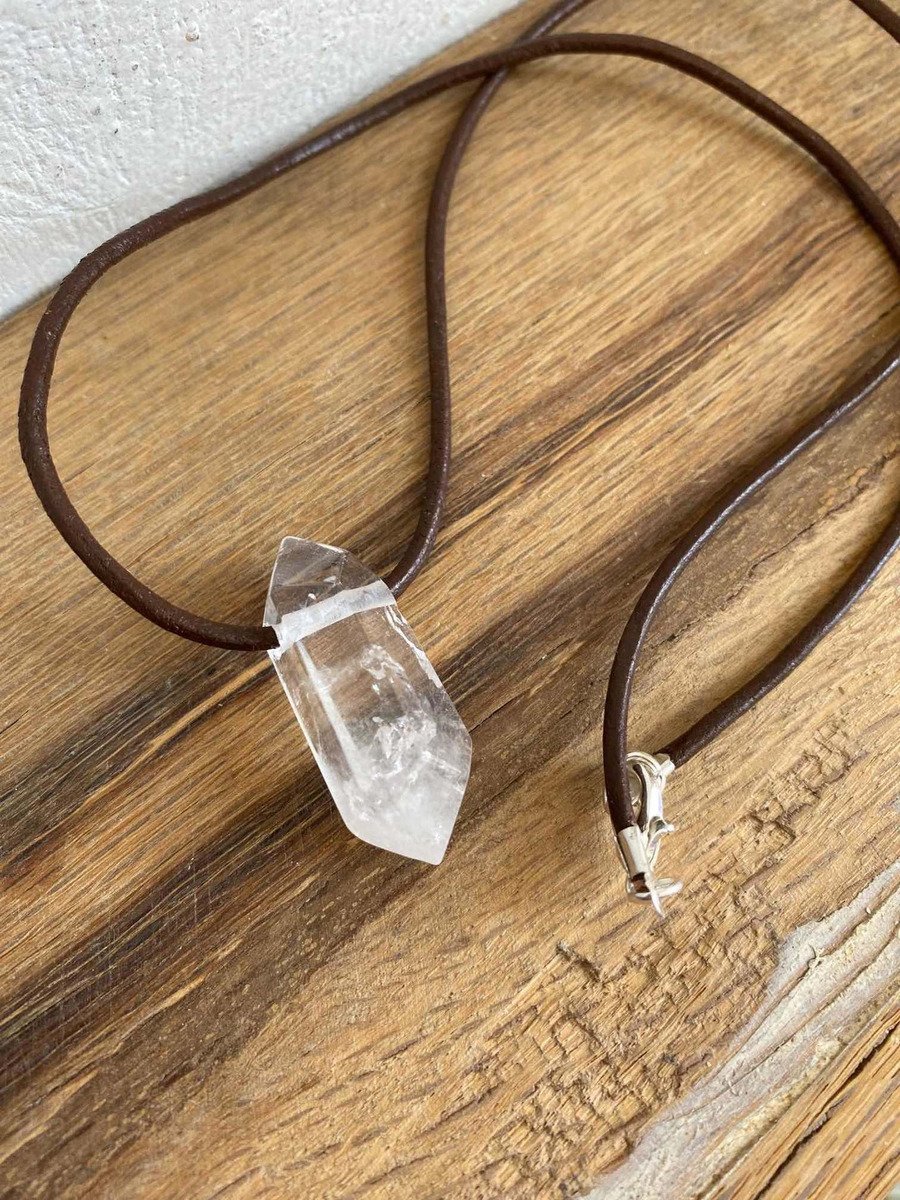 1 Dije Punta De Cuarzo Cuero Reiki Meditación Piedra Natural