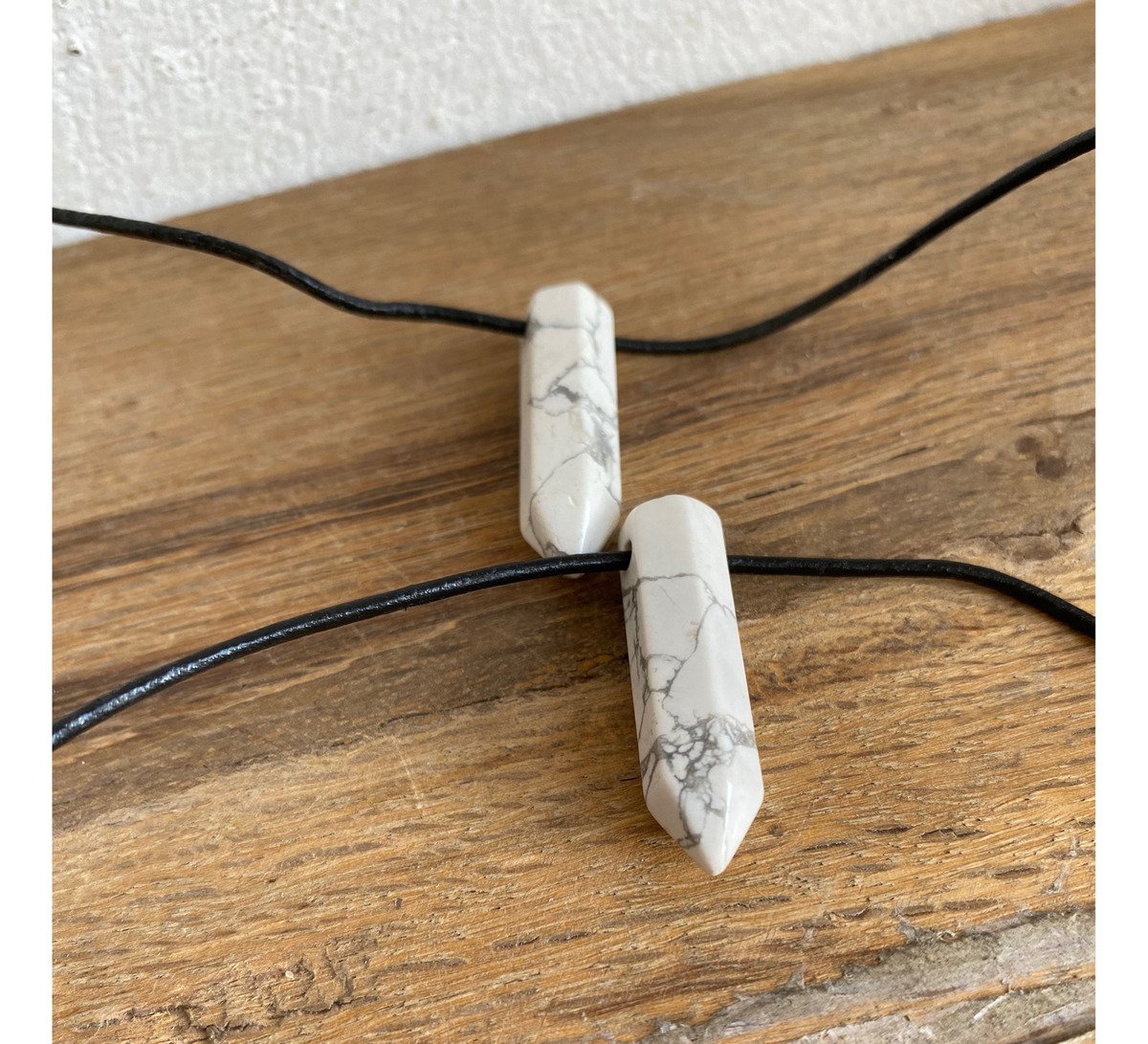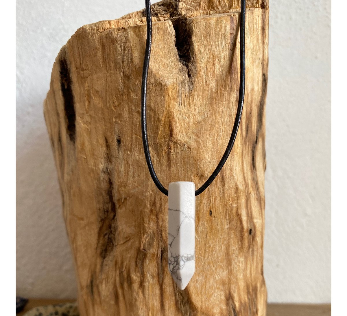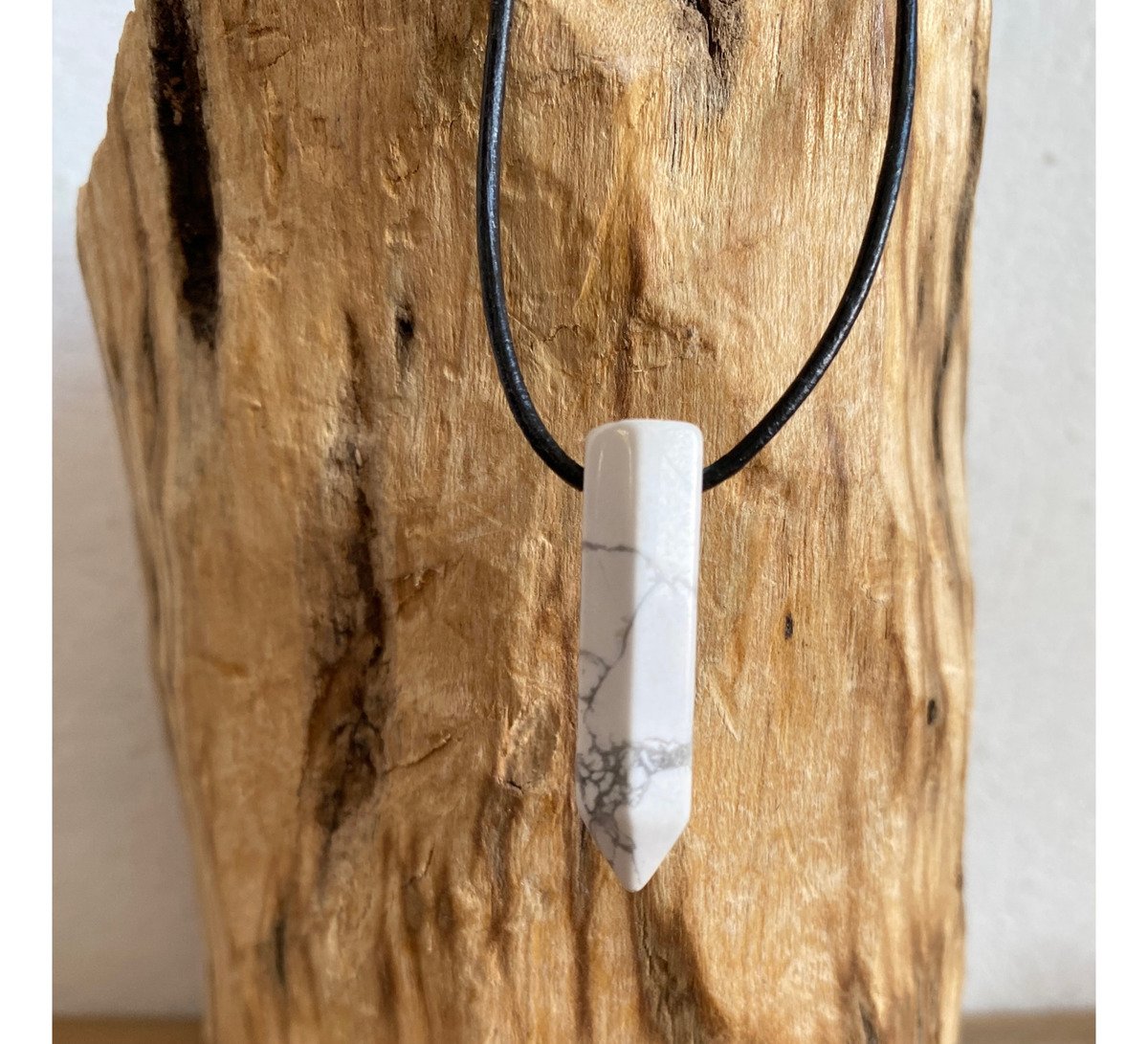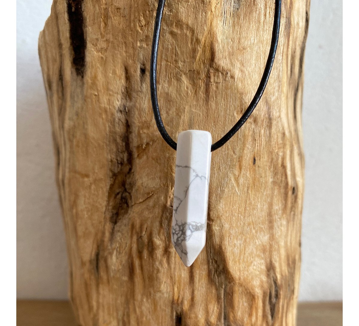 1 Dije Punta Howlita Blanca Con Cordon De Cuero Negro