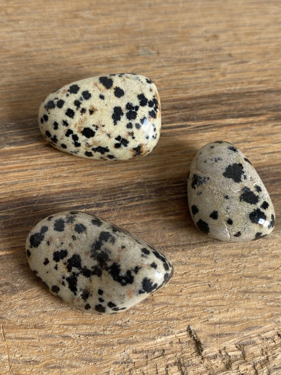 La piedra dálmata se conoce también como la piedra de la alegría que teóricamente puede liberar a sus usuarios de sentimientos y emociones negativas. Está directamente asociado con la sinceridad, la alegría y la felicidad.