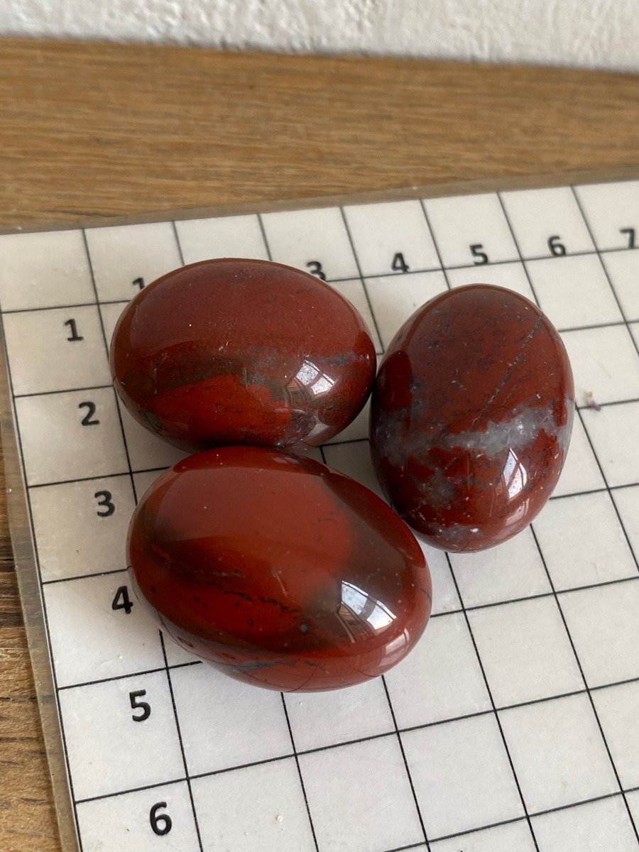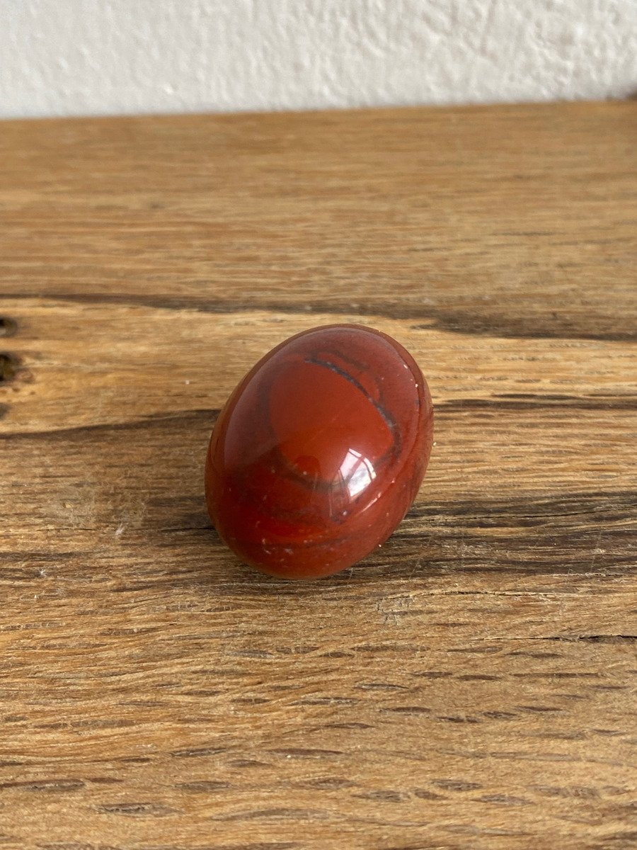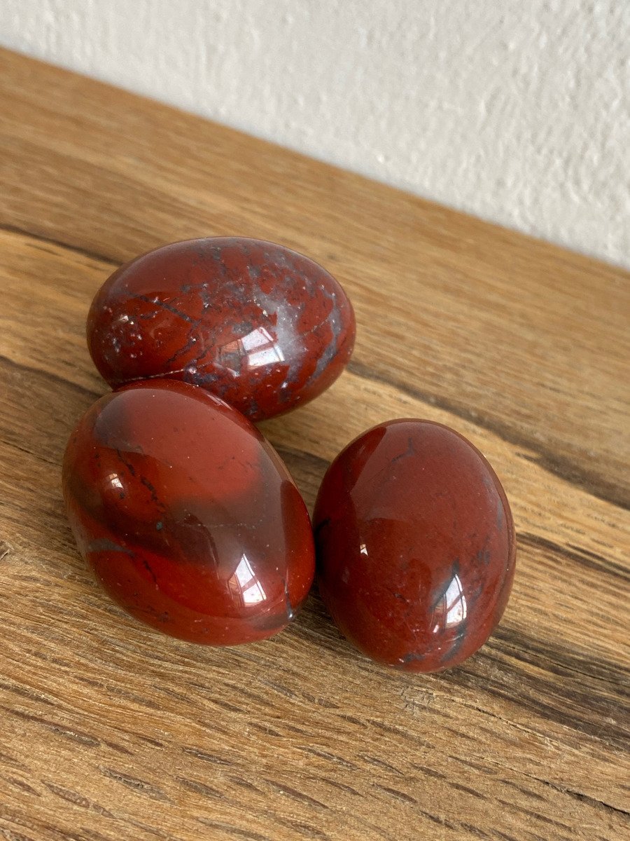 El jaspe rojo es una piedra asociada al 1º chakra, promueve el arraigo, la fuerza y la seguridad. Suele ser indicada para energizar el cuerpo y aportarle vitalidad. Se considera una piedra de limpieza y equilibrio. A nivel curativo se dice que ayuda a desintoxicar el sistema circulatorio.