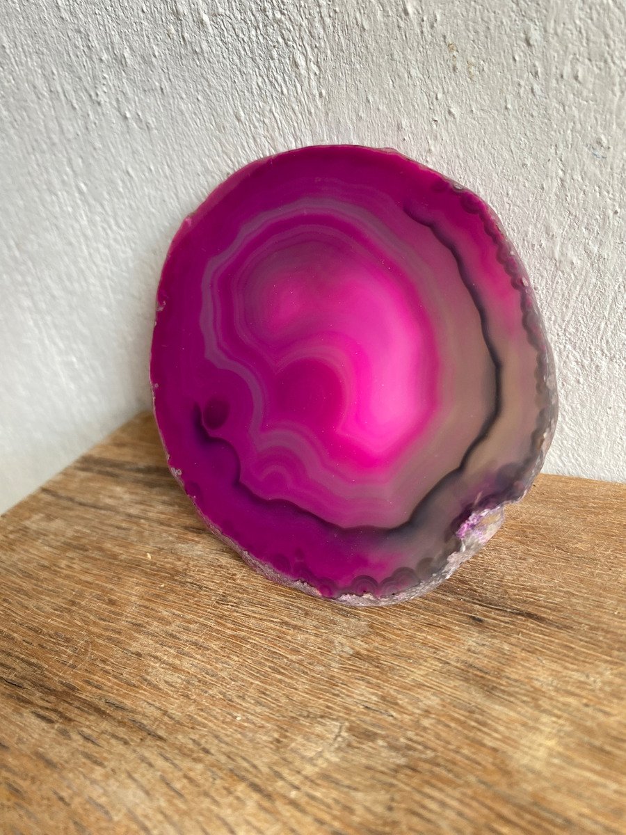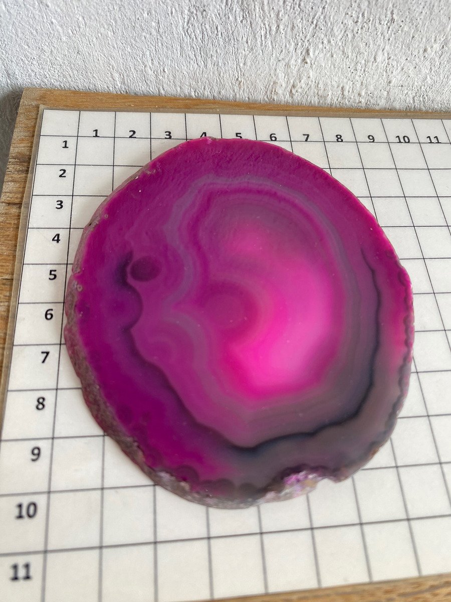 1 Laja De Ágata Rosa Rebanada En Base Mineral Reiki Yoga