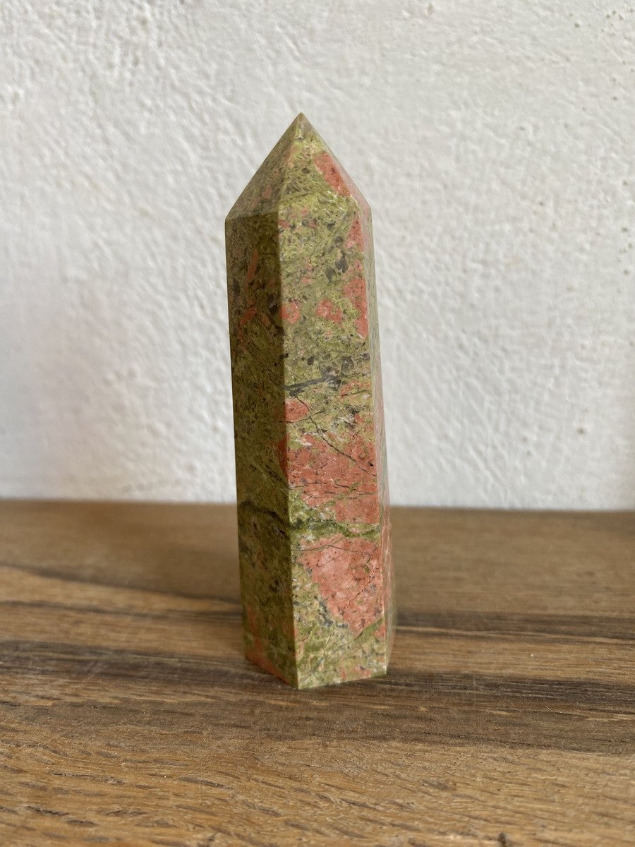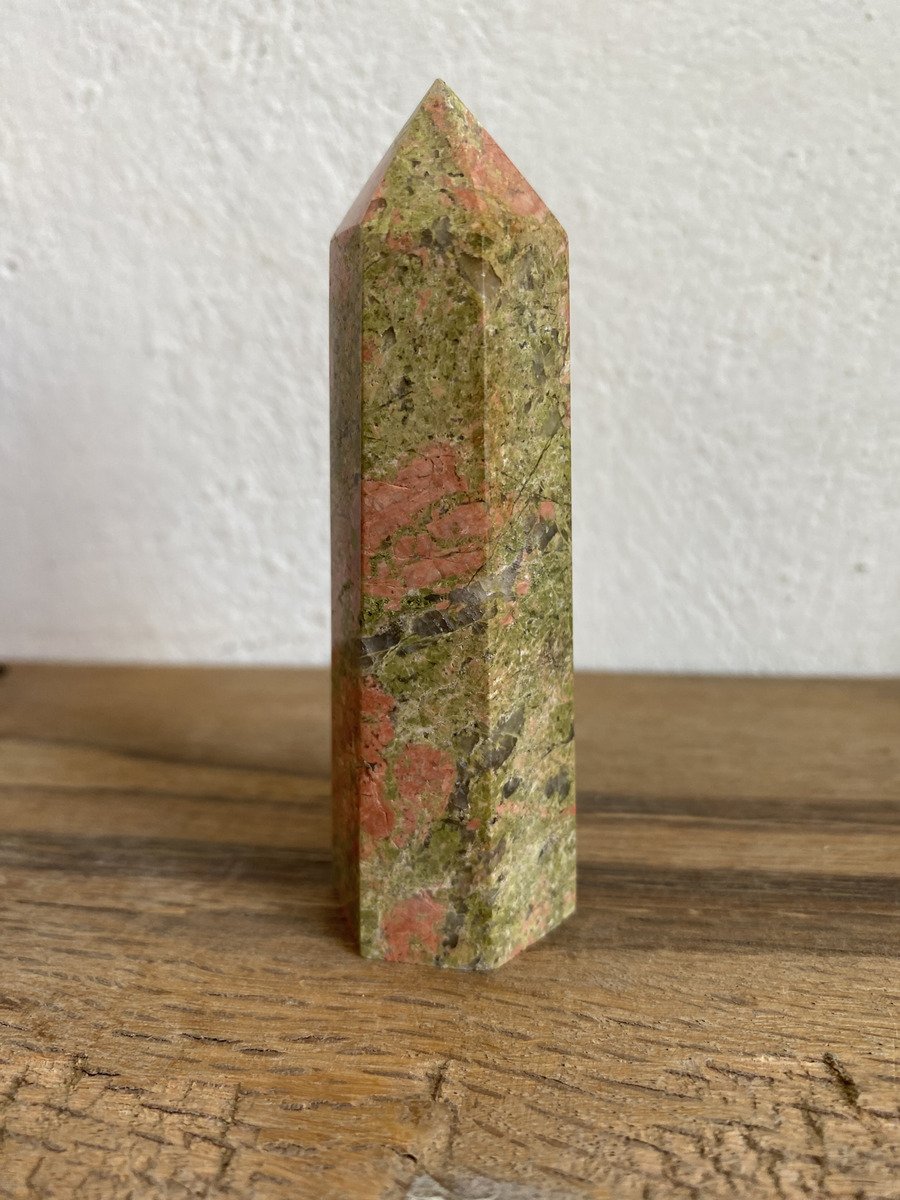 La unakita se considera una piedra de visión y transformación. Se asocia al chakra corazón por su color verde y rosa.