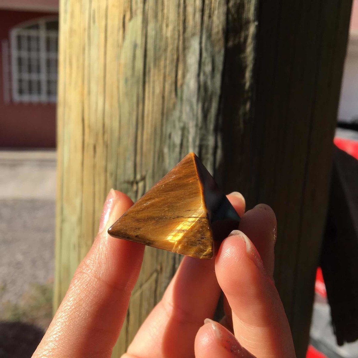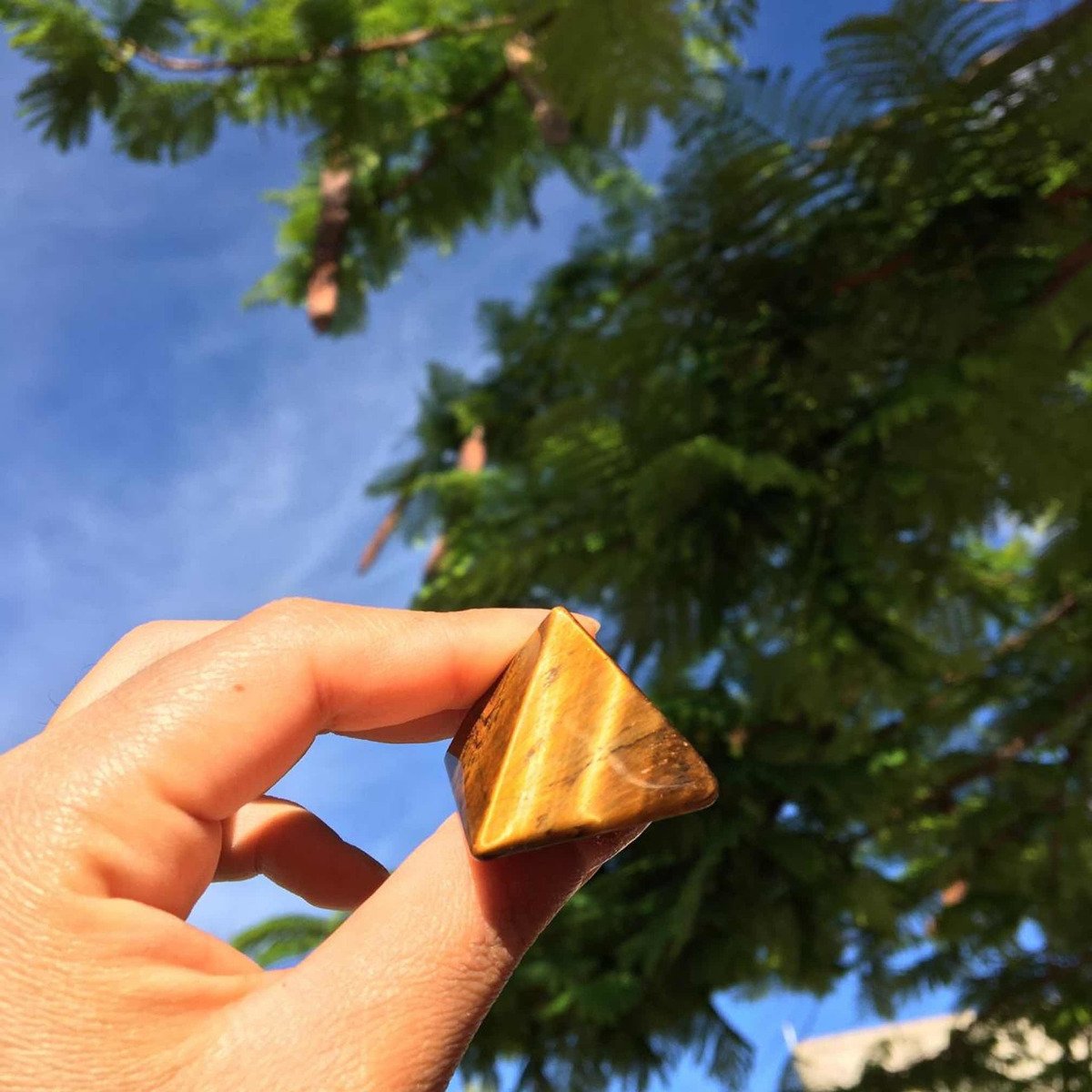 1 Pirámide Tallada En Ojo De Tigre Piedra Natural Reiki Yoga