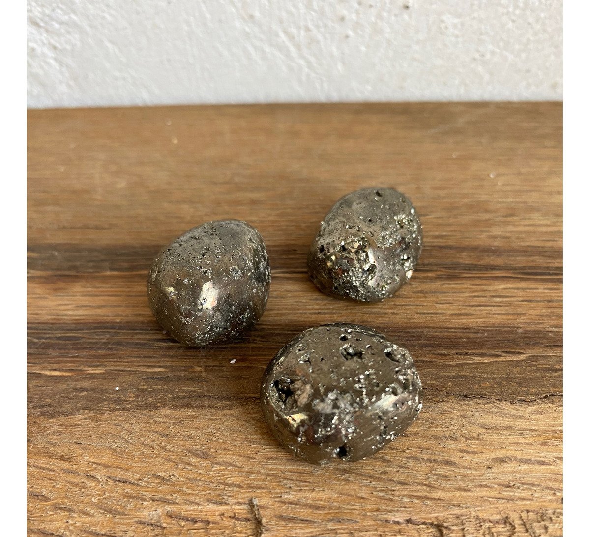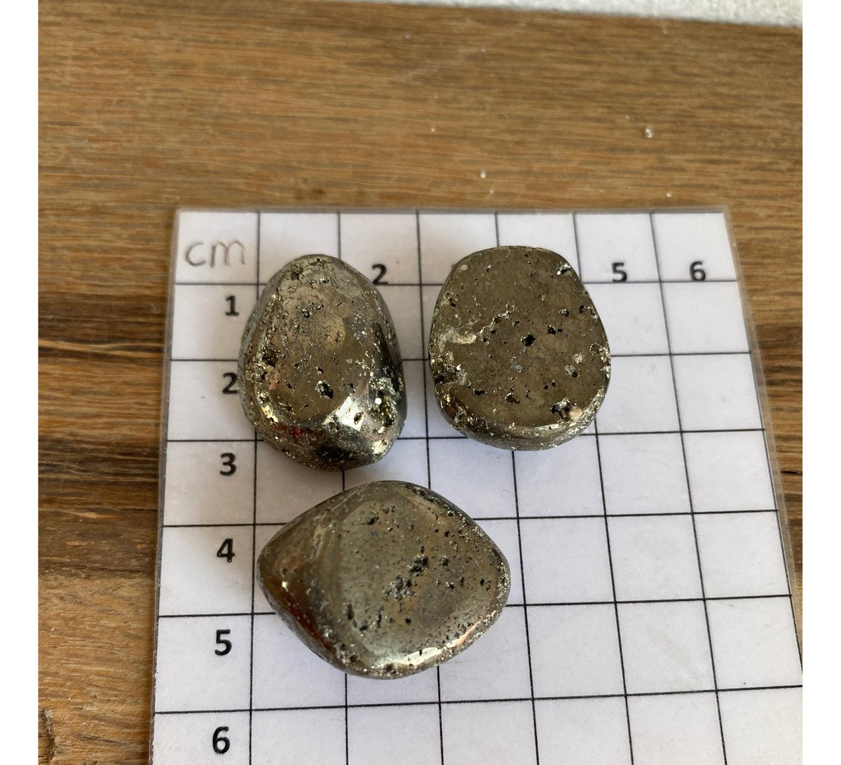 La pirita se considera una piedra de protección y prosperidad. Su forma de cristalizar es cúbica, vinculada al número 4, símbolo también de la materia. La pirita favorece la creatividad y activa las ideas, habilidades y potenciales. Se dice que es una piedra para los buenos negocios. Incrementa la energía vital, fomenta la autoestima y la confianza en uno mismo. A nivel curativo se dice que la pirita es beneficiosa para el sistema circulatorio, el sistema respiratorio y el digestivo.