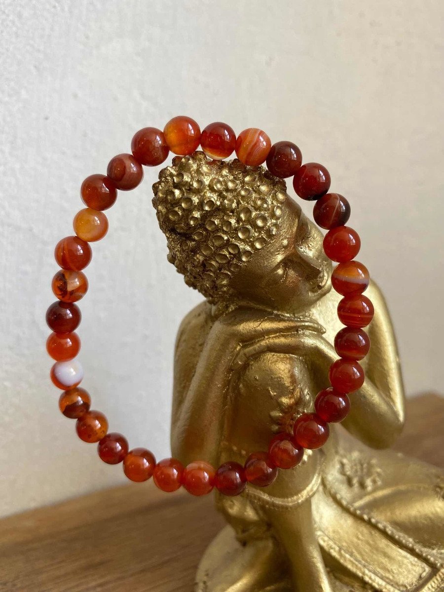 1 Pulsera Ágata Cornalina De Elástico Plexo Solar Reiki Yoga