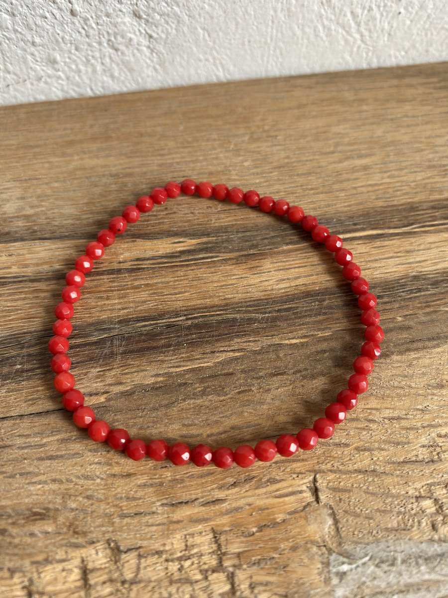 1 Pulsera Coral Faceteada Esfera 3 Mm Piedra Natural Chakras
