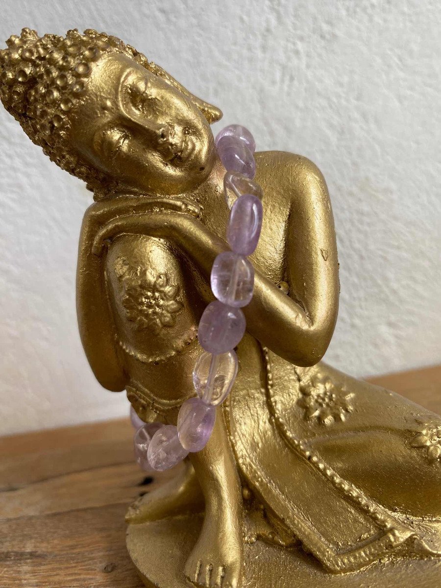 La amatista es conocida como la piedra de la armonía, la transmutación y la espiritualidad. Corresponde al 6º chakra, situado en el entrecejo. Ayuda a calmar la mente y a relajarnos, propiciando de esta manera la conexión con nuestra intuición. Es por este motivo que la amatista suele ser un buen complemento para la práctica de la meditación, ya sea sosteniendo el mineral entre las manos, colocándolo encima del entrecejo o corazón, o situando un cristal de amatista enfrente de nosotros.