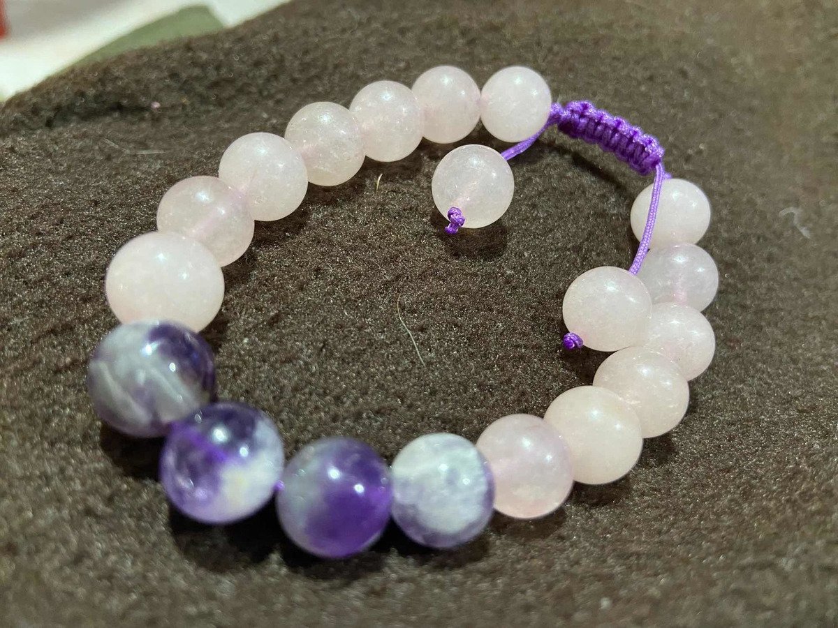 Bonita pulsera de cuarzo rosa y cuarzo amatista