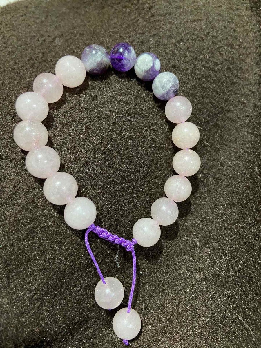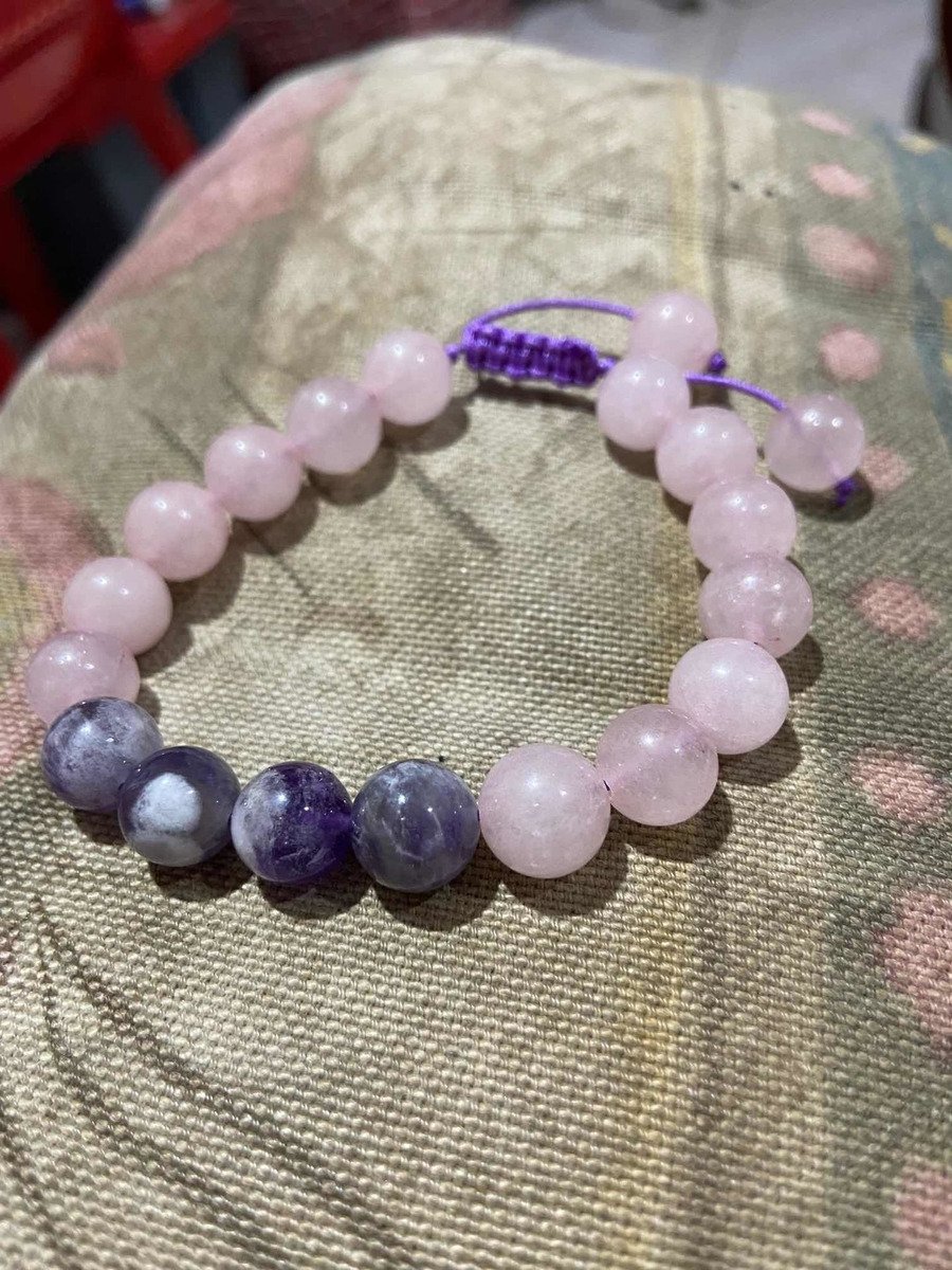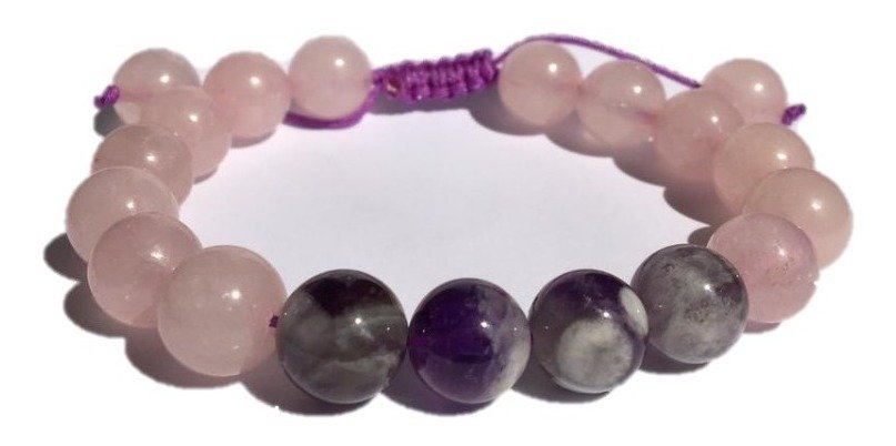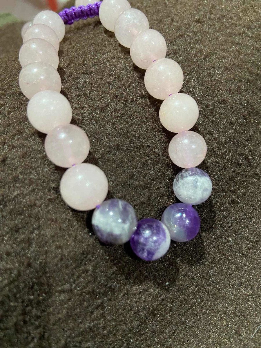 1 Pulsera Cuarzo Rosa Amatista Atrae Paz Y Amor Reiki Yoga