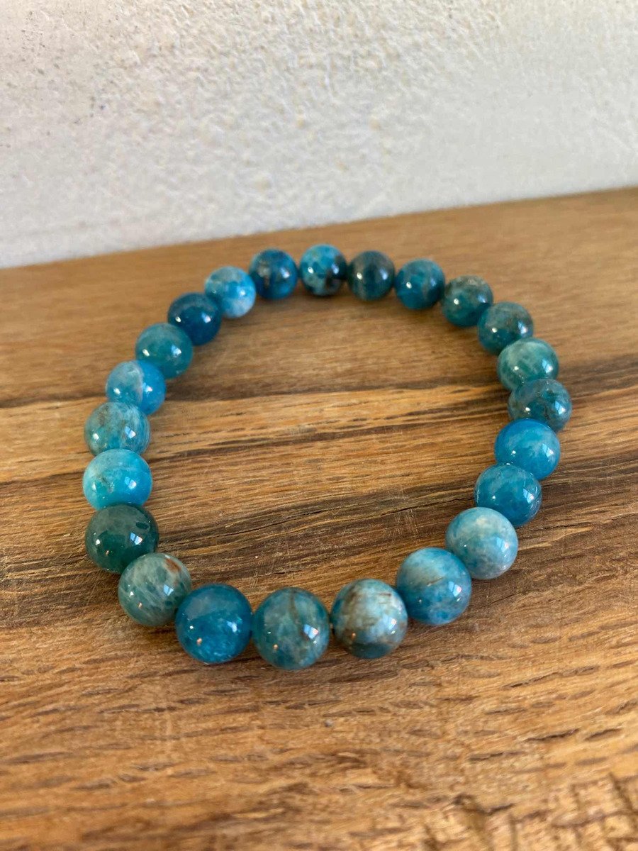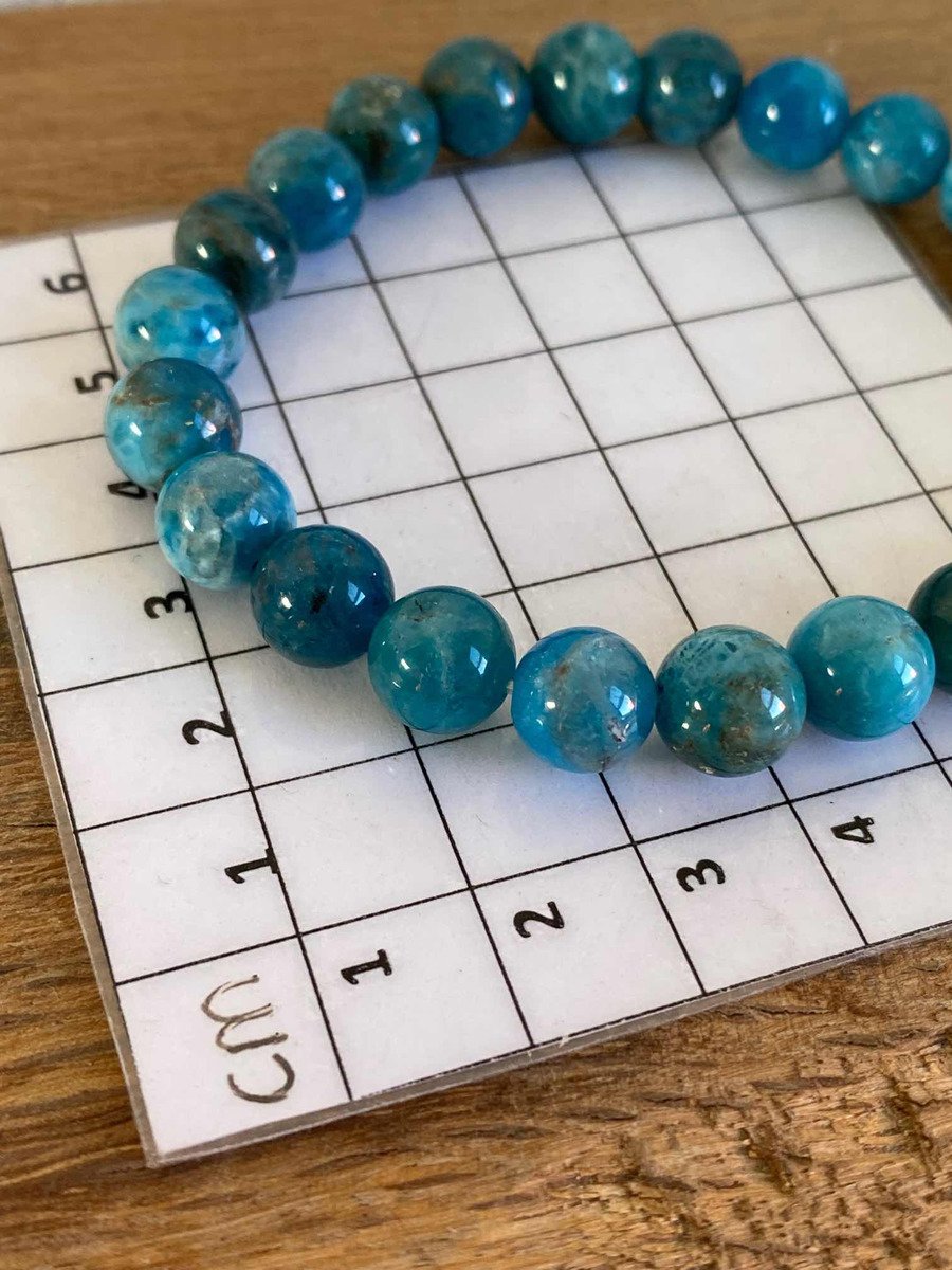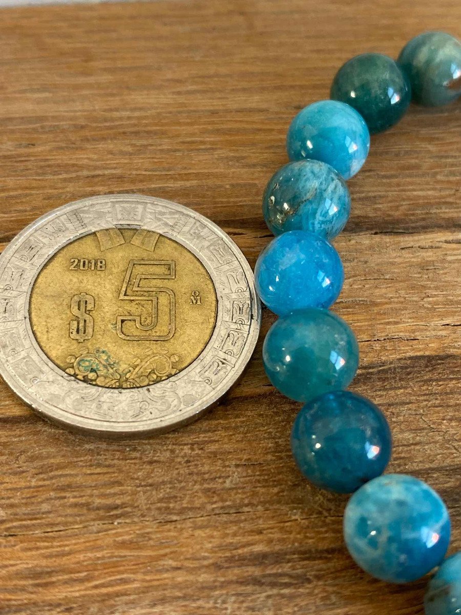 1 Pulsera De Apatito Azul Esfera 8 Mm Piedra Natural