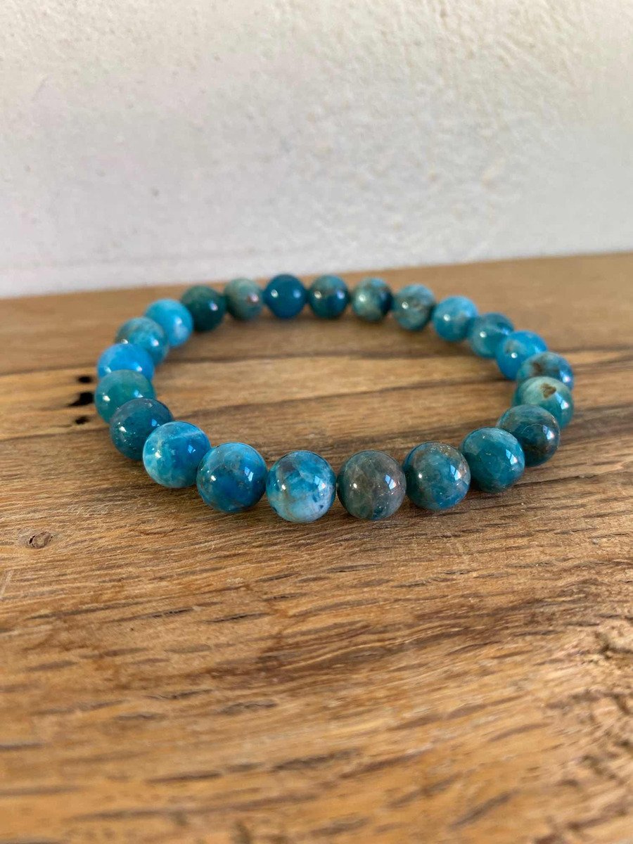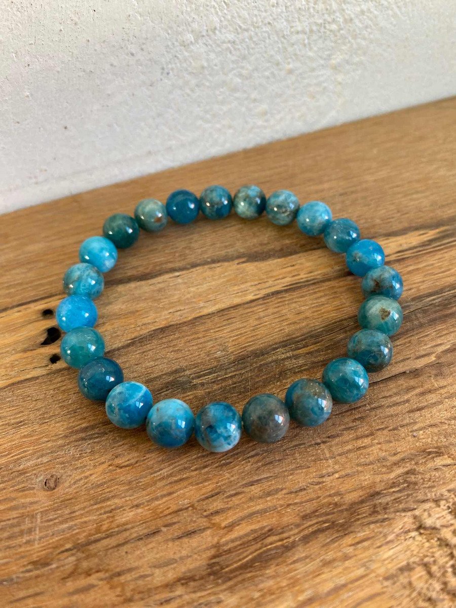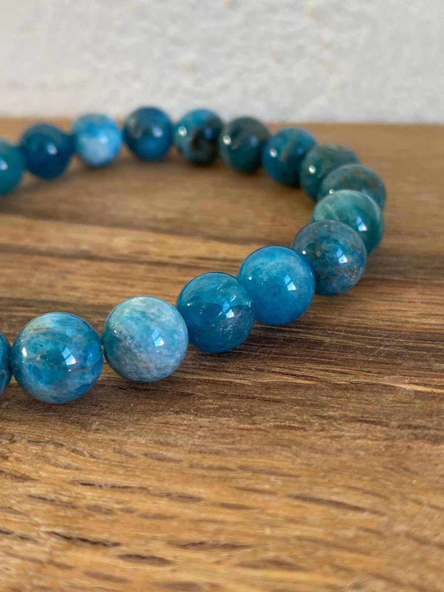 1 Pulsera De Apatito Azul Esfera 8 Mm Piedra Natural