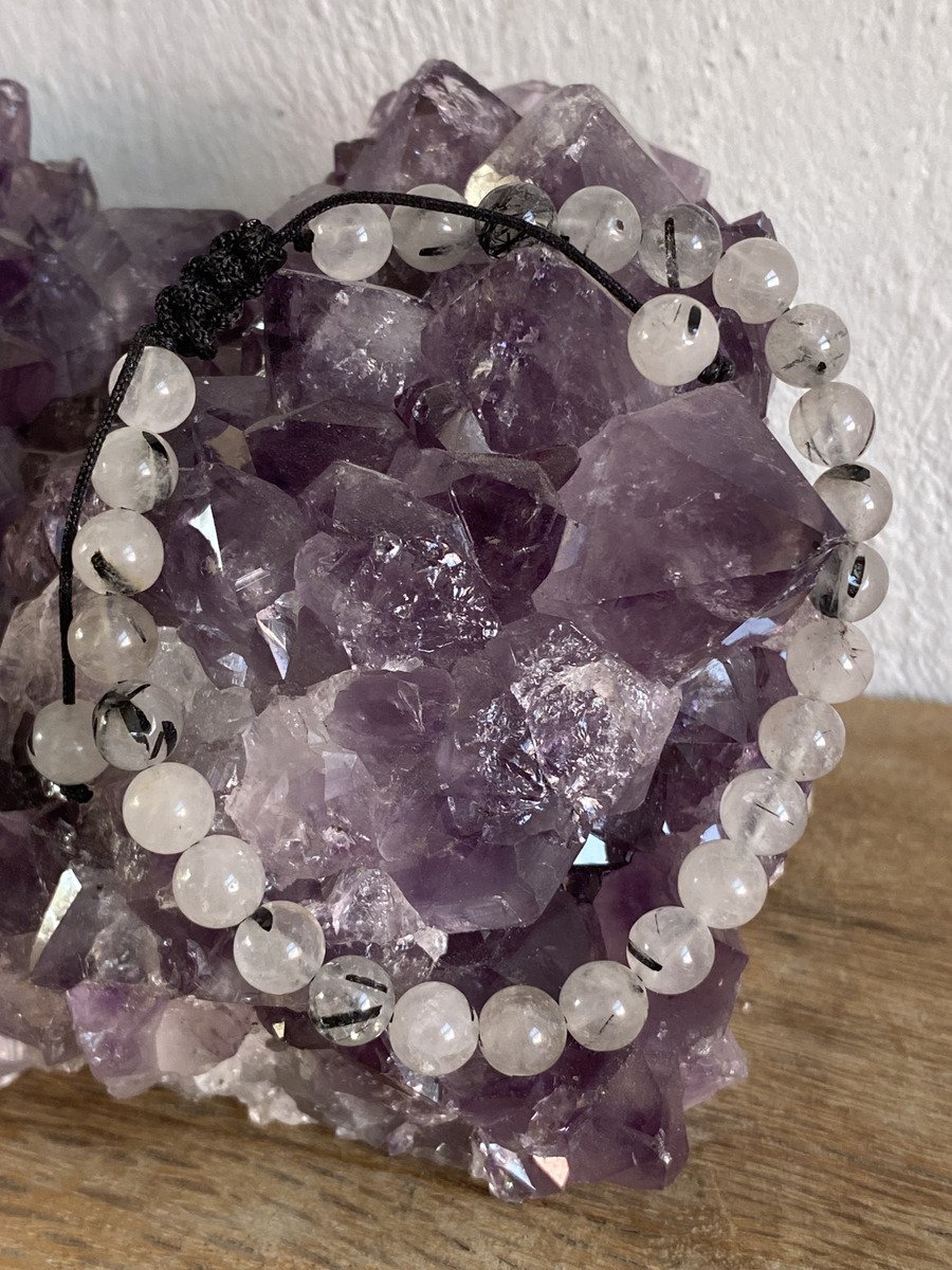 1 Pulsera De Cuarzo Turmalinado Piedra Natural Amuleto