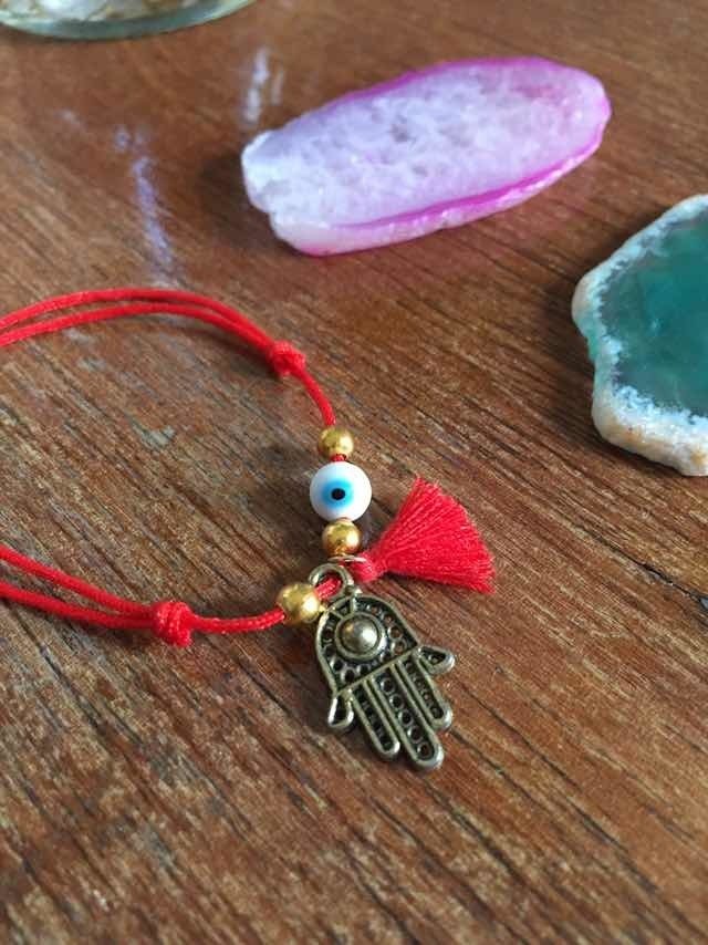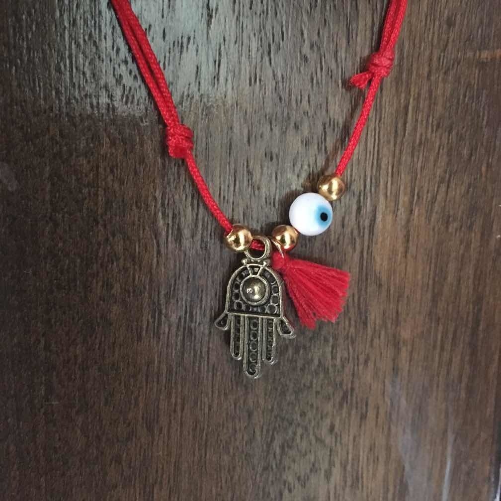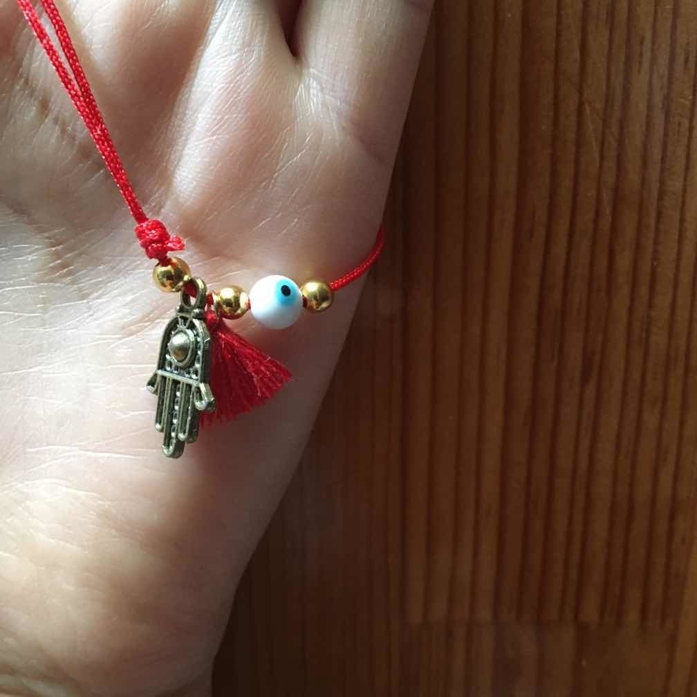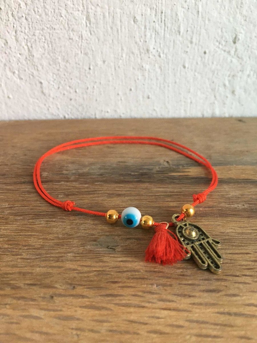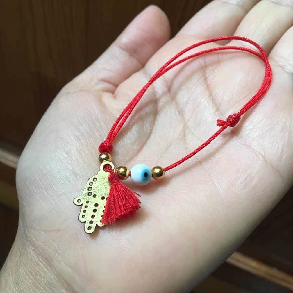 1 Pulsera De Hilo Rojo Mano De Fátima Y Ojo Turco Amuleto