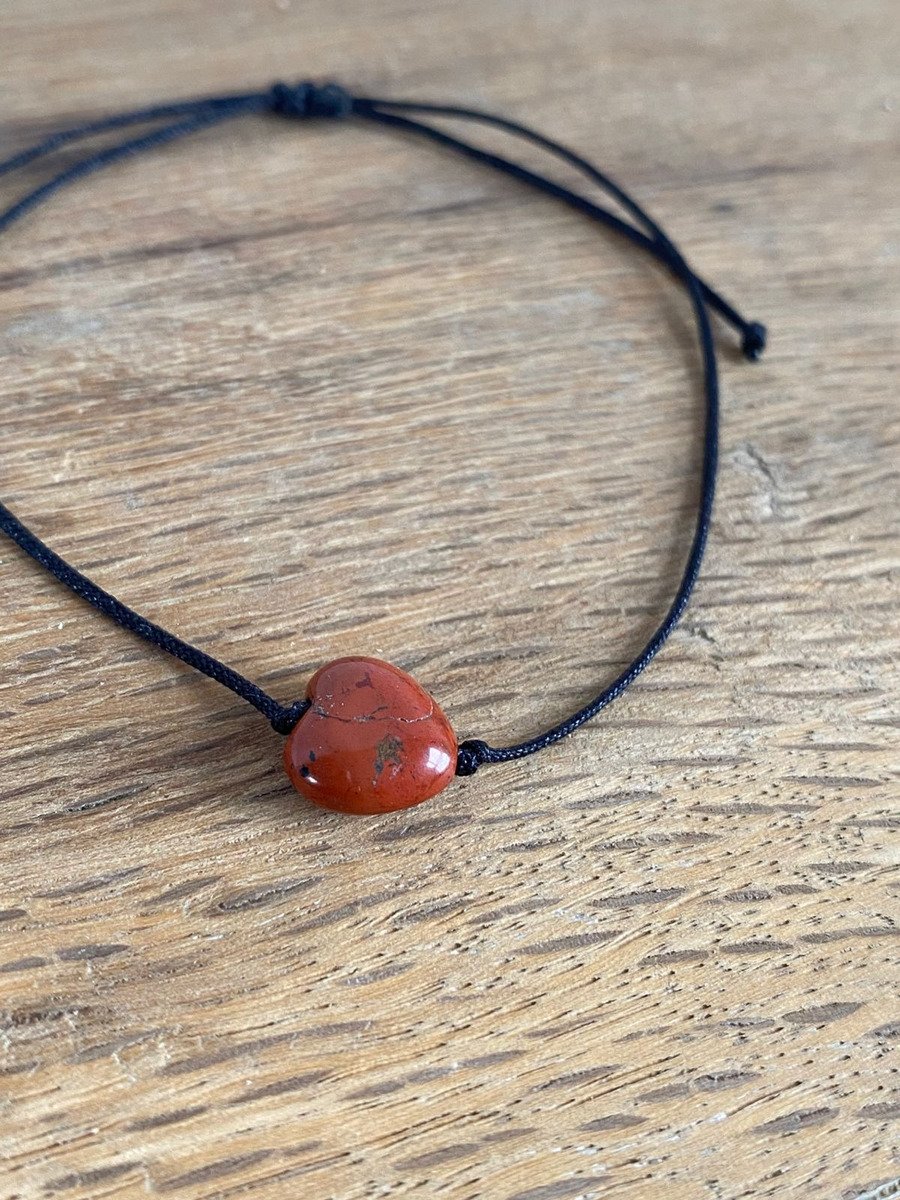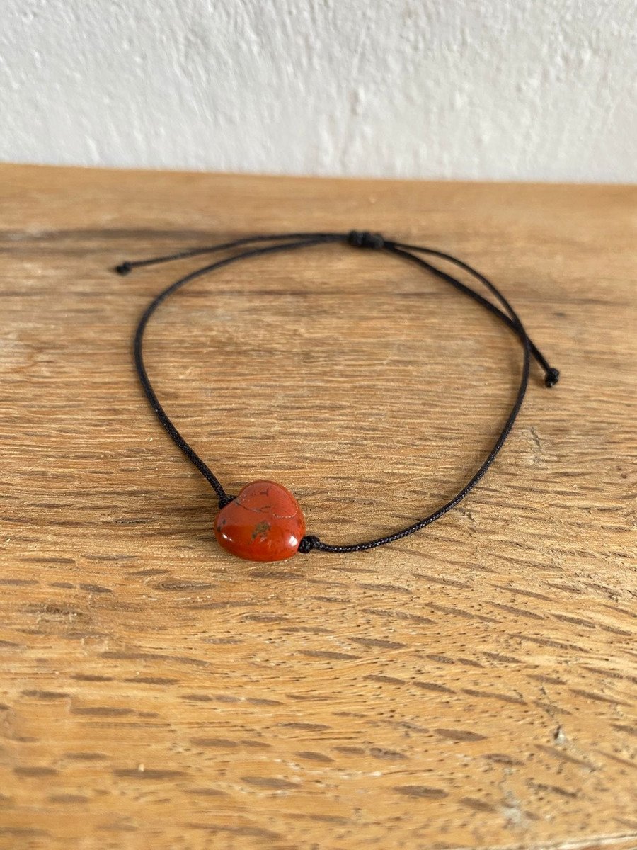 1 Pulsera De Jaspe Rojo Corazon E Hilo Natural Protector