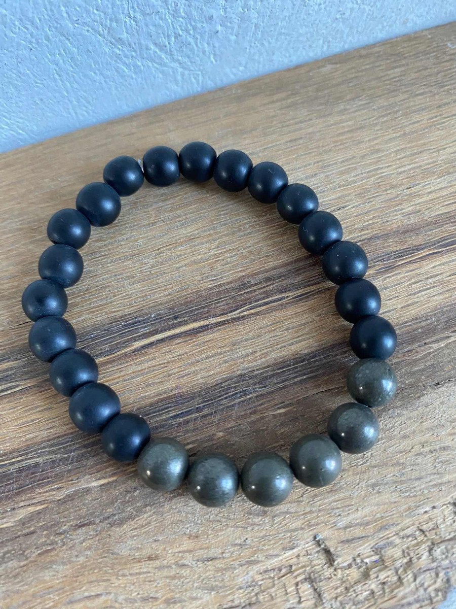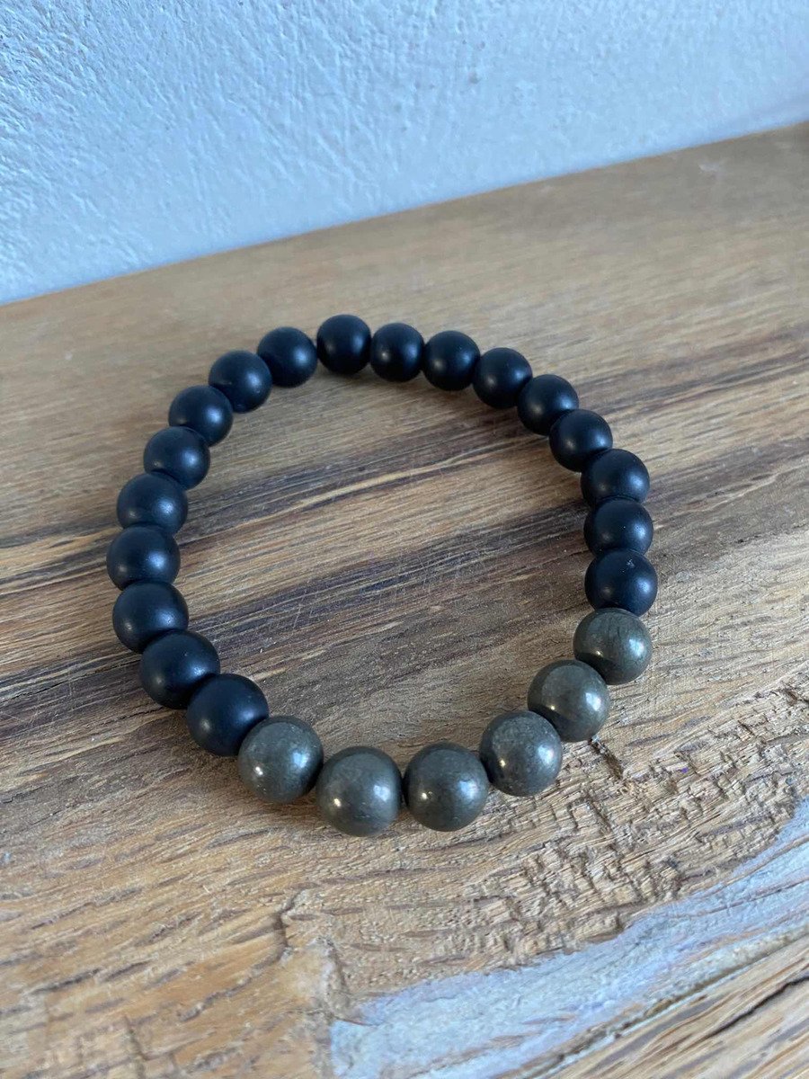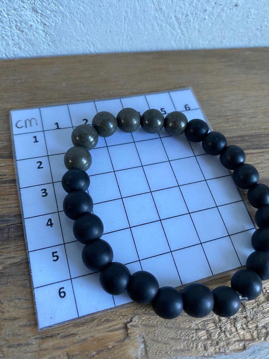 1 Pulsera De Pirita Piedra Natural Y Onix Negro Éxito Dinero
