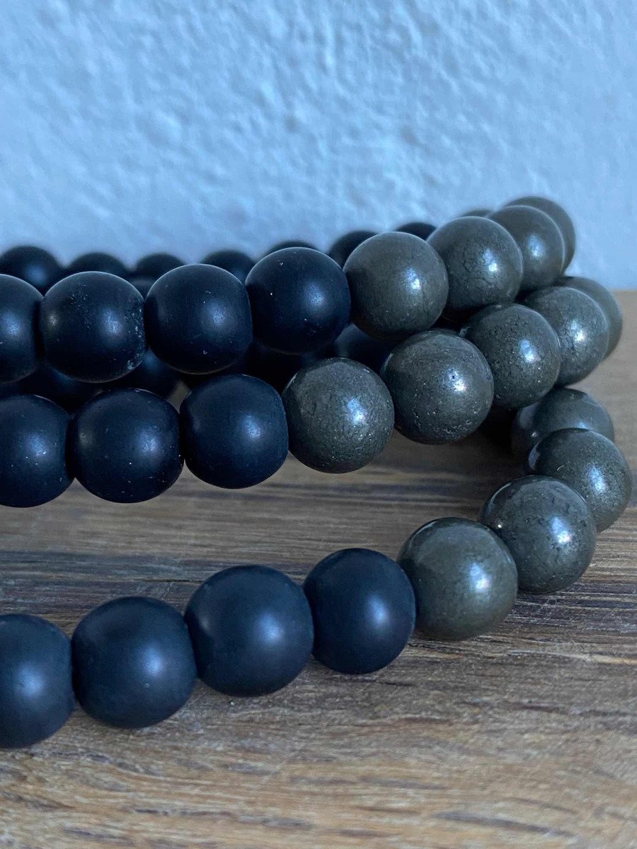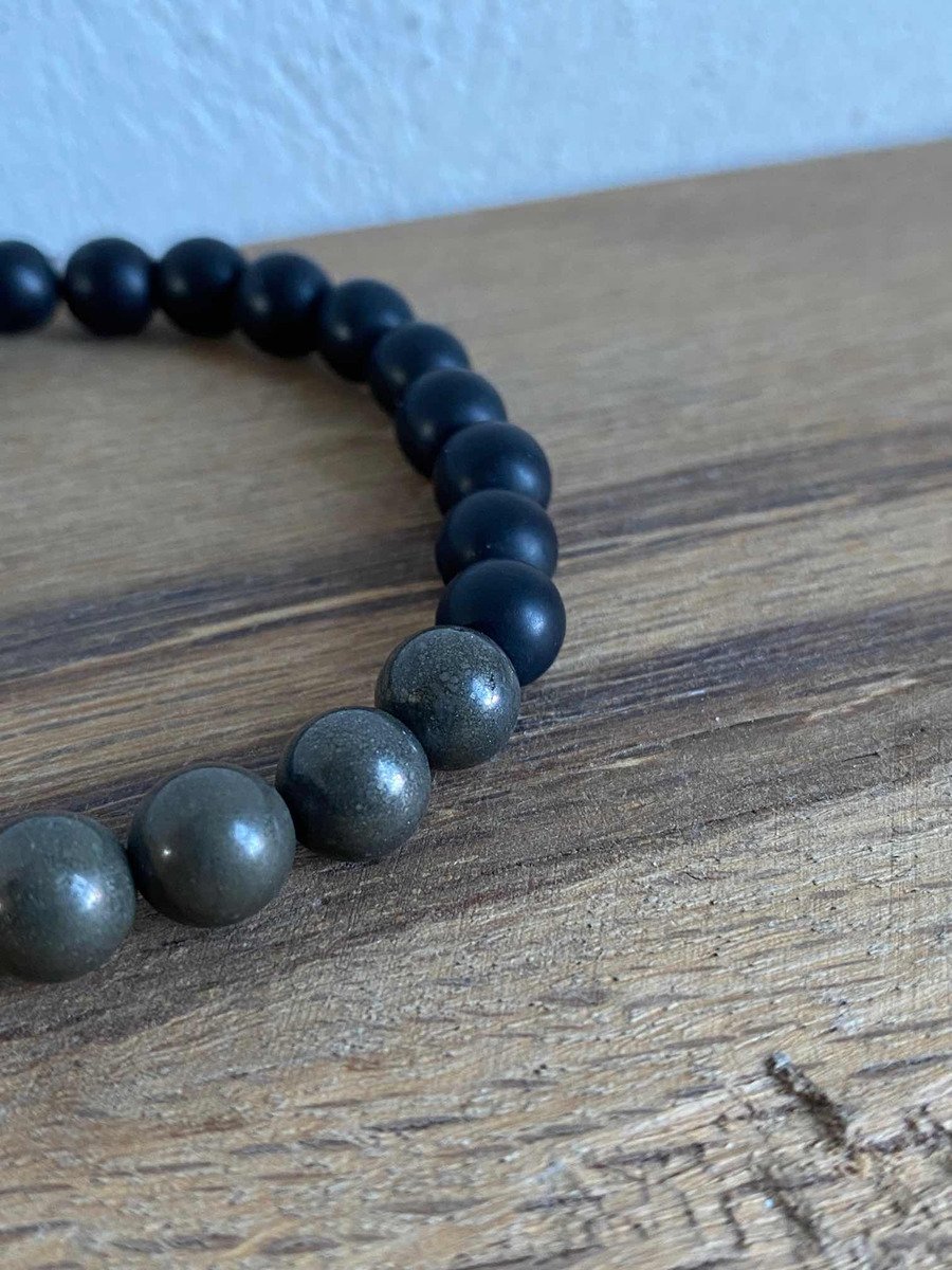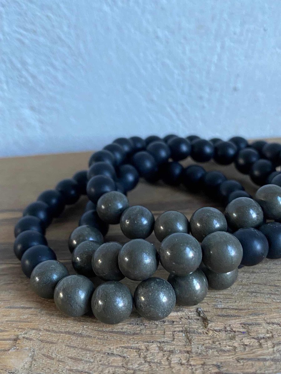 1 Pulsera De Pirita Piedra Natural Y Onix Negro Éxito Dinero
