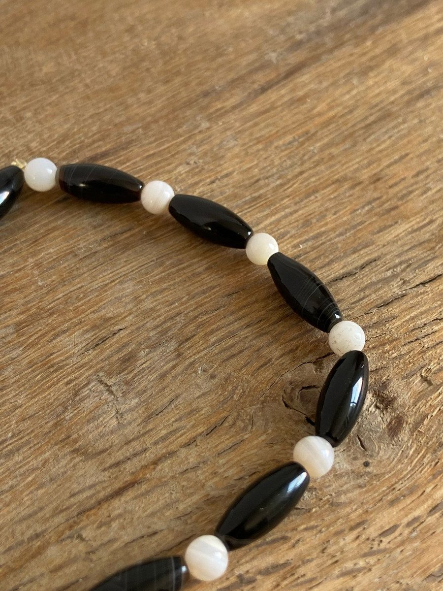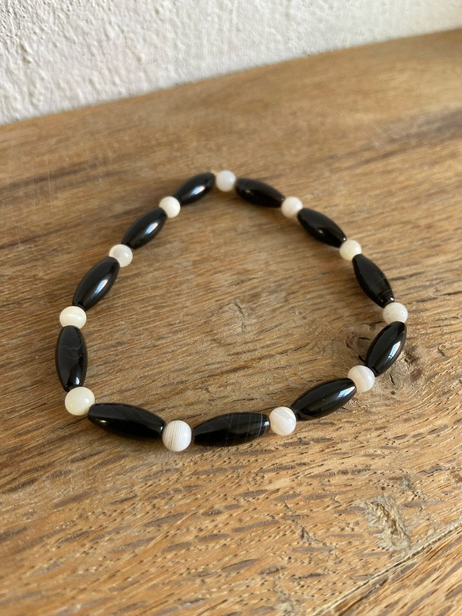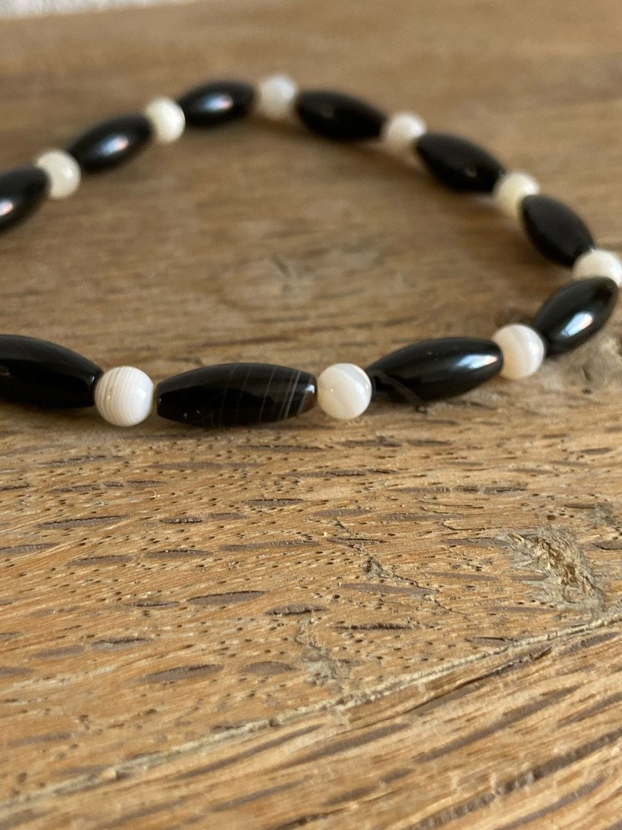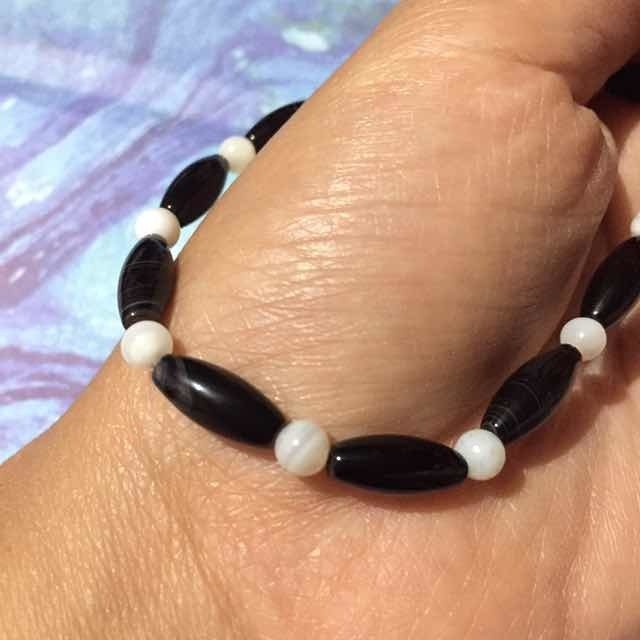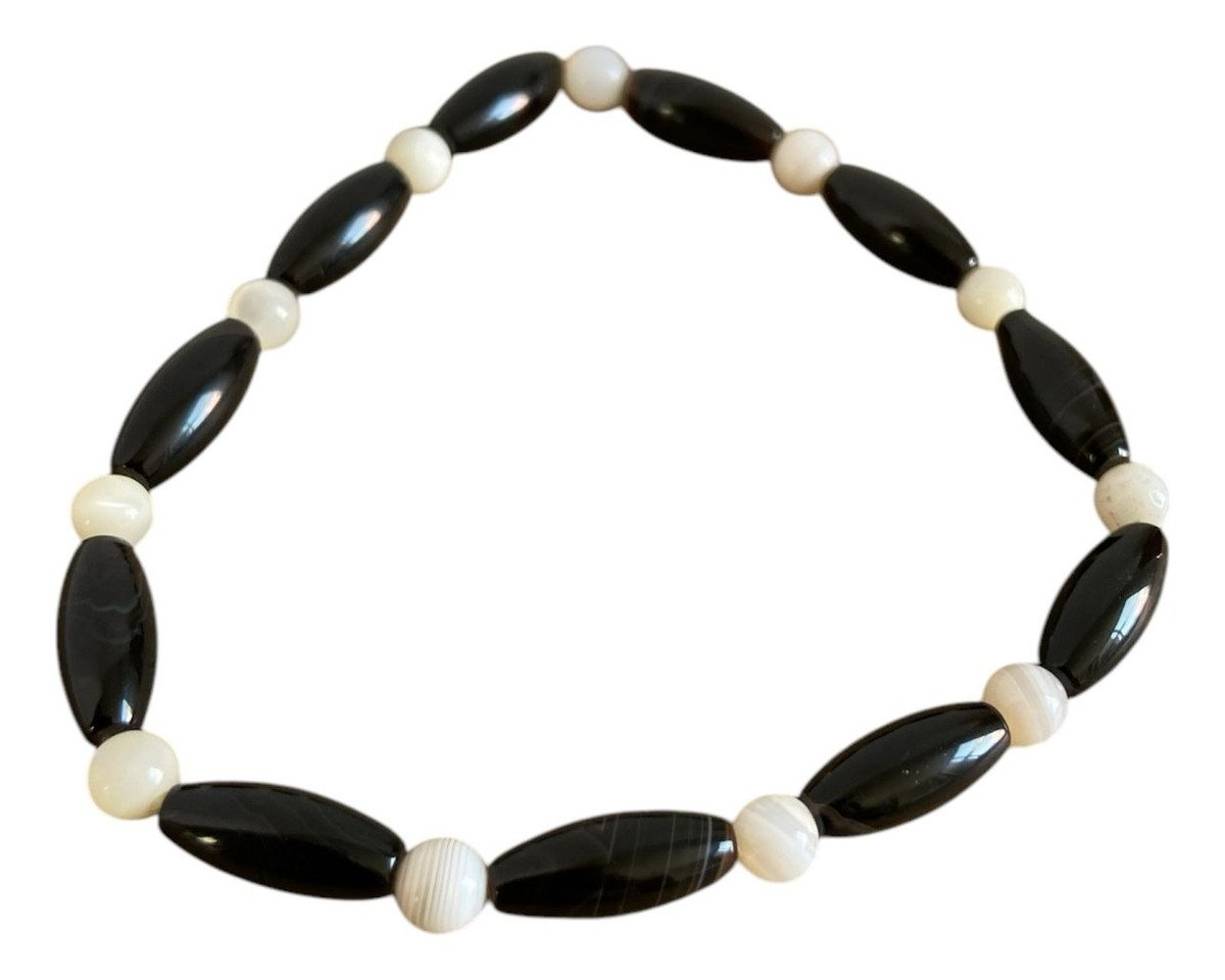 1 Pulsera Elegante De Agata Negra Y Concha Piedra Natural