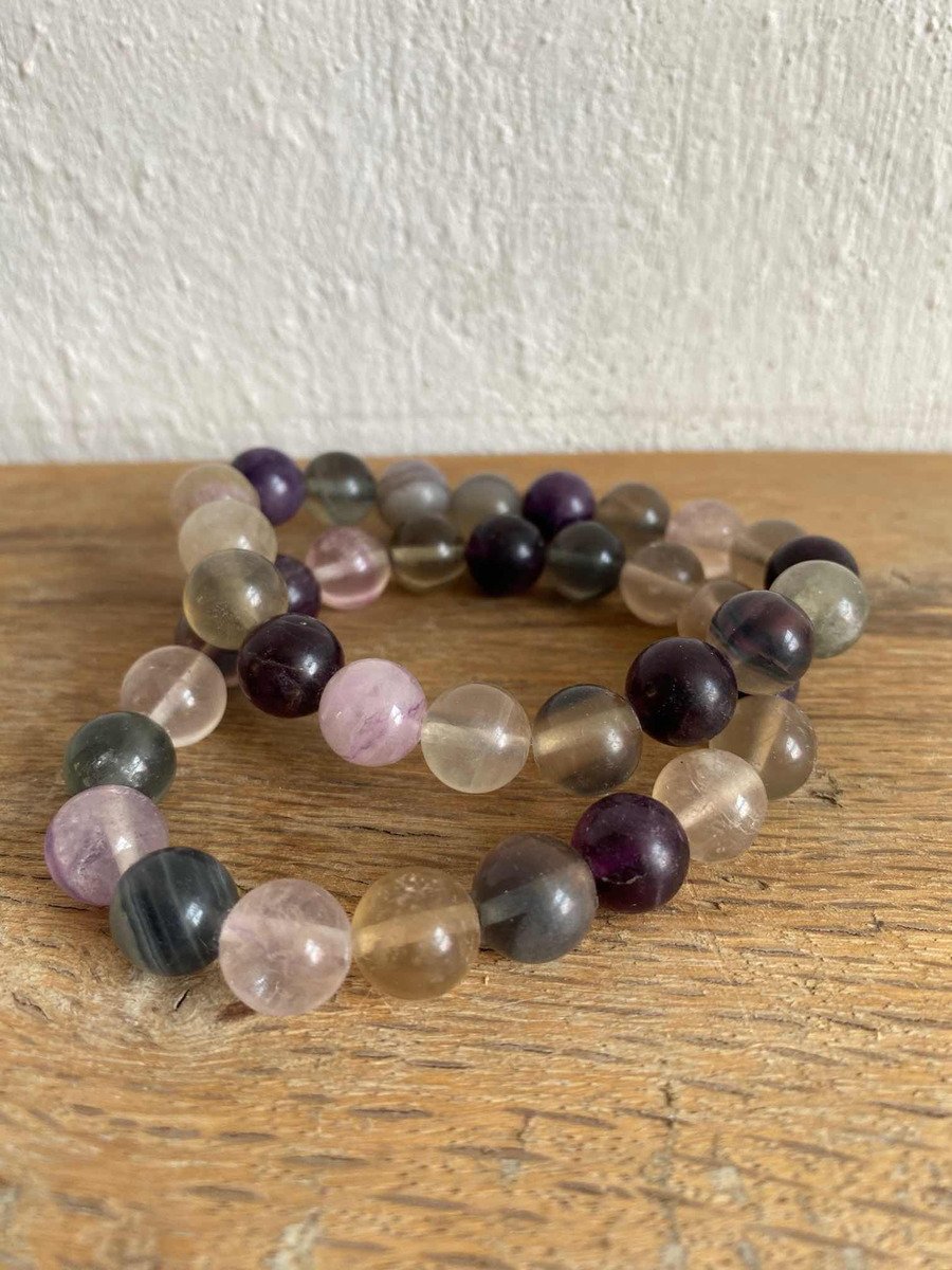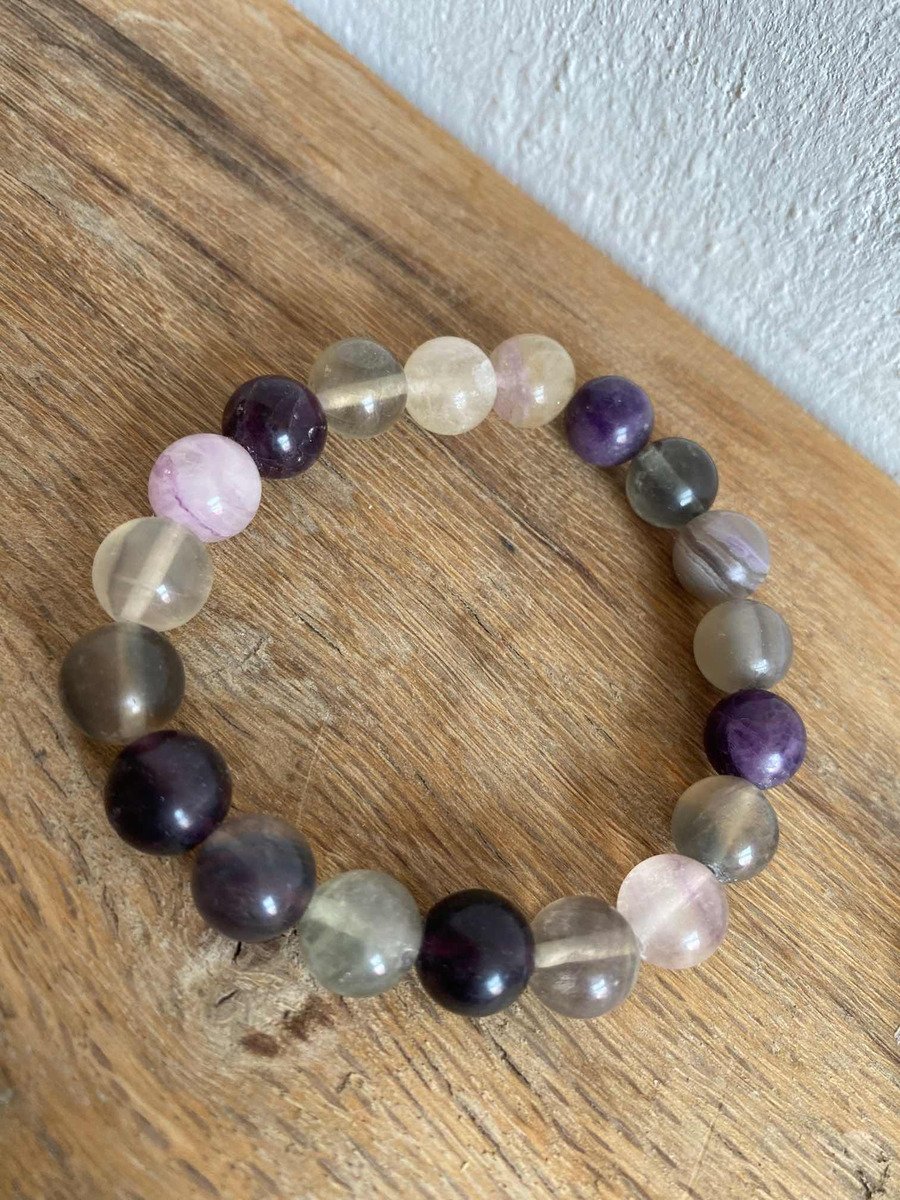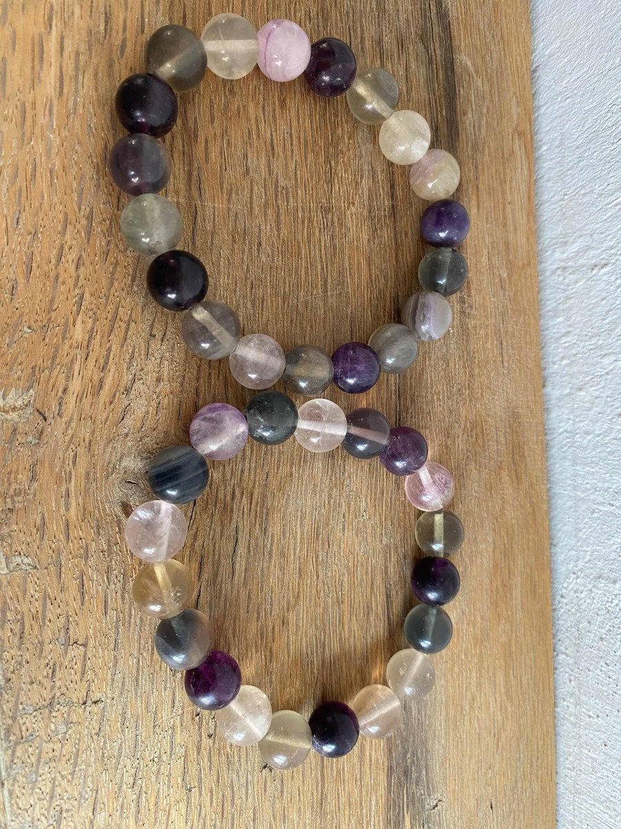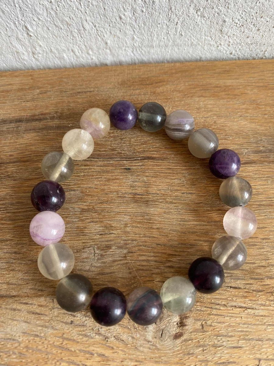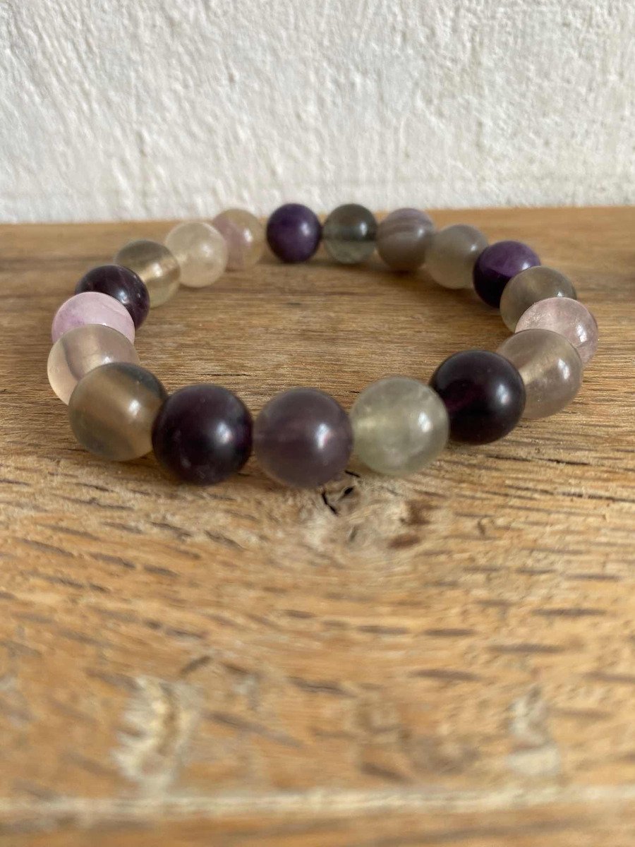 1 Pulsera Fluorita Arcoiris 10 Mm Piedra Natural Espiritual