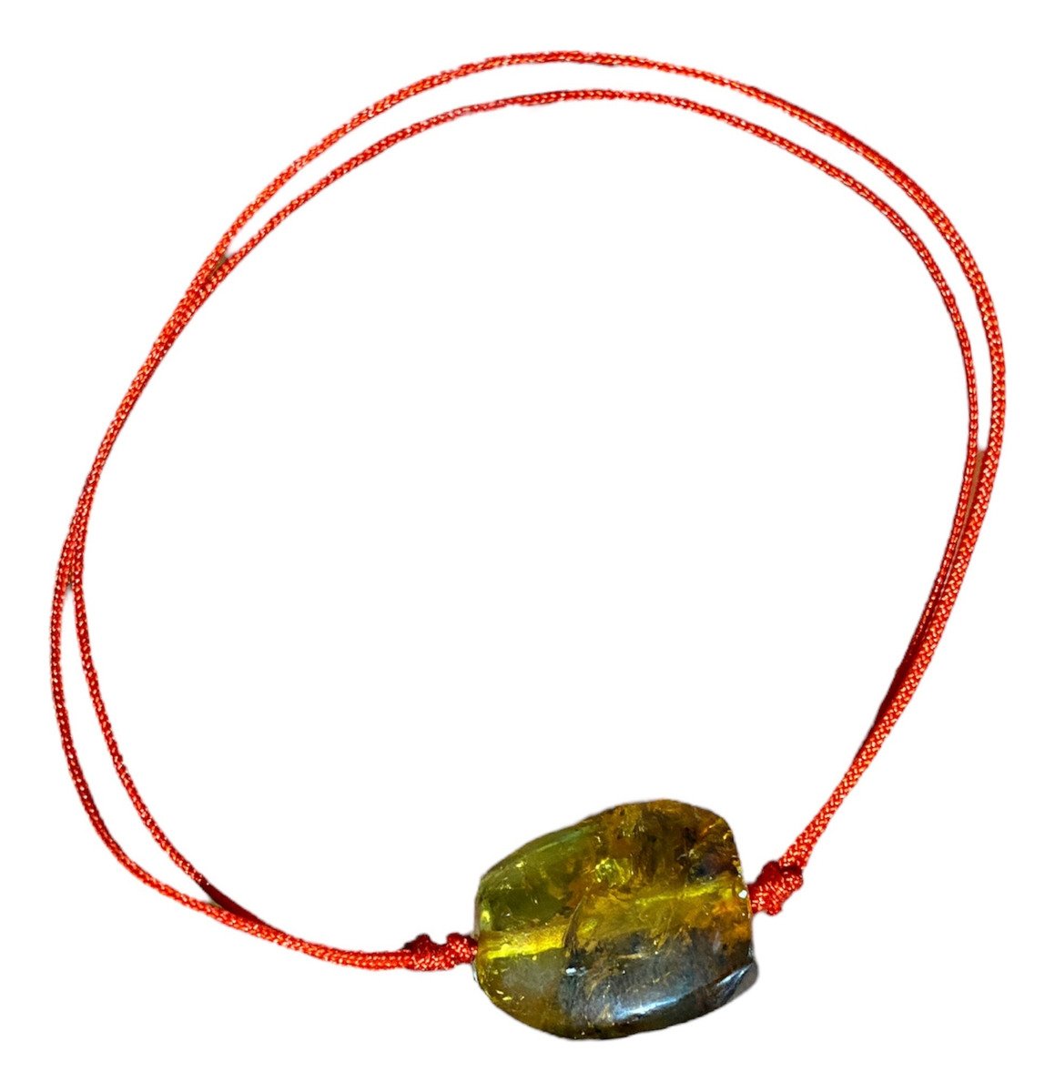 1 Pulsera Hilo Rojo Y Ámbar Autentico Piedra Natural Unisex
