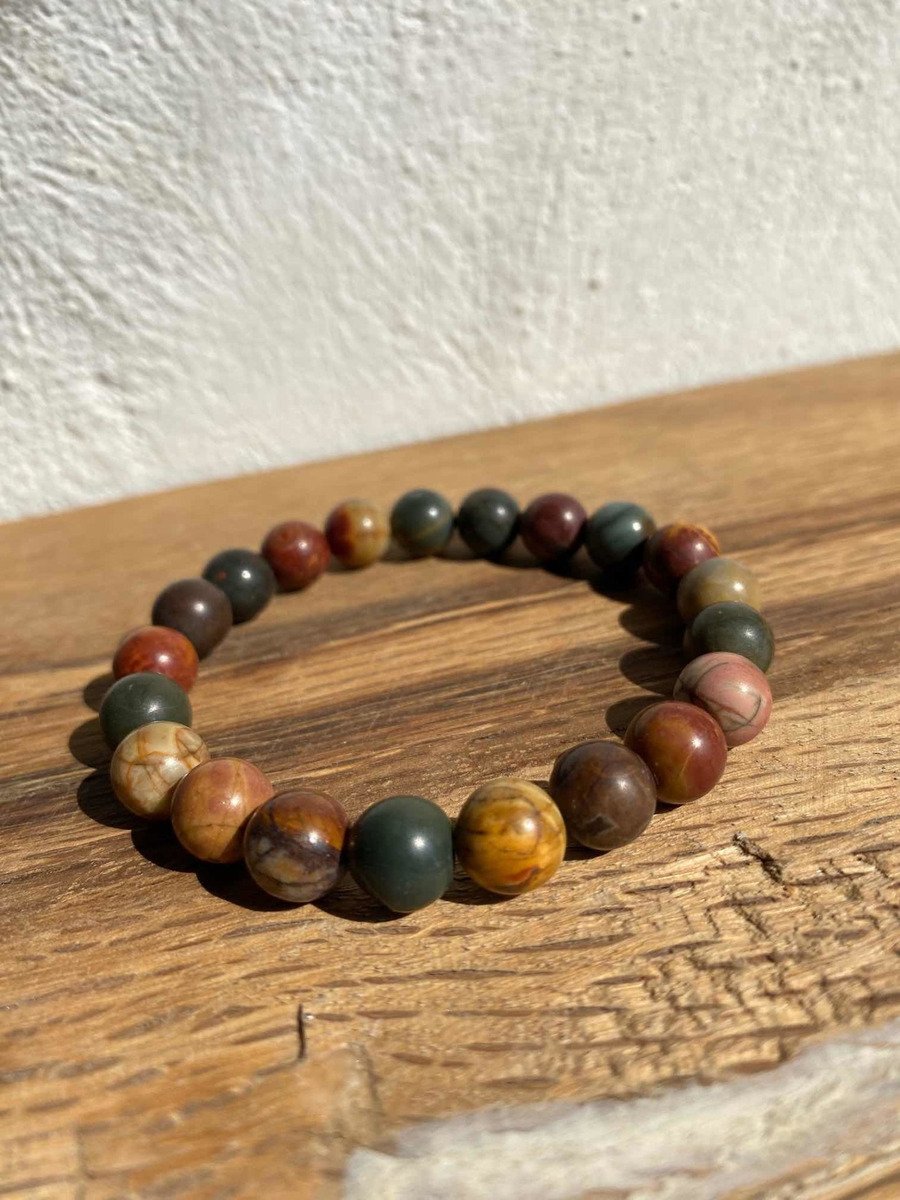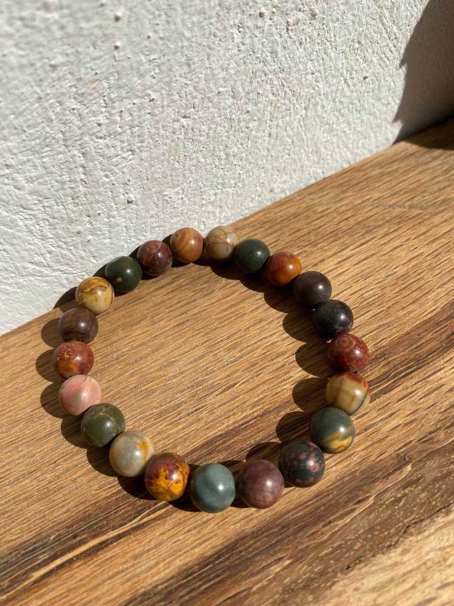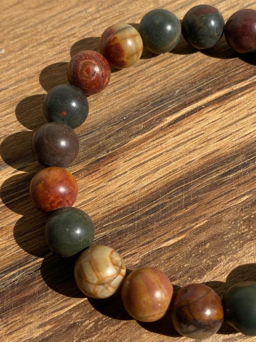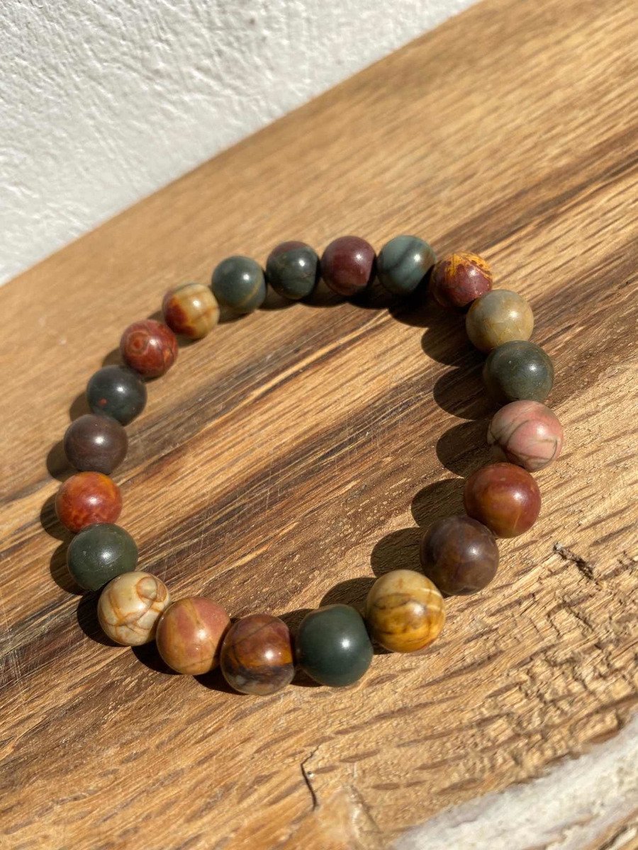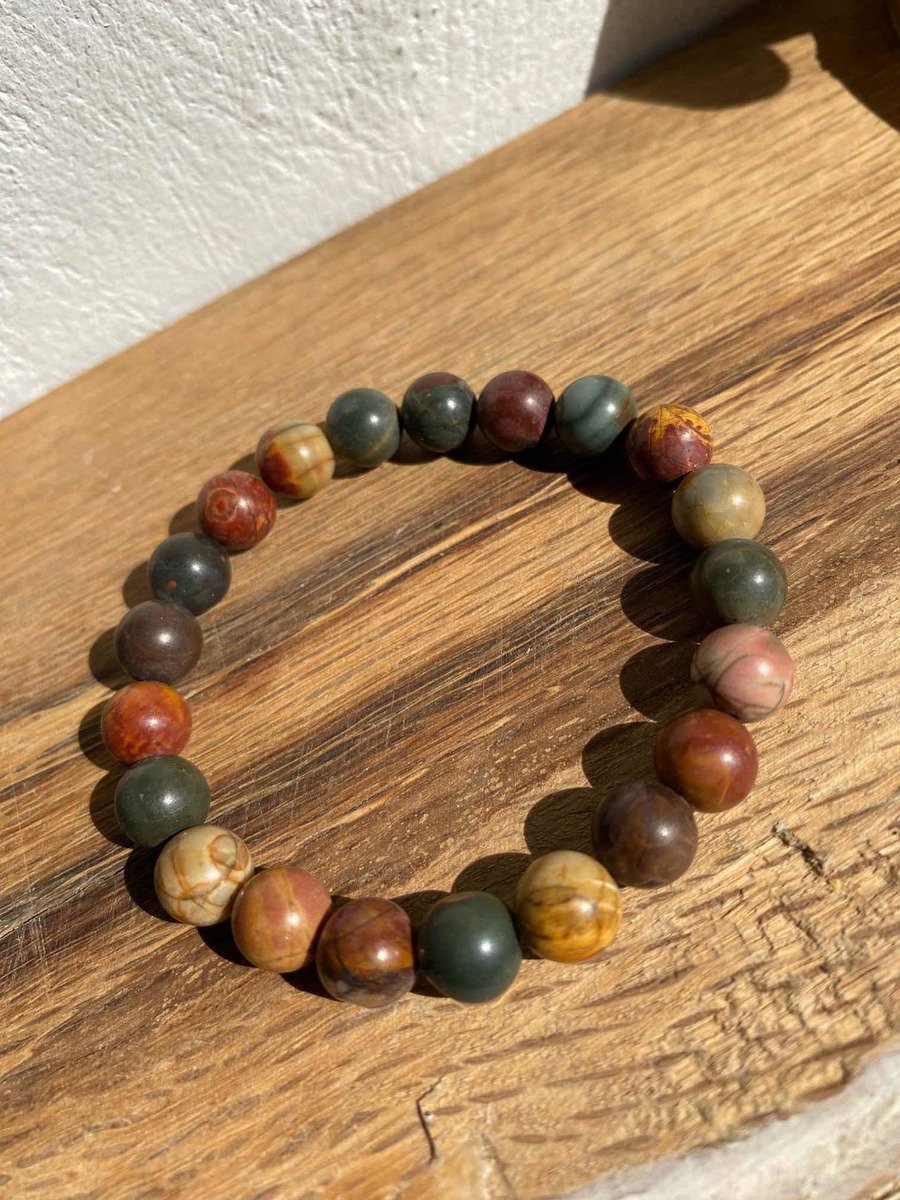 1 Pulsera Jaspe Picasso 8 Mm Piedra Natural Reiki