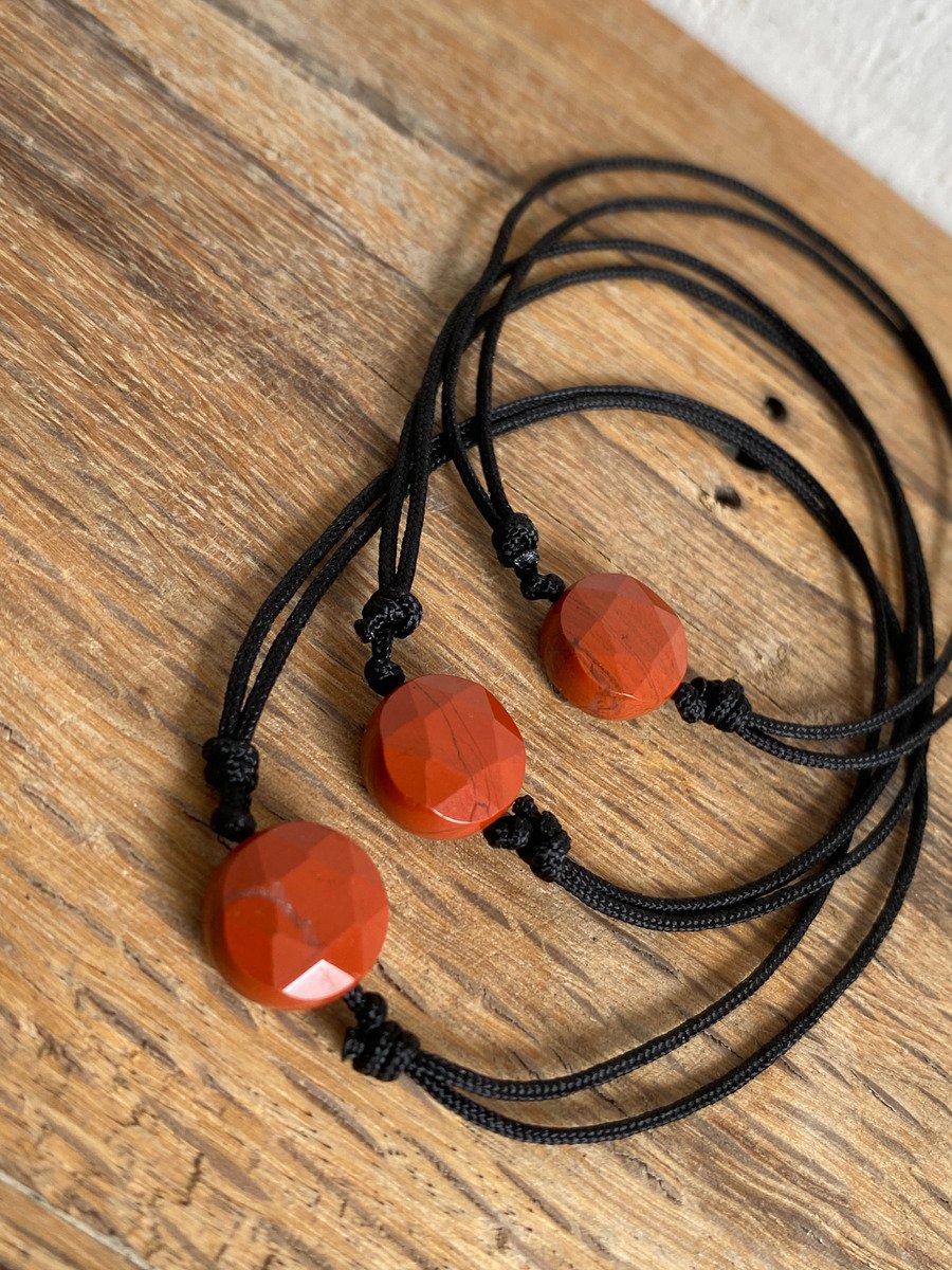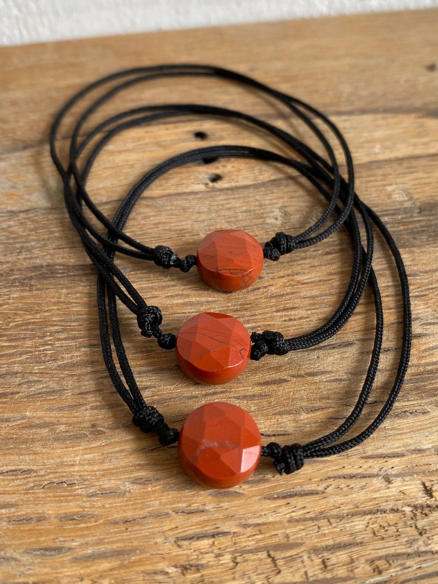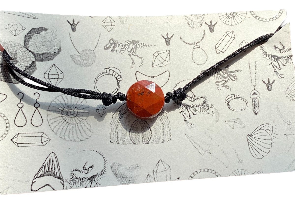 1 Pulsera Jaspe Rojo Faceteado Con Hilo Negro