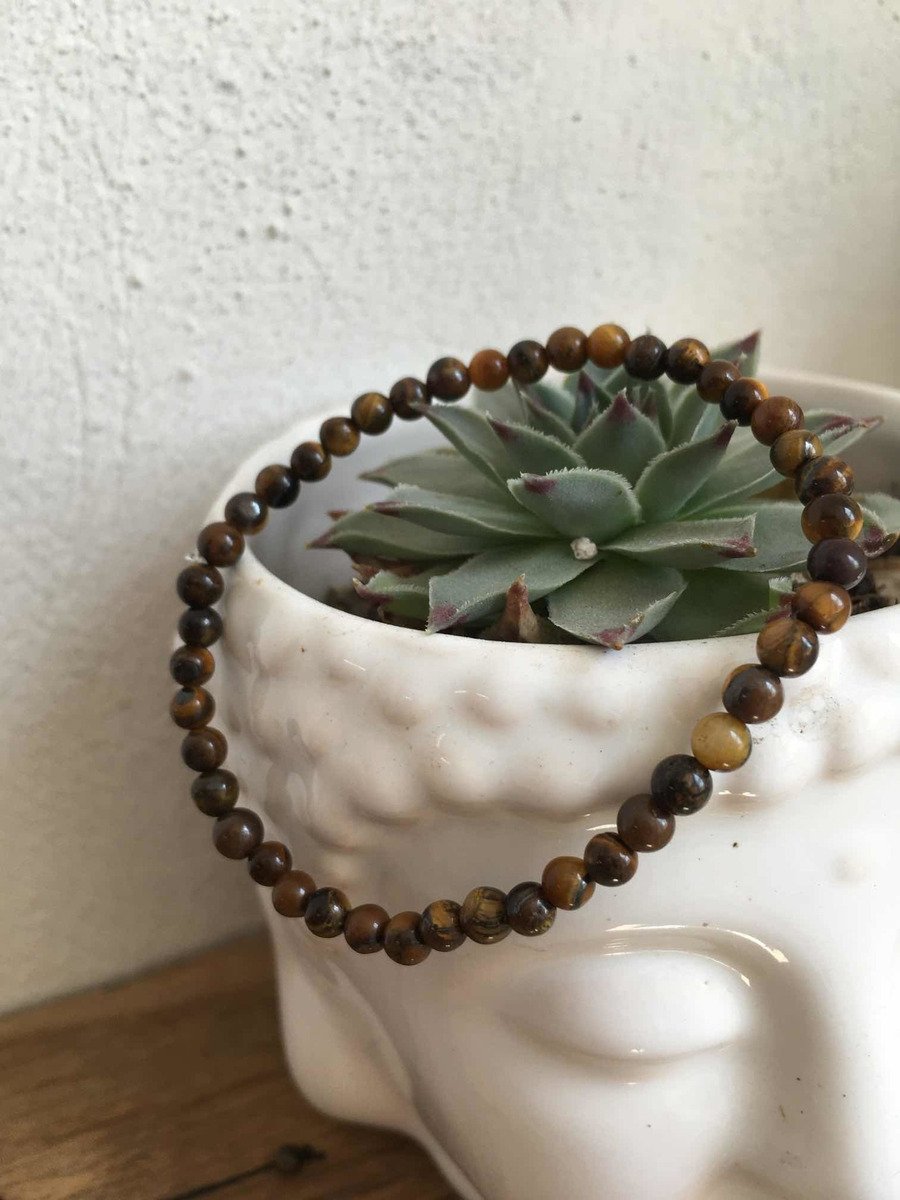 1 Pulsera Piedra De Ojo De Tigre Piedra Natural Amuleto 4 mm