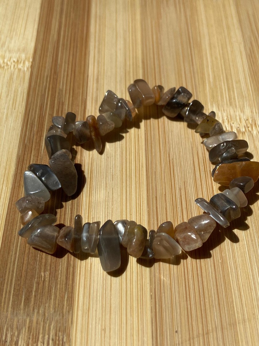 1 Pulsera Piedra Sol Y Piedra Luna Gris Natural Amuleto