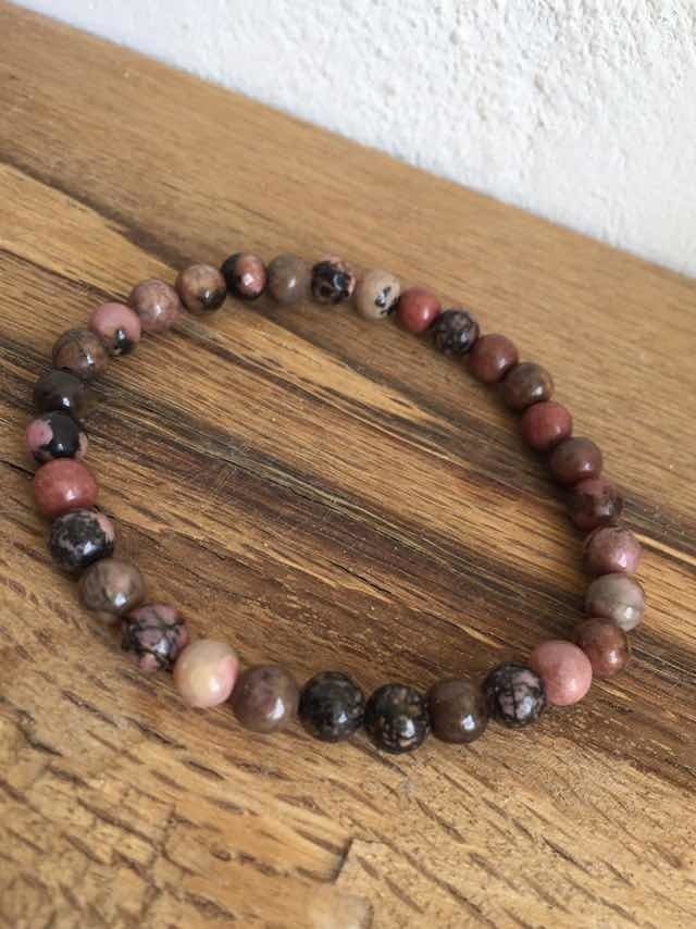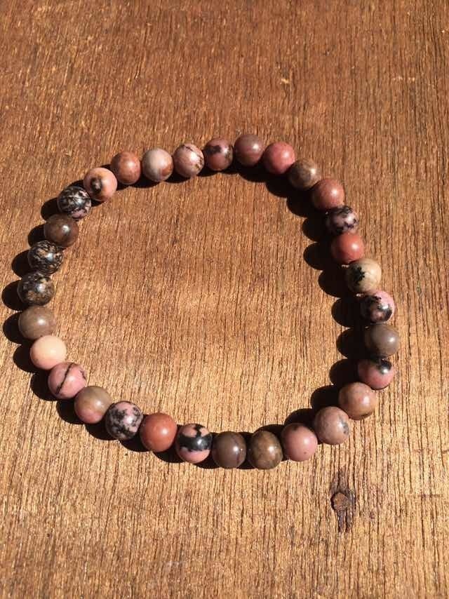 1 Pulsera Rodonita 6 Mm Natural Reiki Chakras Semipreciosa