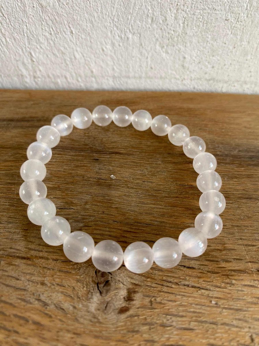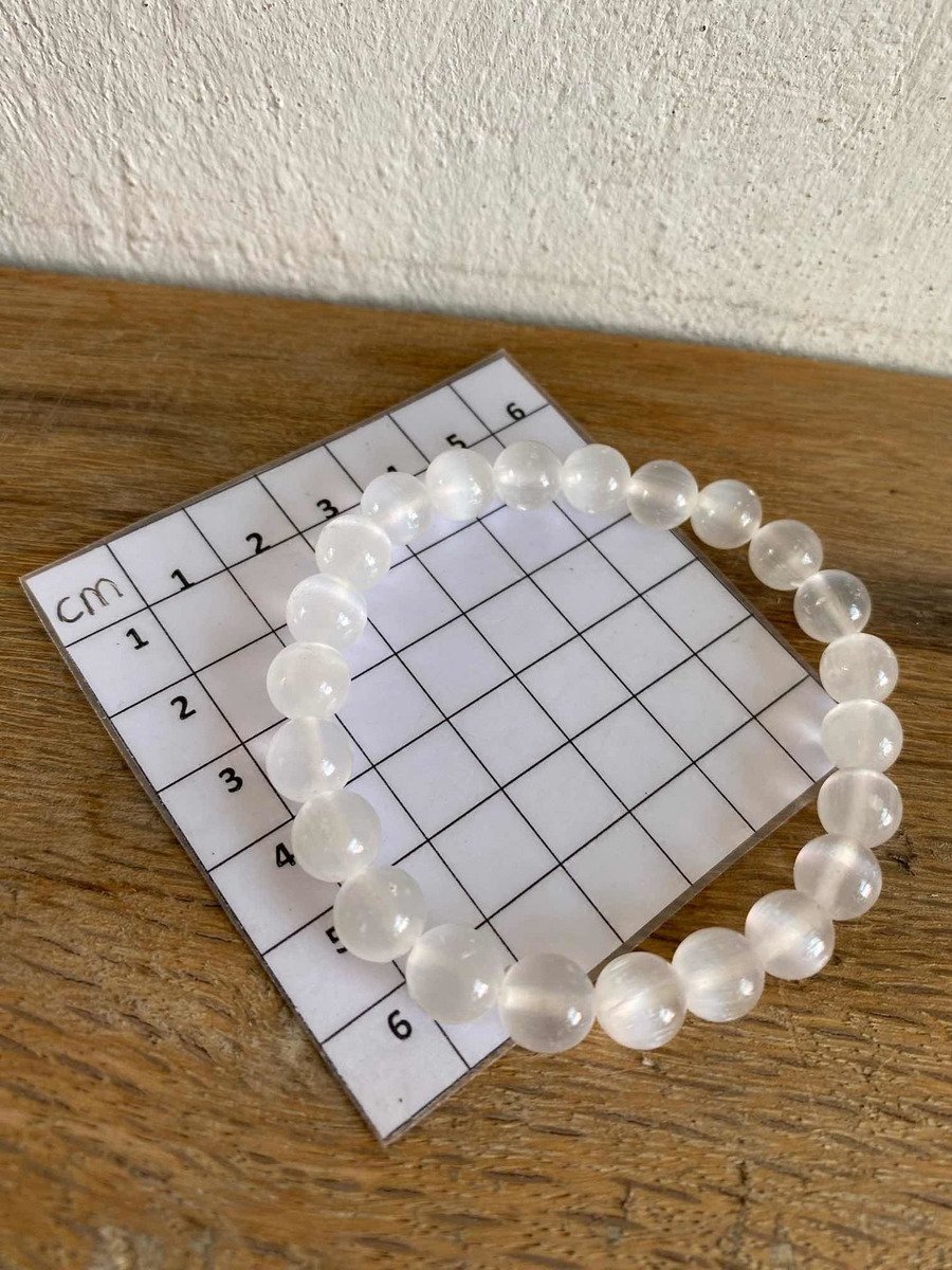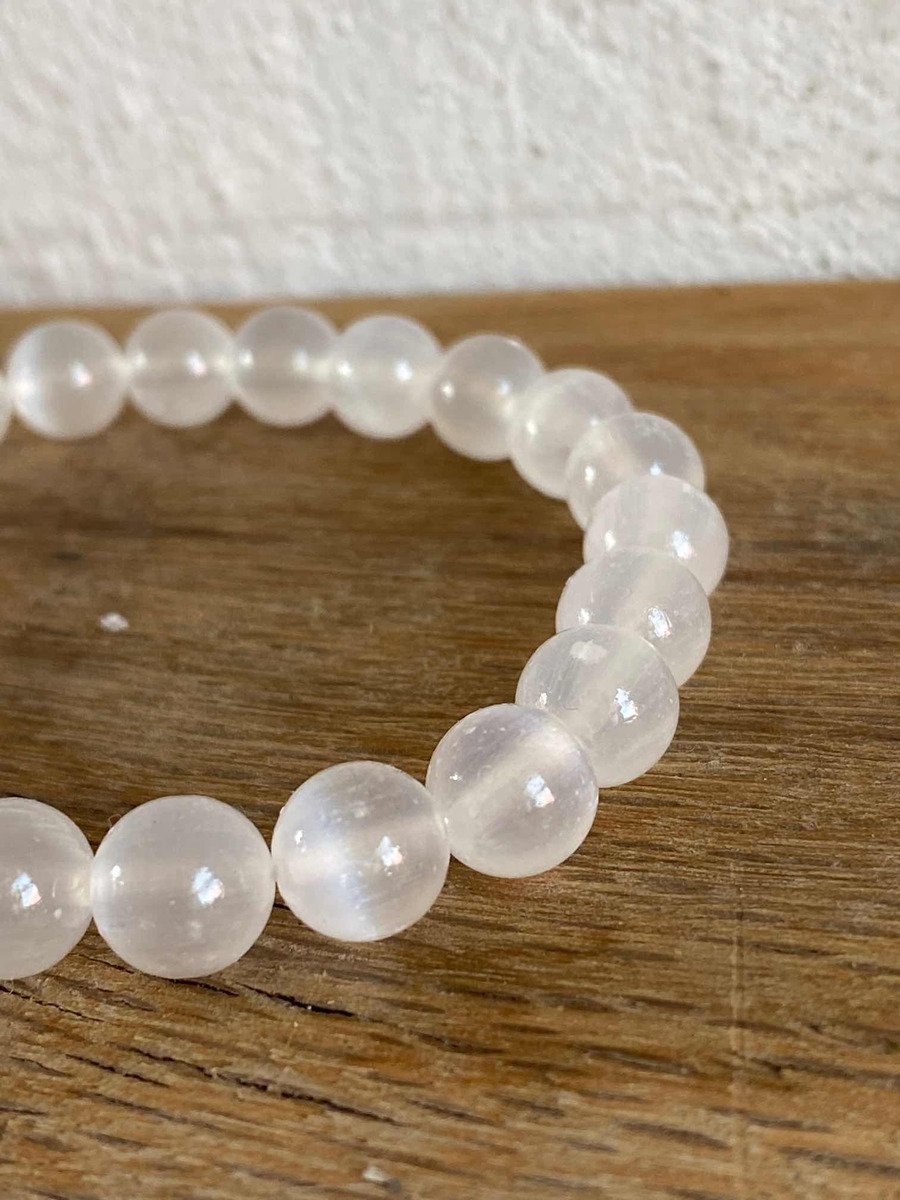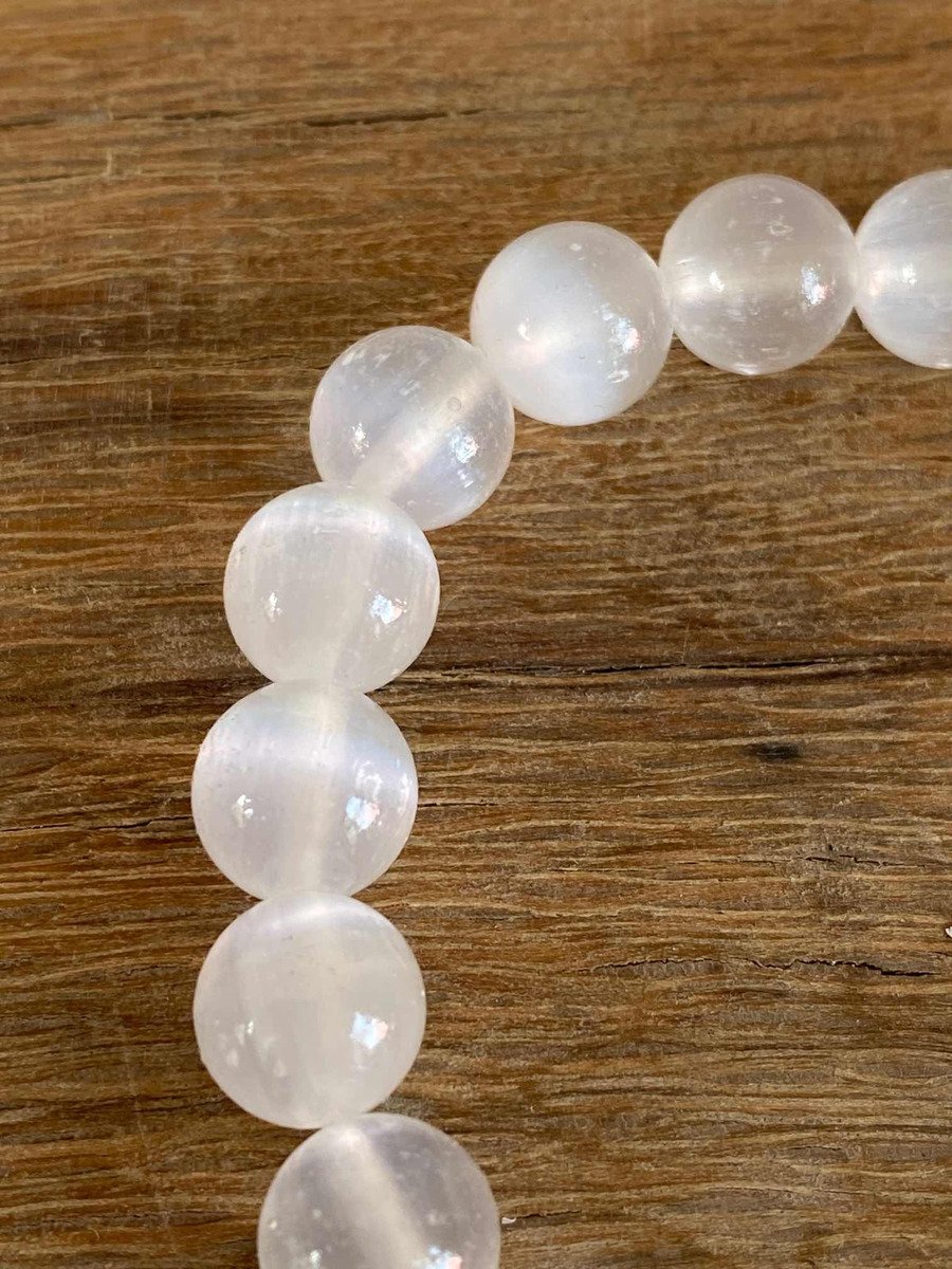 1 Pulsera Selenita 8 Mm Autentica Yeso 23 Cuentas Reiki