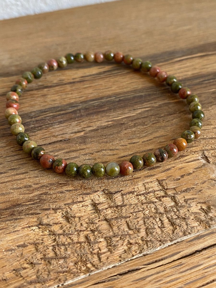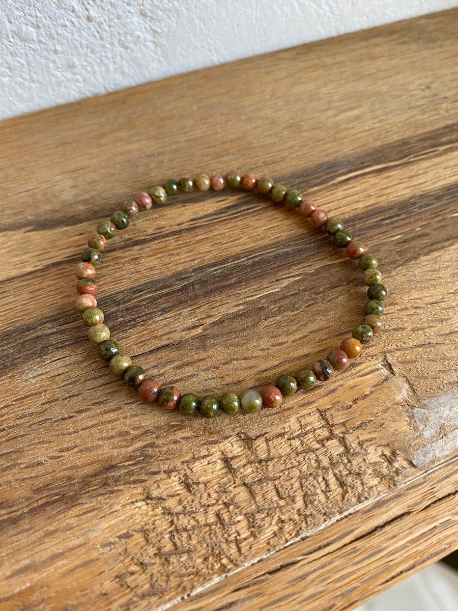 1 Pulsera Unakita Esferas De 4 Mm Piedra De La Sanación