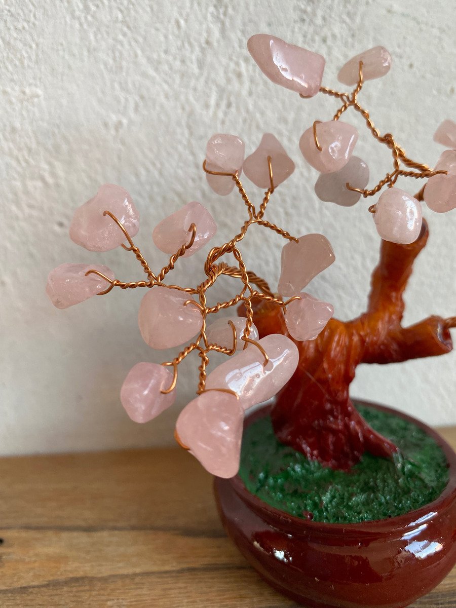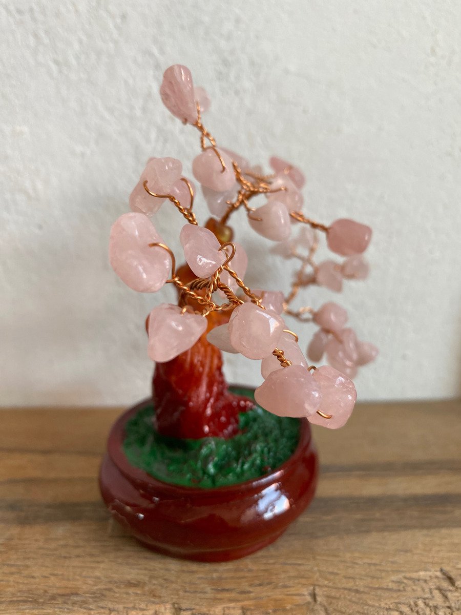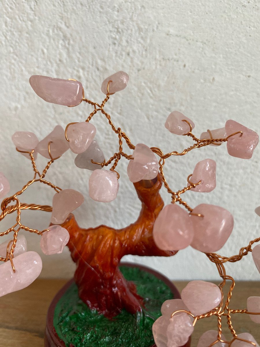 Arbol Con Cuarzo Rosa Piedra Natural Ornamental Bonsai