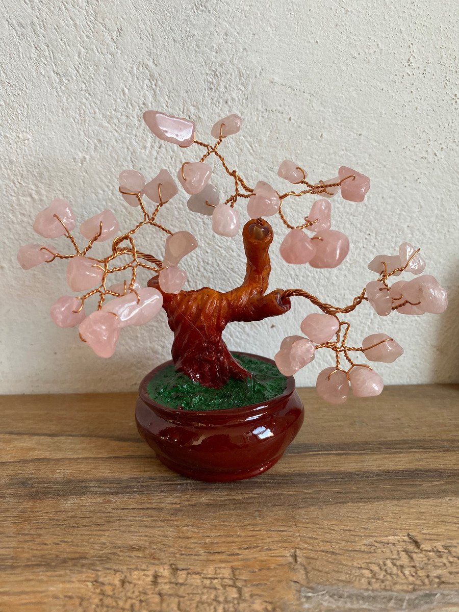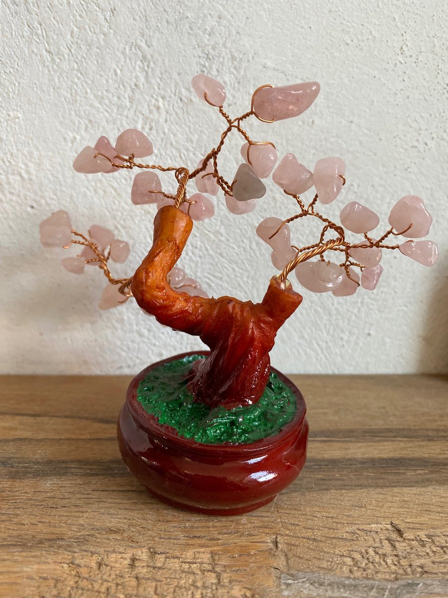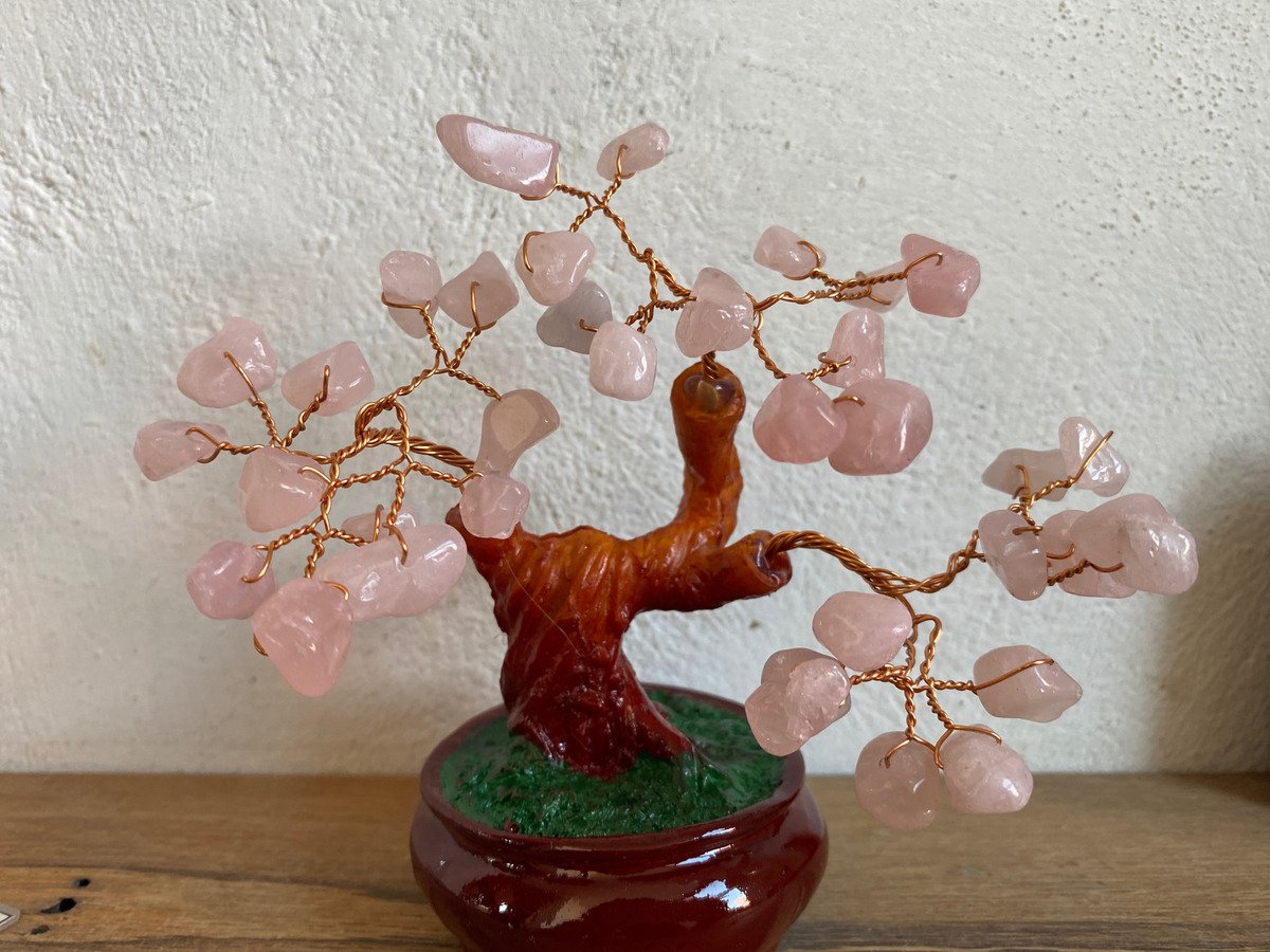 Arbol Con Cuarzo Rosa Piedra Natural Ornamental Bonsai