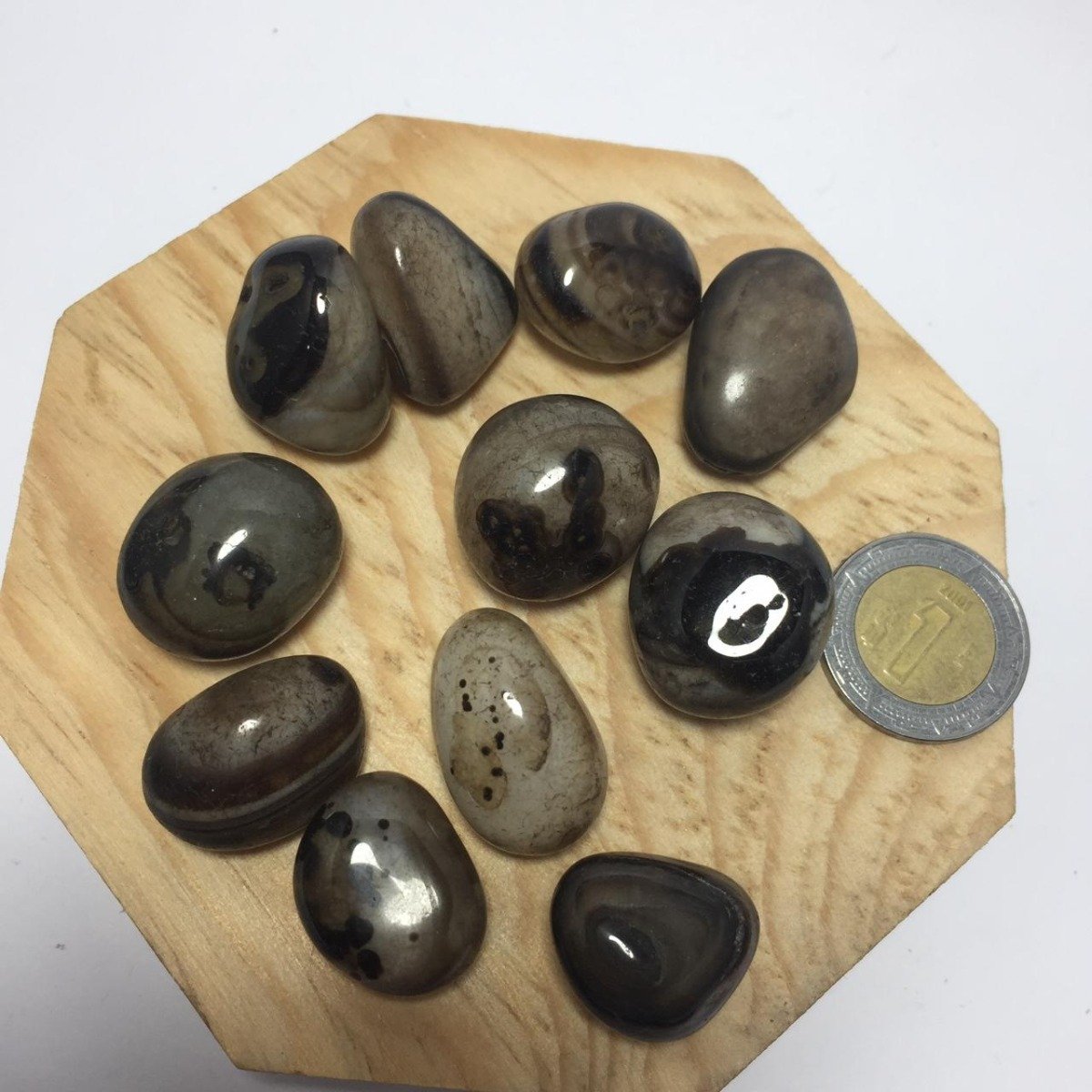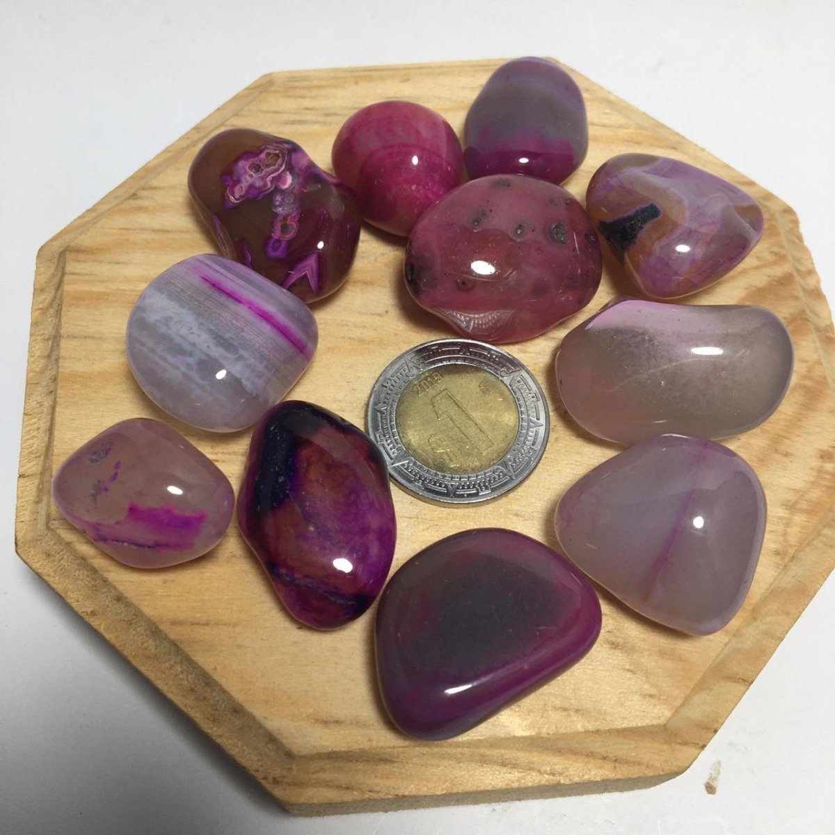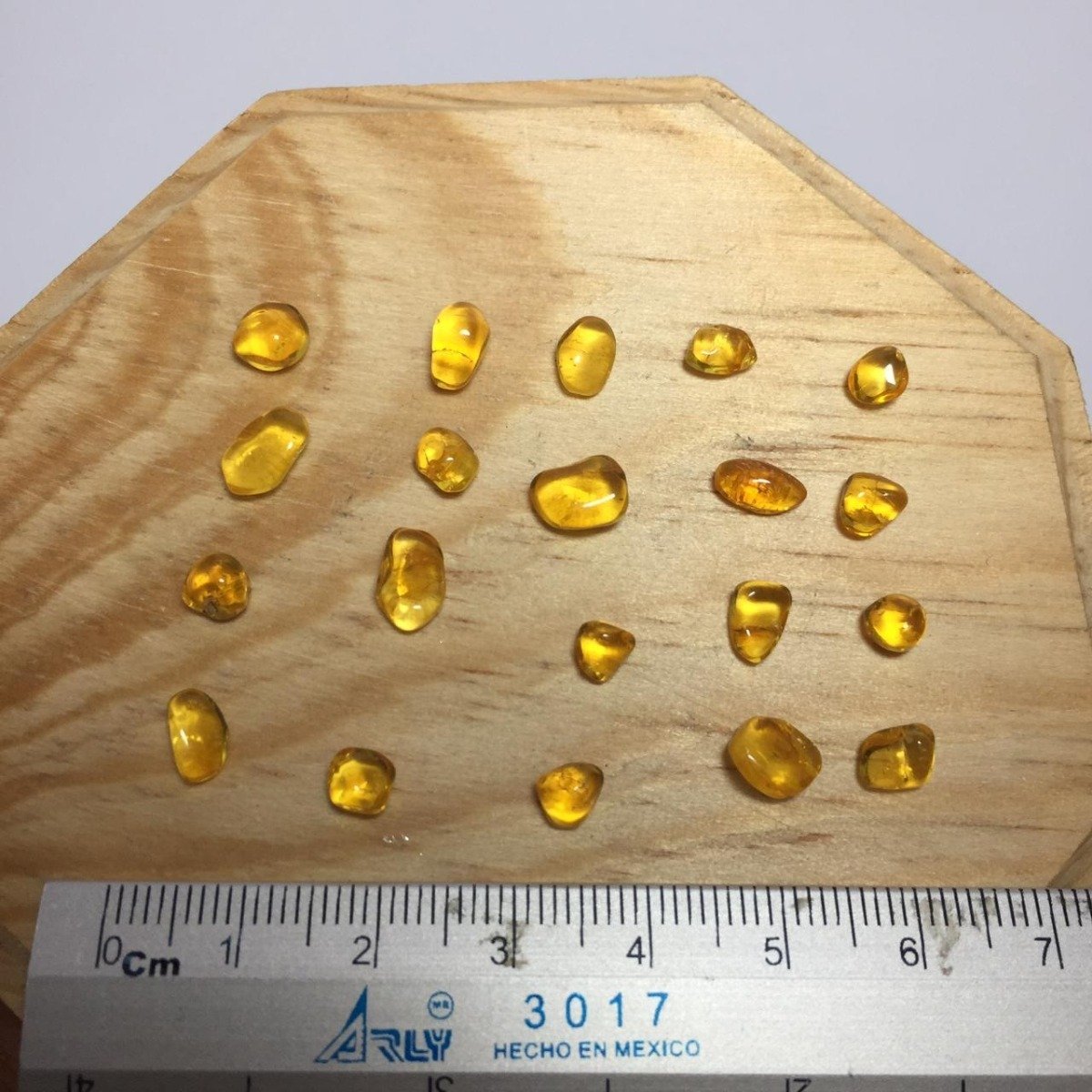 Los tamaños y formas son naturales, van desde 0.5 cm hasta 2 cm aprox.