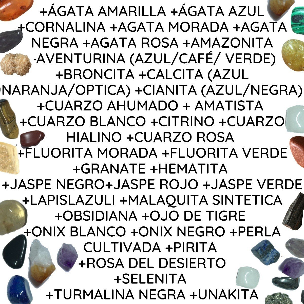 1 KIT BASIC DE 4 PIEDRAS + 1 AL AZAR, 1 KIT BASICO DE 4 PIEDRAS + 1 AL AZAR, 3 CIANITA AZUL (3 PIEZAS), 3 MALAQUITA SINTETICA 3 PIEZAS, 3Pulsera hilo rojo mano de fatima (3 PIEZAS), 4 ÁMBAR MINI TIPO 1 (ES UNA PIEZA), 4 FLUORITA VERDE 4 PIEZAS, 4 JASPES NEGRO 4 PIEZAS, 4 SELENITA (4 PIEZAS), 5 AGATA AZUL (5 PIEZAS), 5 AGATA CORNALINA (5 PIEZAS), 5 ÁGATA MORADA (5 PIEZAS), 5 ÁGATA NEGRA (5 PIEZAS), 5 AGATA ROSA (5 PIEZAS), 5 AMAZONITA (5 PIEZAS), 5 AVENTURINA AZUL (5 PIEZAS), 5 AVENTURINA CAFÉ (5 PIEZAS), 5 AVENTURINA VERDE (5 PIEZAS), 5 BRONCITA (5 PIEZAS), 5 CALCITA NARANJA (5 PIEZAS), 5 CALCITA ÓPTICA(5 PIEZAS), 5 CITRINO (5 PIEZAS), 5 CUARZO AMATISTA 5 PIEZAS, 5 CUARZO AZUL(5 PIEZAS), 5 CUARZO BLANCO (5 PIEZAS), 5 CUARZO ROSA (5 PIEZAS), 5 CUARZO TRANPARENTE /HIALINO (5 PIEZAS), 5 GRANATE (5 PIEZAS), 5 HEMATITA (5 PIEZAS), 5 JASPE ROJO (5 PIEZAS), 5 JASPE VERDE (5 PIEZAS), 5 LAPISLAZULI (5 PIEZAS), 5 MINIROSA DEL DESIERTO (5 PIEZAS), 5 OBSIDIANA (5 PIEZAS), 5 OJO DE TIGRE(5 PIEZAS), 5 PIRITA (5 PIEZAS), 5 SODALITA (5 PIEZAS), 5 TURMALINA (5 PIEZAS), 6 MINIS CUARZO AHUMADO