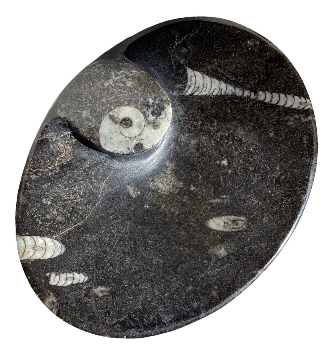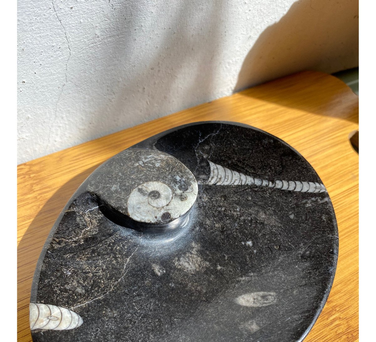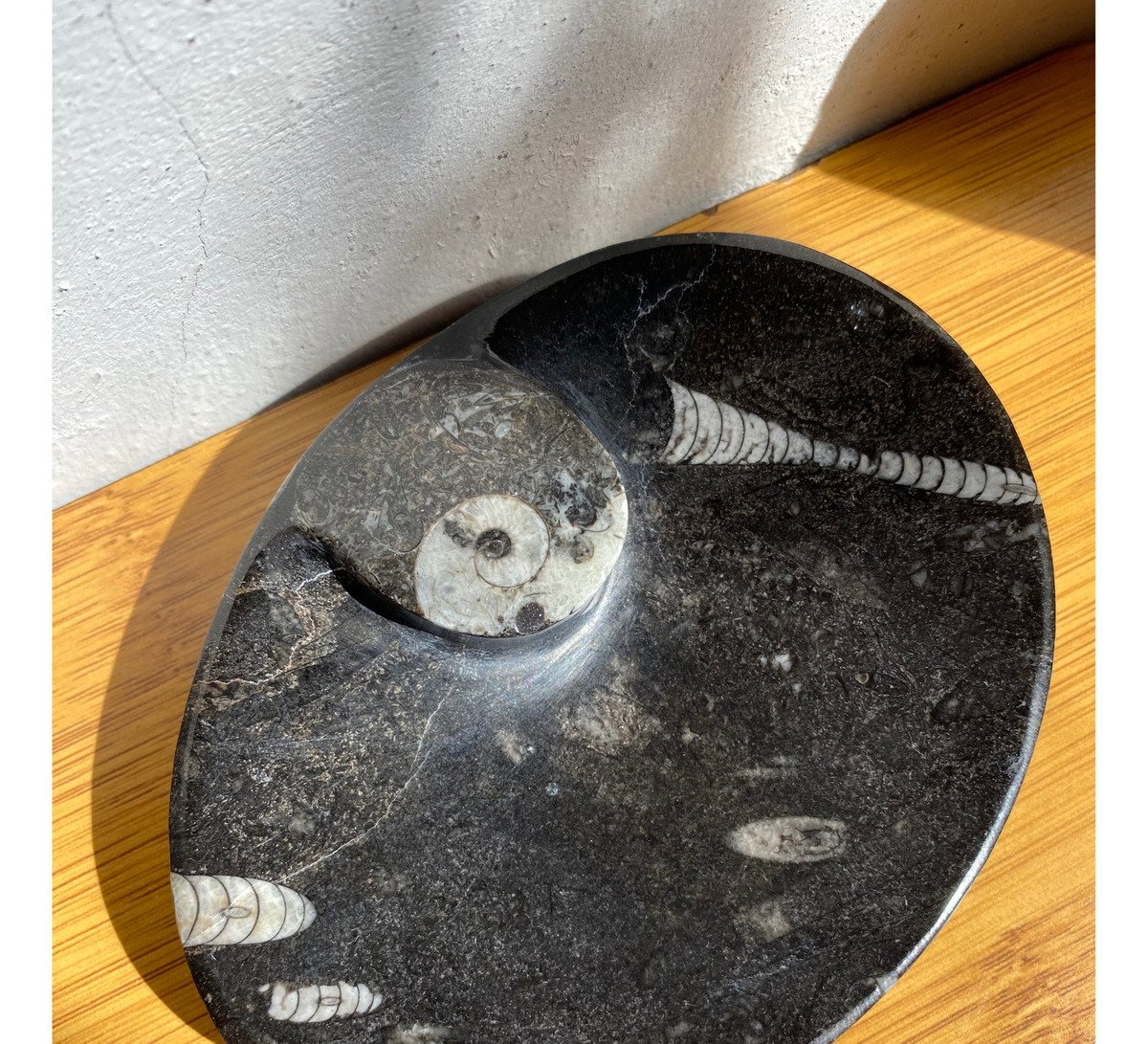 Bello Platon De Piedra Fosil Con Incrustaciones De Ammonite