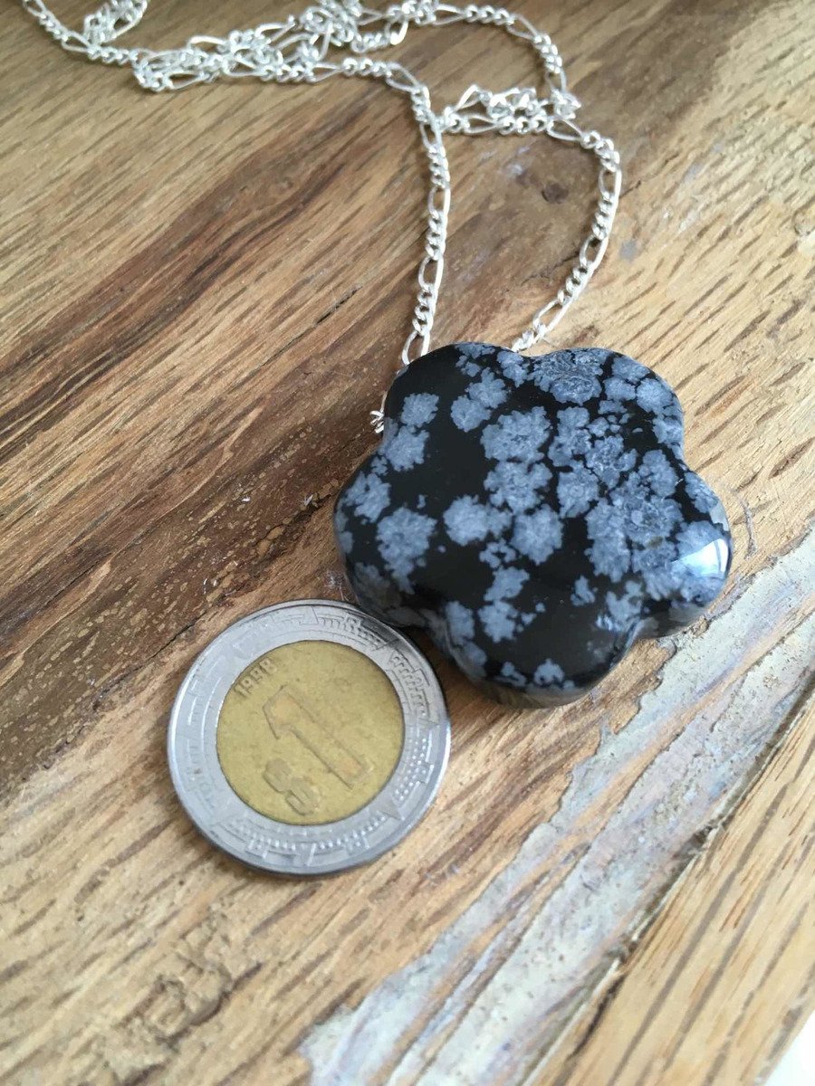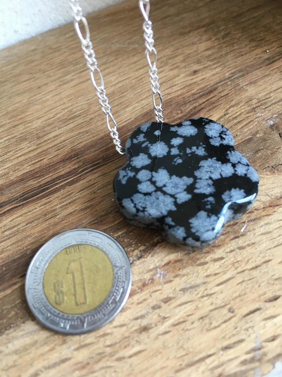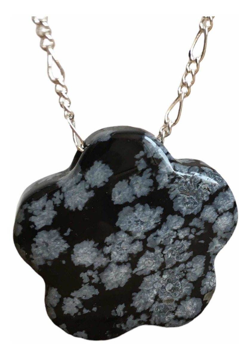 Cadena Con Dije Forma Flor Obsidiana Nevada Ujm