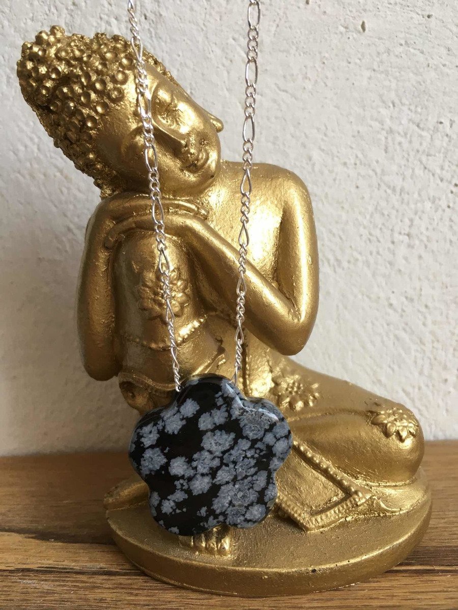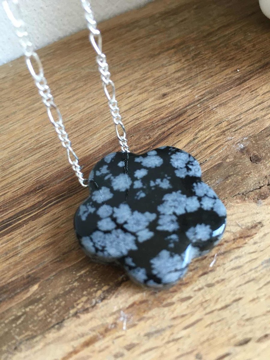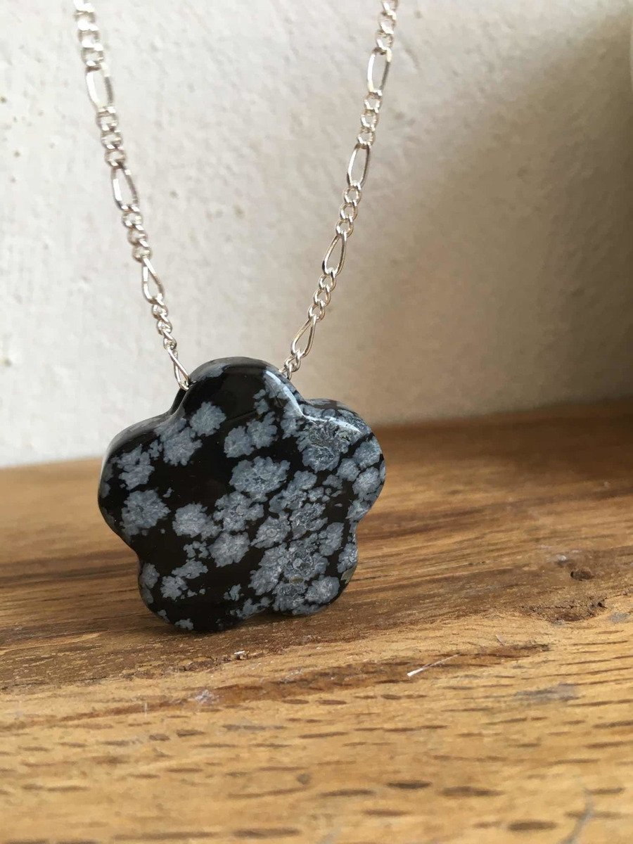 Cadena Con Dije Forma Flor Obsidiana Nevada Ujm