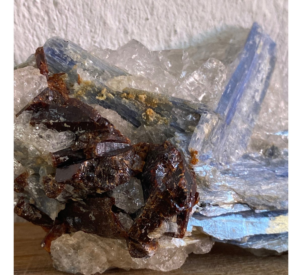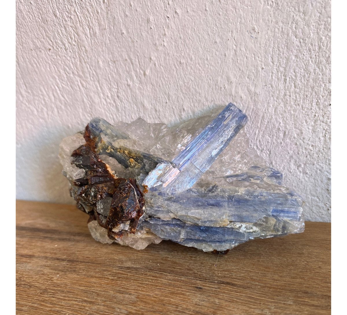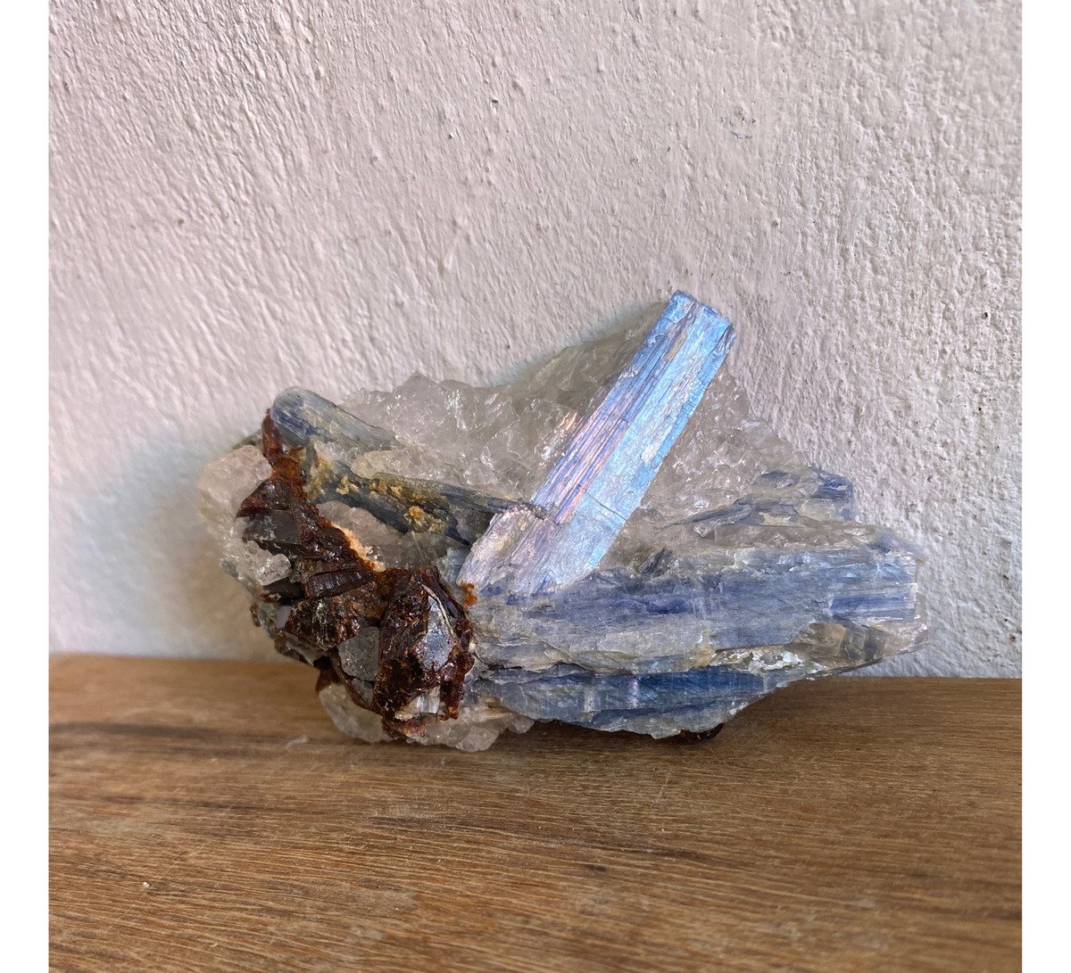 1 Cianita/kyanita Azul Mineral De Colección con cuarzo y granate