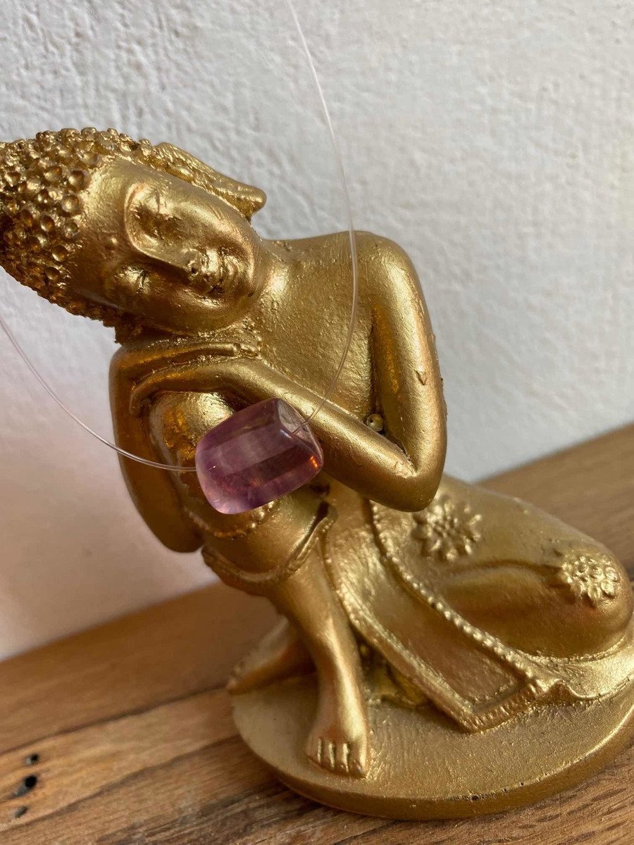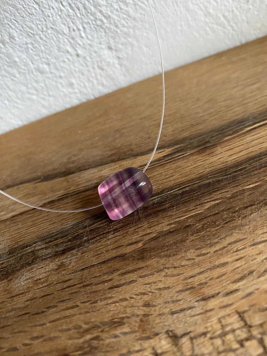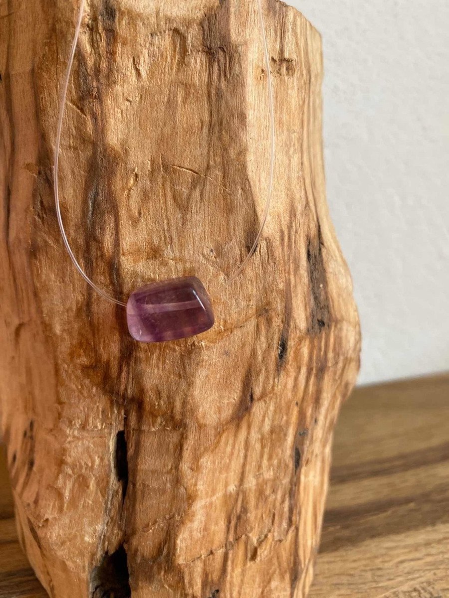 Collar Invisible Con Fluorita Morada Piedra Natural
