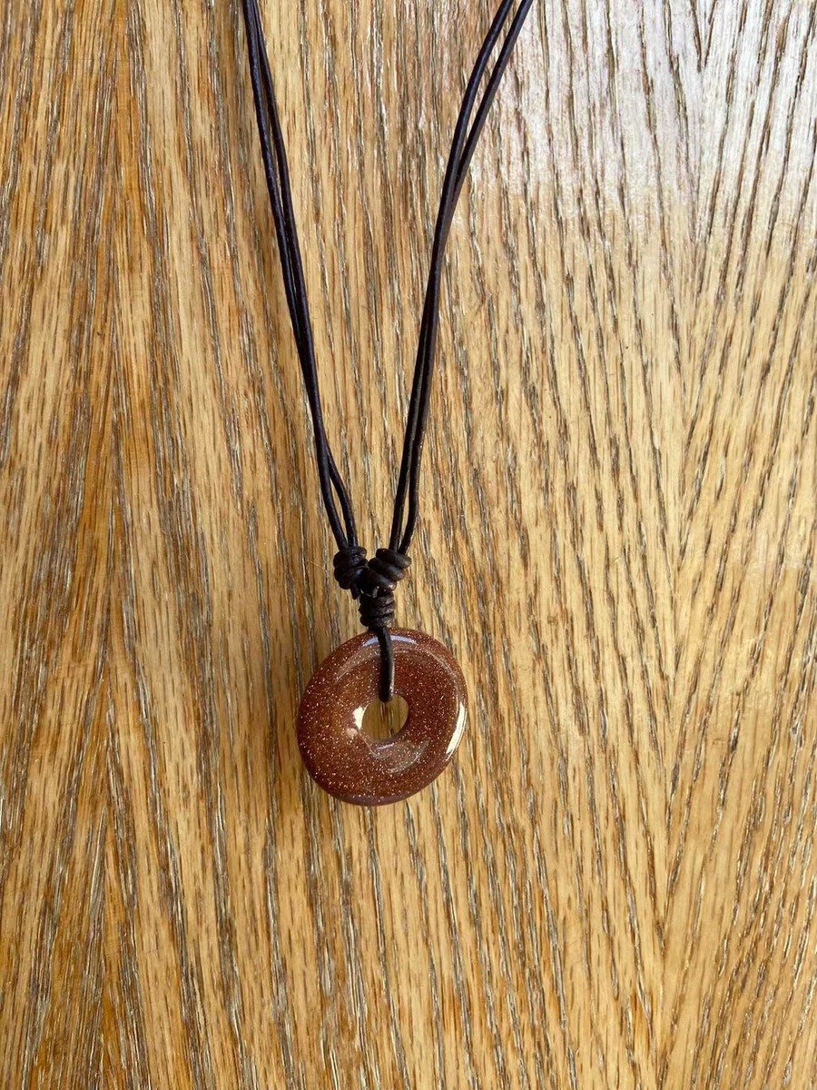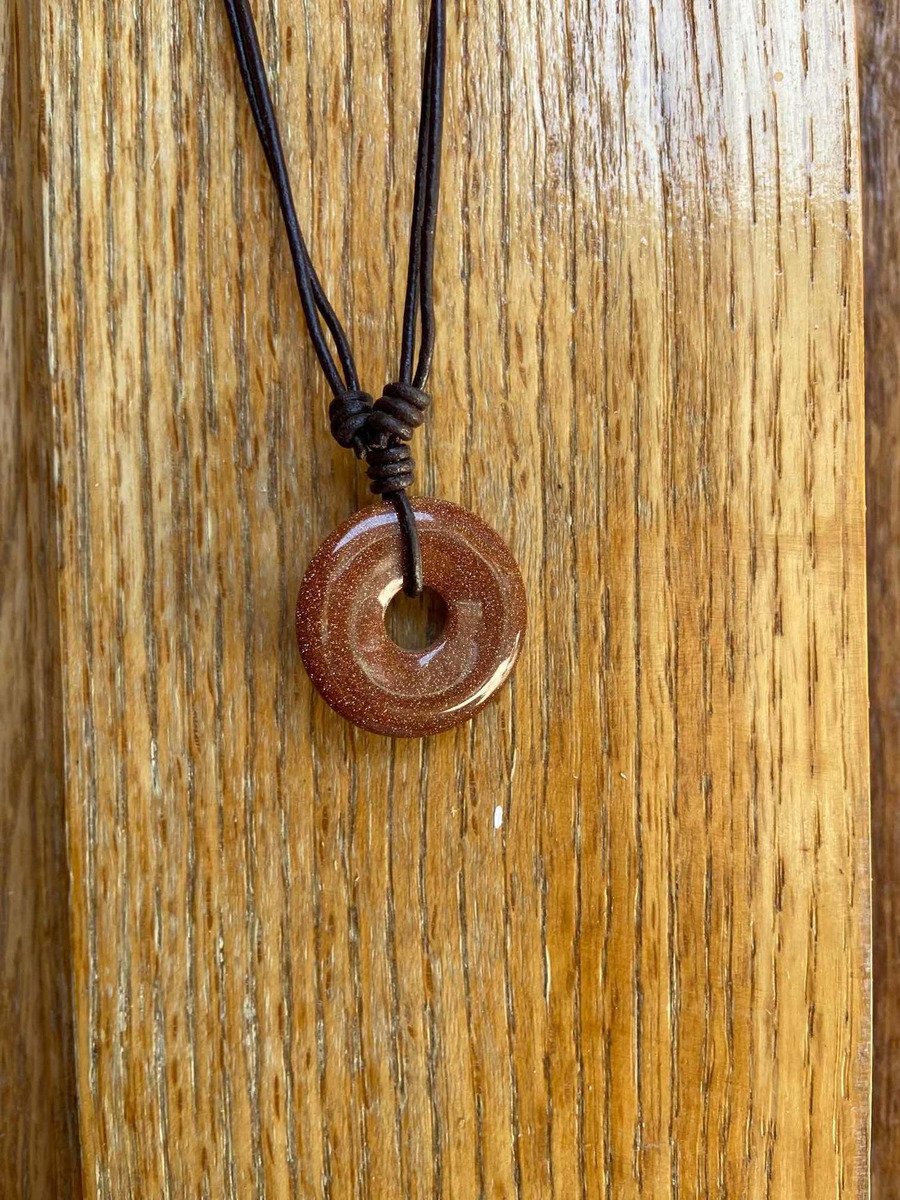 Dije Aventurina Café Con Cordón De Piel Cuero Natural