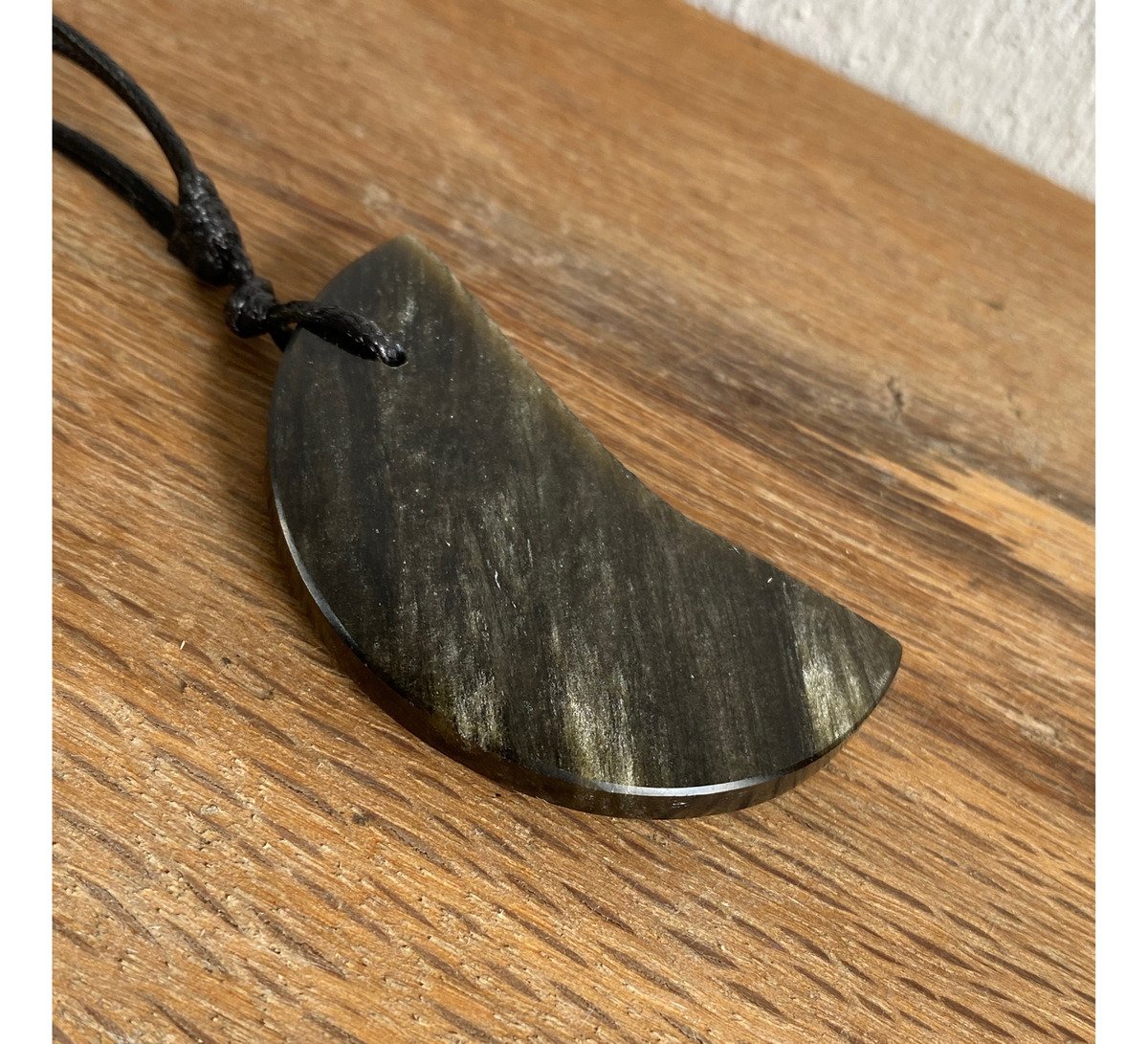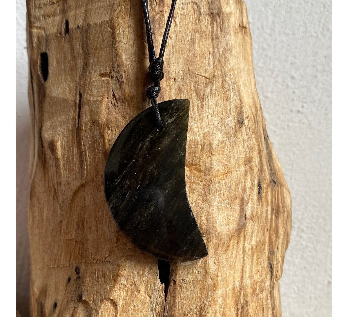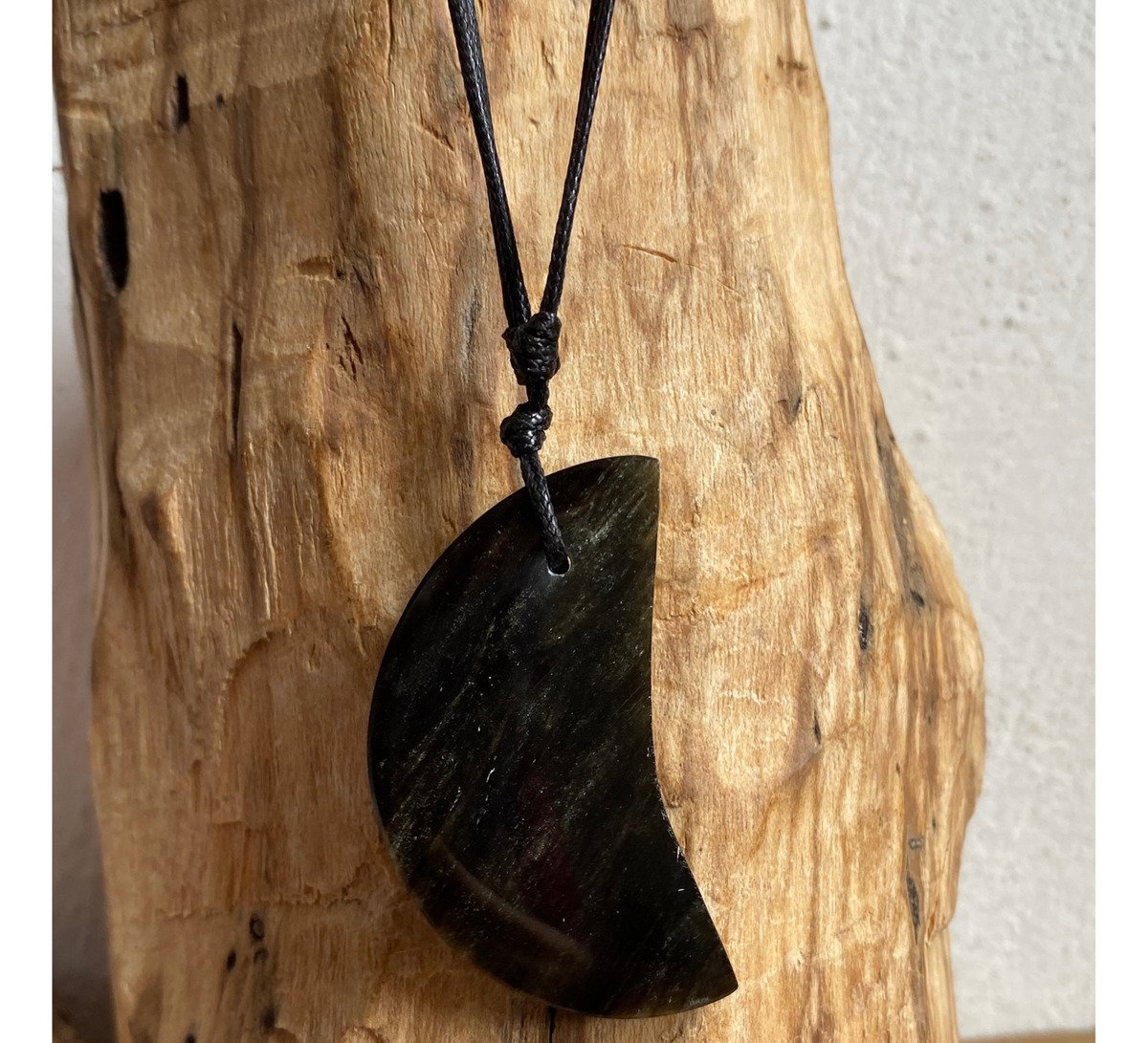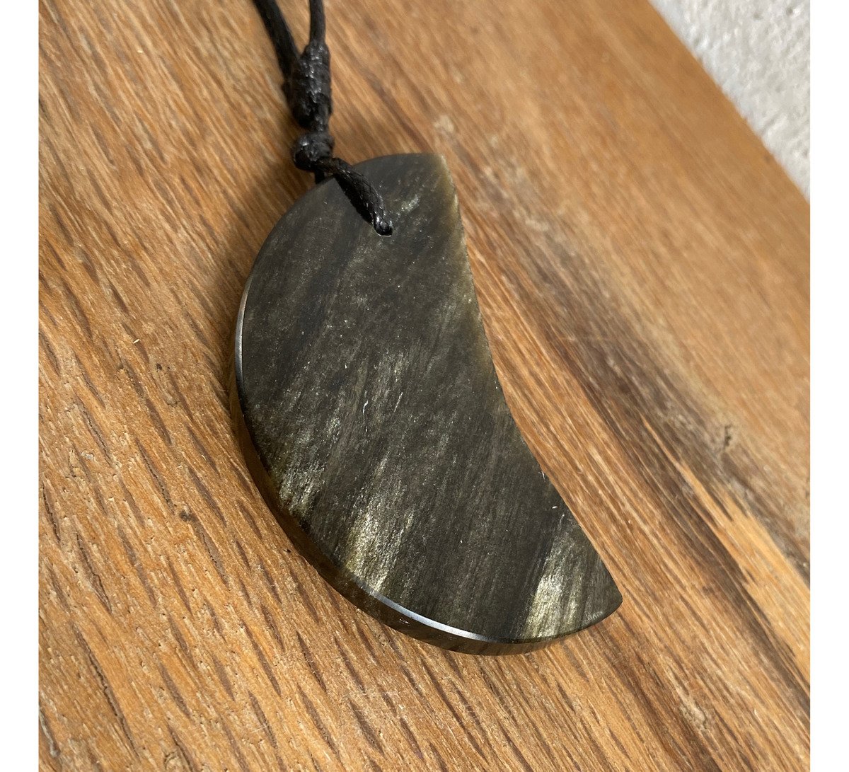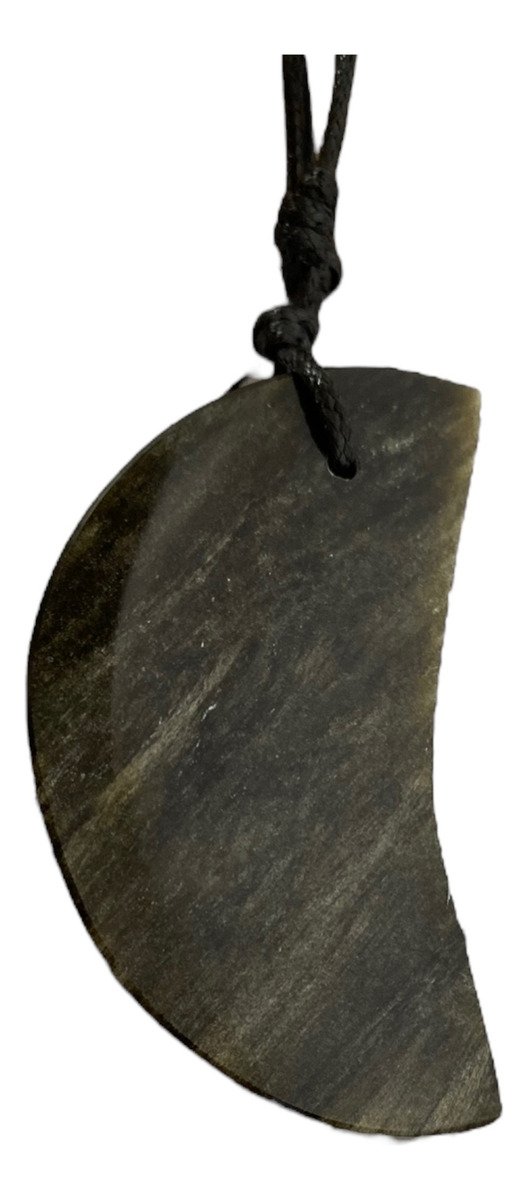 Dije De Media Luna Obsidiana Dorada Piedra Natural