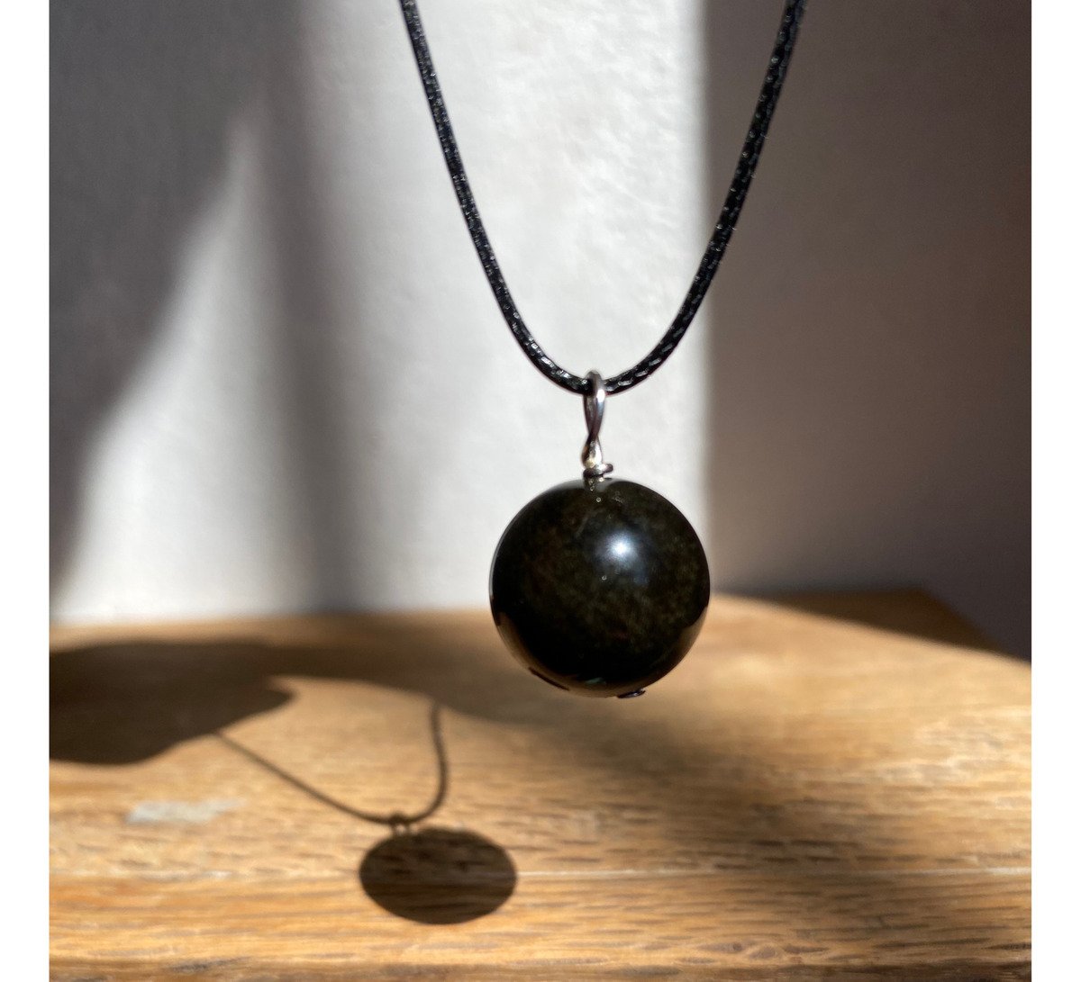 Dije De Obsidiana Dorada Esfera 100 % Piedra Natural Ujm