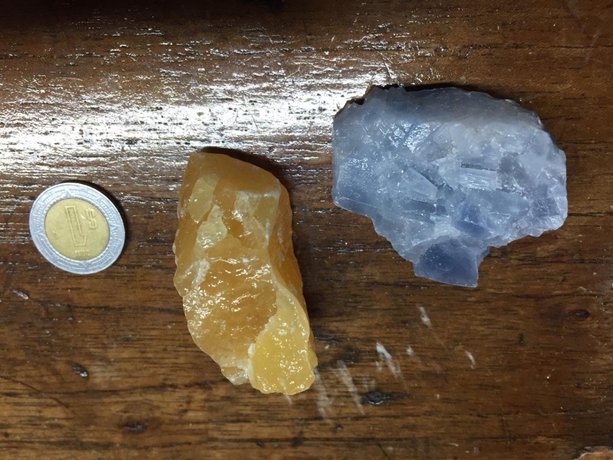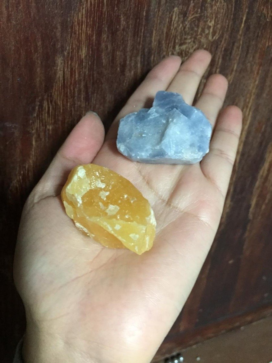 Kit Calcita Azul Y Calcita Naranja Mineral Colección Ujm